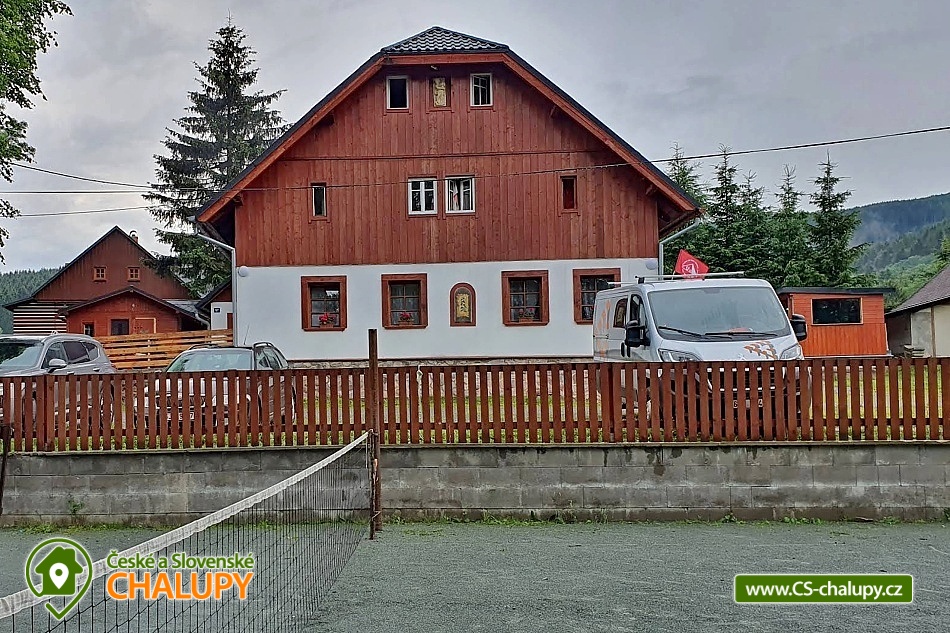 Útulná chalupa s bazénem se nachází na okraji obce Orlické Záhoří, v srdci Orlických hor, 200 m pod sjezdovkou Jadrná. Svou polohou je tak ideálním místem pro zasloužený odpočinek, cyklovýlety, pěší turistiku, běžkování nebo lyžování. Ubytování je vhodné pro větší skupiny, rodiny s dětmi, turisty nebo studenty. Chalupa poskytuje ubytování pro 38 osob ve 4 samostatných apartmánech (pro 14, 8, 8 a 8 osob). V přízemí objektu se nachází 14-lůžkový apartmán se 4 ložnicemi: 1x dvoulůžkový pokoj (2x jednolůžko) a 3x čtyřlůžkový pokoj (1x patrová postel, 2x jednolůžko). Sociální zařízení zahrnuje 3x koupelnu se sprchovým koutem, toaletou a umyvadlem. V prvním patře se nachází 3x 8-lůžkový apartmán. V prvním a druhém 8-lůžkovém apartmánu se nachází 2x 4-lůžková ložnice (2x jednolůžko, 1x manželská postel). Sociální zařízení v obou apartmánech zahrnuje 1x koupelnu se sprchovým koutem, toaletou a umyvadlem. Ve třetím apartmánu se nachází 4x 2-lůžková ložnice (2x jednolůžko) a sociální zařízení zahrnuje 2x koupelnu se sprchovým koutem, toaletou a umyvadlem. V každém apartmánu se nachází plně vybavený kuchyňský kout (elektrický sporák, trouba, lednice, mrazák, mikrovlnná trouba, rychlovarná konvice a nádobí) s posezením. Je možné zapůjčit dětskou postýlku nebo dětskou jídelní židličku. V přízemí objektu se nachází obývací místnost s televizí se satelitem a posezením. V prvním patře je společenská místnost s gaučovým posezením, krbem, televizí se satelitem, přehrávačem, elektronickými šipkami, stolním fotbalem a dětským koutkem s hračkami. Dále se ve společenské místnosti nachází bar (provozován samoobslužně a za poplatek), který je vybaven výčepním zařízením, lednicí a sklenicemi. Vytápění chalupy je řešeno krbovými kamny. V objektu možnost zdarma WI-FI připojení na internet. Chalupu obklopuje zahrada s možností parkování přímo u objektu (max. 10 aut). Součástí zahrady je bazén, zastřešená pergola s posezením, krb, udírna, ohniště, velký gril, kotlík a vnější kuchyň. Děti jistě ocení dětské hřiště s pískovištěm, houpačkou, skluzavkou, trampolínou a stolním tenisem. Po dohodě je možné využívat saunu. K dispozici je úschovna pro kola nebo lyže. V okolí chalupy možnost turistiky, cykloturistiky, koupání, lyžování, běžkování či houbaření. Mezi možnosti koupání patří např.: přírodní koupaliště v Rokytnici, přehrada Pastviny a aquapark Žamberk. V zimě jsou výhodou blízká lyžařská střediska např.: skiareál Orlické Záhoří, skiareál Jadrná, skiareál Černá Voda a skiareál Říčky. K výletům v okolí láká: Kunštátská kaple, Komáří vrch, Velká Deštná, Naučná stezka Olešnice, Zdobnice nebo Luisino Údolí. Těšíme se na Vás u nás.
