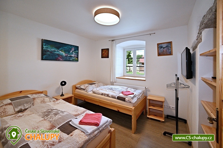 Mračovská Chalupa U Kapličky - Kadov - Blatná. Kompletně zrekonstruovaná chalupa z konce 18. století se nachází v srdci nadregionálního biocentra Velká Kuš, 4 km od Blatné, okres Strakonice. Objekt má 2 samostatné apartmány (11 +4 osoby) pronajímané v hlavní sezóně léto výhradně jako celý objekt, mimo hlavní sezonu možno pronajmout i samostatně. Chalupa je ideálním místem pro setkávání velké rodiny, přátel, rodin s dětmi. V chalupě se nacházejí dva apartmány. Celkem se v chalupě ubytuje 15 hostů. Chalupa je celoročně v provozu - ústřední topení. Apartmán č.1 má kapacitu 11 hostů, přízemí je bezbariérové, 1x ložnice s dvojlůžkem a jednolůžkem, 1x ložnice je s dvojlůžkem, 1x ložnice s dvojlůžkem a dvěma přistýlkami, 1 x ložnice s dvěma jednolůžky. K dispozici je dětská postýlka. Sociální zařízení zahrnuje 3x koupelnu se sprchovým koutem, WC, fénem, 1x samostatné WC. K apartmánu patří plně vybavená kuchyň se všemi spotřebiči: indukční varná deska, horkovzdušná trouba, mikrovlnná trouba, lednička s mrazákem, myčka, rychlovarná konvice, kávovar nespresso, topinkovač a toustovač. Apartmán č.2 má kapacitu 4 hosté, 1x ložnice s dvojlůžkem, jednolůžkem a přistýlkou. K dispozici je dětská postýlka. Sociální zařízení zahrnuje 1x koupelnu se sprchovým koutem, WC, bidetem, fénem. K apartmánu patří vybavená kuchyň se všemi spotřebiči: indukční varná deska, remoska, mikrovlnná trouba, lednička, rychlovarná konvice, topinkovač, toustovač. Apartmány lze pronajmout samostatně pouze mimo sezonu, Vánoce a Silvestra. Na přání lze dvoulůžka rozdělit jako jednolůžková. Každá ložnice má vlastní TV s pozemním a satelitním příjmem, možnost zapůjčení videoprojektoru. Pro hosty je k dispozici automatická pračka a sušička. V celém objektu je bezplatné připojení na internet WIFI. Objekt je vybaven kouřovými čidly, čidlem CO a čidlem úniku plynu. Pro hosty je k dispozici veliká letní kuchyň. Tato se nachází ve stodole, je vybavena dřezem s teplou vodou, sklokeramickým sporákem, horkovzdušnou troubou, rychlovarnou konvicí, krbem, možnost parkování kol. Dále je pro hosty připraveno přenosné ohniště, Weber gril na dřevěné uhlí, zahradní nábytek a na zahradě nadzemní bazén 3,6 m. Možnost pronájmu výčepního zařízení. Uzavřený dvůr s terasou. Parkování pro 3 vozy přímo u chalupy, další na návsi. V obci, kde se chalupa nachází je celoročně zakázáno použití jakékoli světelné a zvukové pyrotechniky (ohňostrojů)! V blízkosti chalupy jsou ustájeny koně! V oblasti nadregionálního biocentra Velká Kuš je stále nízká míra turistického ruchu, málo frekventované cesty ideální pro procházky, cykloturistiku a houbaření (možnost zapůjčit sušičku). V okolí je množství rybníků a lomů vhodných ke koupání (Rybník – Velká Kuš, Pálenec, Hadí, Pustý, Labuť, lom – Paštiky, Mačkov ). Koupaliště - Blatná, Třebohostice, Zadní Zborovice, Katovice – Otava, Strakonice. Aquapark - Horažďovice, bazén Strakonice, Písek. Hrady a zámky v okolí - vodní zámek Blatná, hrad Rábí, zámek Orlík nad Vltavou, hrad Zvíkov, hrad Strakonice, zámek Hluboká nad Vltavou. Relaxační centrum a hypocentrum - krytý bazén s vodní skluzavkou, masáže, možnost výuky jízdy na koni. Tenisové dvorce Blatná. Golfové hřiště Písek. Muzea - Prácheňské muzeum Písek, Rybářské muzeum Vodňany, Muzeum mlynářského řemesla Vodňany, Skanzen lidové architektury Chanovice, Holašovice selská lidová architektura památka UNESCO, Muzeum středního Povltaví Strakonice, rodný domek Jana Husa Husinec.