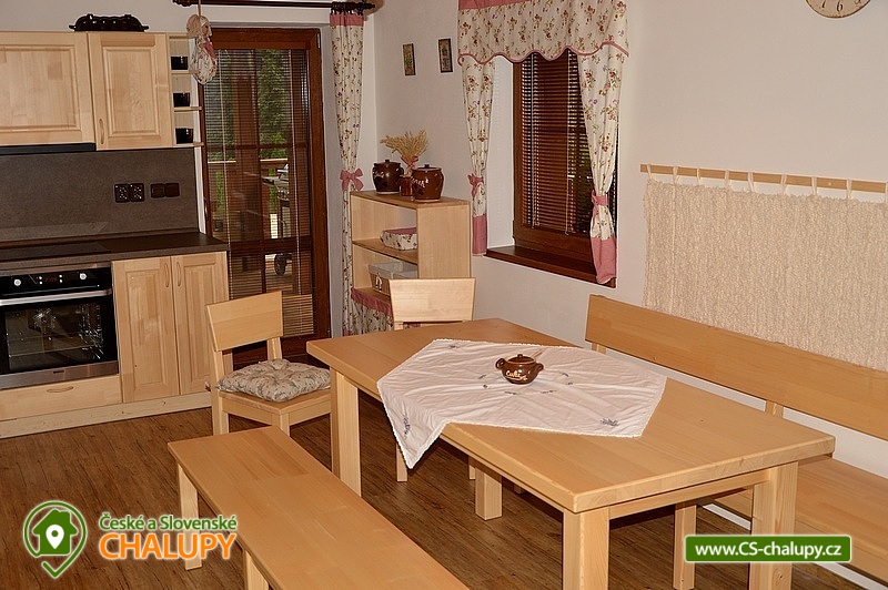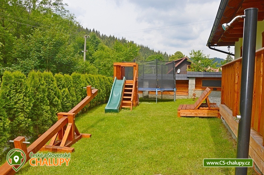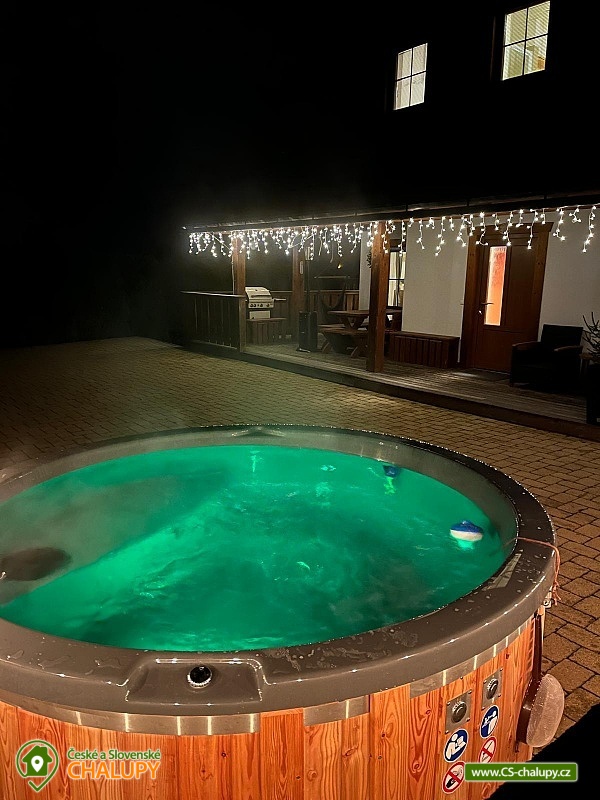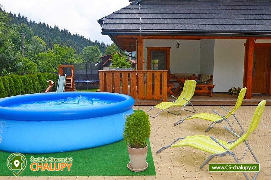 Chalupa s koupacím sudem - Beskydy. Chalupa s letním bazénem a vyhřívaným koupacím sudem s vířivkou v krásné přírodě mezi Beskydy, Javorníky a Vsetínskými vrchy. Ideální pro rodiny s dětmi. Kapacita chalupy je až 12 osob. V podkroví je 8 pevných lůžek a 4 přistýlky celkem ve třech pokojích: pokoj A (3+2), pokoj B (3+1), pokoj C (2+1). Ležení za pecí slouží jako ideální místo pro odpočinek. Možnost pronájmu jen přízemí ve vedlejší sezóně dle domluvy. Kuchyně - plně vybavená - lednice s mrazákem, mikrovlnka, myčka, elektrická trouba, indukční varná deska, digestoř, toustovač, topinkovač, ponorný mixér, překapávač na kávu, základní nádobí i ruční mlýnek na kávu. Obývací prostor - velký jídelní stůl, sedací souprava, kamna s ležením, televize a rádio s gramofonem. Na chodbě nachystané dřevo do kamen, nad ním pro zábavu retro šipky. Lyžárna, která je průchozí s bočním vchodem, je vybavena držákem na lyže, vysoušečem pro 8 párů bot, lavice, regál, venkovní hry - kroket, Moellky, houpačka pro nejmenší, švihadla, místo pro kočárky. Venku je uzamykatelná místnost pro kola, kde máte k dispozici i elektrický gril a skládací pingpongový stůl. V létě bazén, solární sprcha, lehátka, přenosné ohniště, skluzavka, houpačka, pískoviště, malá horolezecká stěna, venkovní křídová tabule, trampolína, opalovací lavice. Vytápění - celé přízemí je vytápěno elektrickým podlahovým topením. Kachlová kamna, která tvoří dominantu hlavní místnosti, mají rozvody teplého vzduchu do všech tří pokojů v podkroví. Ve spodní koupelně je i elektrické žebříkové topení. Ohřev vody je zajištěn el. bojlerem na 300 l vody. Koupání - u chalupy je v létě k dispozici menší bazén a solární sprcha. V obci nově zrekonstruované vyhřívané koupaliště a 5 km vzdálené přírodní koupaliště Balaton, rovněž po rekonstrukci. Cyklotrasy - cyklostezka Bečva, která vede podél řeky Bečvy, vhodná i pro bruslaře. Vydat se můžete buď směrem na Vsetín nebo opačně až na hřeben Javorníků. Celé Velké Karlovice jsou propleteny cyklostezkami, které jsou dobře značené. Bikeareál - pro ty, kdo mají rádi adrenalin, je kousek od chalupy BIKEAREAL Kyčerka, kde si přijdou na své jak zkušení tak začínající bajkeři. Turistika - spoustu možností pro náročné i méně zdatné turisty, rovněž dobře značené trasy. Těšíme se na Vás u nás.