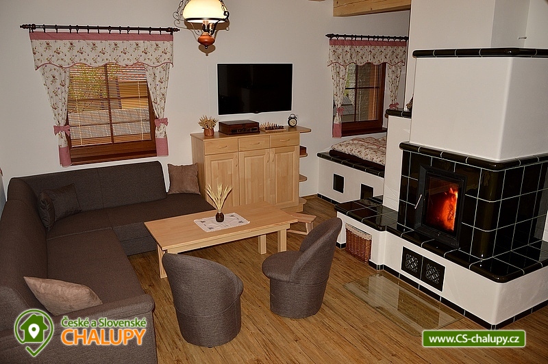 „Chalupa s koupacím sudem - Beskydy - kachlová kamna“