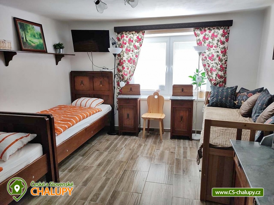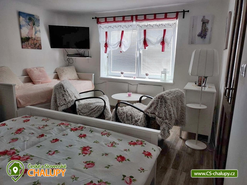 Chalupa s vinným sklípkem se nachází na Pálavě v klidné části obce Zaječí, nedaleko vodní nádrže Nové Mlýny a měst Velké Pavlovice a Hustopeče. Chalupa nabízí ubytování pro až 8 osob ve dvou čtyřlůžkových ložnicích. V každé ložnici je dvoulůžko, rozkládací postel na dvě lůžka, TV a šatní skříň. K dispozici je jídelna s velkým stolem, lavicí, židlemi, kachlovými kamny a plně vybavená kuchyň (2x lednice, mrazák, varná deska, trouba, rychlovarná konvice, mikrovlnná trouba, kapslový kávovar, fritéza a topinkovač). Sociální zařízení zahrnuje koupelnu se sprchovým koutem, umyvadlem a společným WC. K dispozici pračka se sušičkou a Wi-Fi připojení. Objekt je vytápěn kachlovými kamny a infra topením. Parkování možné přímo před objektem pro 2 auta. Na dvorku u chalupy je zastřešená pergola s posezením a zahradním grilem. Možnost uskladnění kol. K dispozici také bylinková zahrádka a vinný sklep pro posezení v parných dnech. Chalupa sousedí s pozemkem, na kterém se nachází turistické posezení a kaplička sv. Floriana. Odtud je krásný výhled na Pálavské vrchy a Novomlýnské nádrže. Obec je součástí Velkopavlovické vinařské stezky, která je dlouhá 109 km a vede do 31 obcí, je značena žlutými kovovými tabulkami s modrým logem vinařské stezky. Zaječí je krásná lokalita jižní Moravy plná cyklistických vinařských stezek, které se klikatí mezi vinicemi a vinnými sklípky. Tipy na výlety: Mikulov, Archeopark Pavlov, Dívčí hrady, Sirotčí hrádek, nádrž Nové mlýny, Lednicko-valtický areál, Velké Pavlovice, Bořetice, Kobylí. Možnosti koupání: vodní nádrž Nové Mlýny, rybník Šutrák, koupaliště Němčičky, koupaliště Horní Bojanovice, bazén Hustopeče. Těšíme se na Vás u nás.