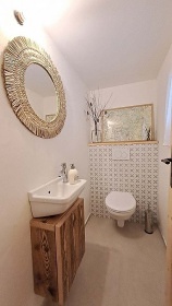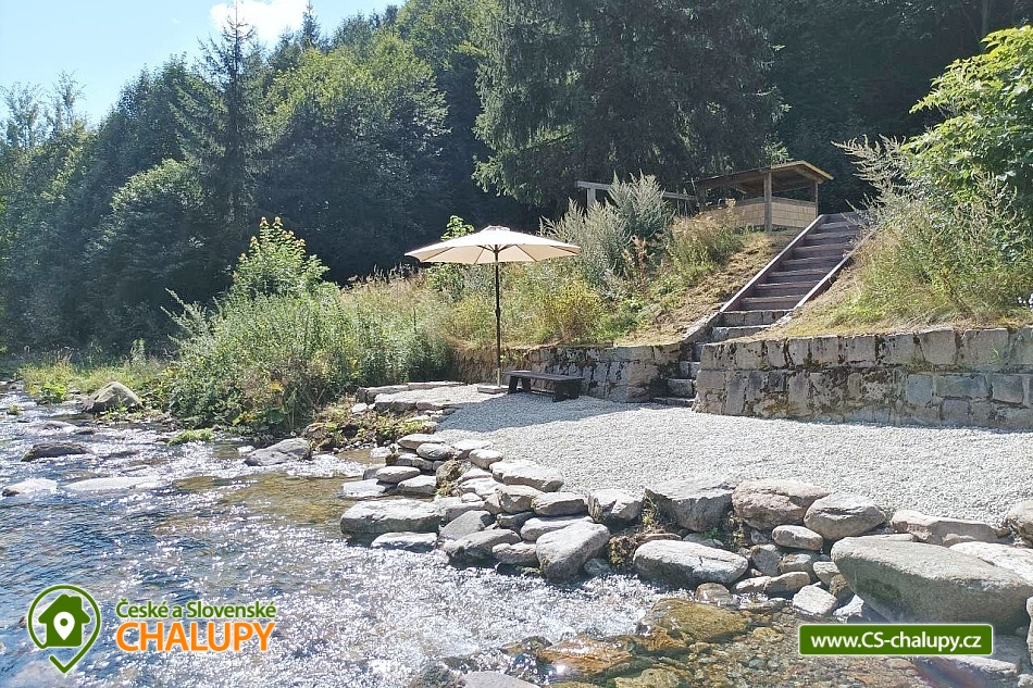 Útulná Chalupa Praděd s vířivkou se nachází se nachází v obci Loučná nad Desnou - části Kouty nad Desnou v malebném údolí u lesa a u potoka. Výhodou je těsná blízkost Ski areálu, Bikeparku a Balanc parku Kouty. Těšit se můžete na krásnou horskou přírodu CHKO Jeseníky, čistý vzduch a jistotu dokonalé relaxace. Chalupa Praděd nabízí ubytování pro 12 osob ve 3 ložnicích. V přízemí je k dispozici čtyřlůžková ložnice s 2x manželskou postelí a v podkroví jsou umístěné dvě čtyřlůžkové ložnice s 1x manželskou postelí a 2x jednolůžkem. Součástí jedné z podkrovních ložnic je dětská postýlka a balkon. V podkroví se dále nachází dětská herna s možností přistýlky (110 cm) a balkonem. Po domluvě lze do herny přesunout dvě postele z jiných ložnic. Všechny ložnice jsou vybavené dřevěnými postelemi, novými ortopedickými matracemi, luxusními přikrývkami a stylovým nábytkem. V přízemí lze společné chvíle trávit v obývací pokoj s krbem (pro děti zabezpečen ohrádkou), sedací soupravou a Smart TV s O2 TV. Dále je k dispozici plně vybavená, stylová kuchyň (retro lednice s mrazákem, myčka nádobí, indukční varná deska, horkovzdušná trouba, mikrovlnná trouba, toustovač a veškeré potřebné nádobí) s jídelním koutem. Na kuchyň navazuje útulná veranda s posezením a výhledy do přírody. Pro chvíle zábavy slouží stolní fotbálek a kulečník, oblíbené deskové hry, karty, pexesa a zajímavé knihy. Pro inspiraci k výletům jsou k dispozici turistické mapy a mnoho informačního materiálu s aktivitami všeho druhu v okolí a 3D mapa Jeseníků. Součástí podkrovní herny pro děti je stoleček s židličkami, proutěné koše s čistými hračkami, pohovka, knihovnička s knihami o přírodě a horách, pohádky a zábavné deskové hry. Sociální zařízení zahrnuje jednu koupelnu se sprchovým koutem, velkým umyvadlem, WC, topným žebříkem, dostatkem odkládacího prostoru a dětskou stoličkou a jednu koupelnu se sprchovým koutem, umyvadlem a topným žebříkem. K dispozici je také samostatné WC. Koupelny i WC jsou umístěné v přízemí. Vytápění je řešeno krbovými kamny na dřevo a elektrickými přímotopy. V celém objektu je k dispozici WIFI připojení na internet. Venku na prostorné zahradě je připravené zastřešené posezení s vířivkou pro 6 osob. K dispozici je gril a ohniště. Vedle pozemku teče čistá horská řeka Hučivá Desná, která je splněným snem všech otužilců. Pro zpřístupnění řeky k celoročnímu koupání je součástí pozemku nová relaxační pláž. Děti ocení velký osvětlený dětský posed se zastřešeným vybaveným pískovištěm, skluzavkou, houpačkami, lanovou stěnou, velkým počítadlem, dětským posezením a dřevěnou kuchyňkou. Dále je k zapůjčení vybavení pro badminton a líný tenis, míče, sáně a boby. Součástí zahrady je domeček pro uschování sportovního vybavení s velkým vysoušečem obuvi, lesní tůňka a dřevník. Během odpočinku na zahradě si lze pochutnat na si pochutnat na borůvkách, malinách, ostružinách, jostě, rybízu, angreštu nebo jahodách. Bobulová zahrádka je doplněna velkým hmyzím domečkem. Umístění chalupy a pozemku je stranou veškerých rušných silnic a vlakových kolejí. Parkovat lze přímo u objektu. V okolí chalupy možnost turistiky, cykloturistiky, koupání, houbaření, rybaření, lyžování a běžkování. V blízkosti jsou tenisové kurty, jízdárna, bowling a discgolf. Mezi možnosti koupání patří např.: Velké Losiny - termály, bazén Domašov - Bělá pod Pradědem, termální koupaliště Velké Losiny, koupaliště Rapotín, Bazén Karlova Studánka, koupaliště Jeseník, Hynčice pod Sušinou - rybník Úžas, bazén Jeseník - Priessnitz, atd. K dispozici jsou blízká lyžařská střediska: Kouty nad Desnou, Kareš - Kouty nad Desnou, Přemyslov, Ski Centrum OAZA – Loučna nad Desnou, Kocián - Loučná nad Desnou, Červenohorské sedlo a další. K výletům v okolí láká přečerpávací vodní elektrárna Dlouhé Stráně, nejvyšší hora Jeseníků Praděd, naučná stezka Rysí skála, wellness Kolštejn Branná, sportovní areál Kociánov v Loučné nad Desnou s dětským hřištěm, rybolovem, minigolfem, skateparkem a paintballem, dále zámecký park Loučná nad Desnou, ruční papírna Velké Losiny či Zlatokopecký skanzen ve Zlatých Horách. Těšíme se na Vás u nás.