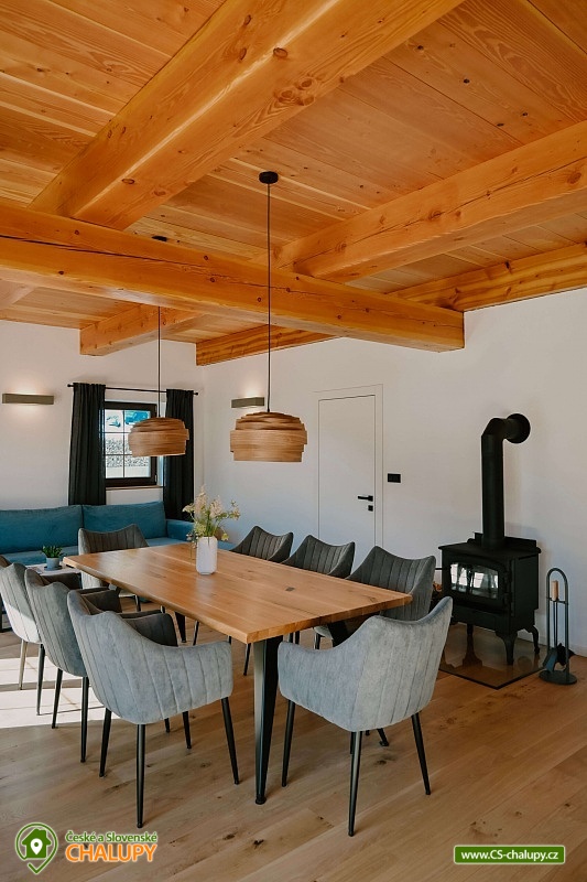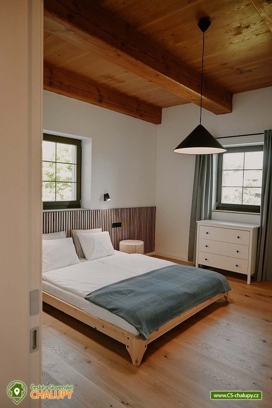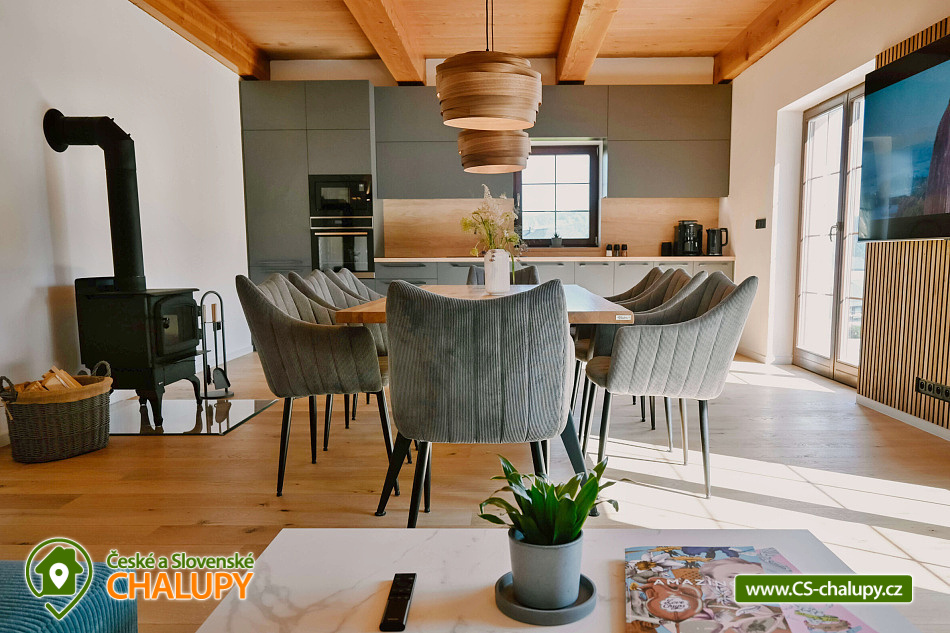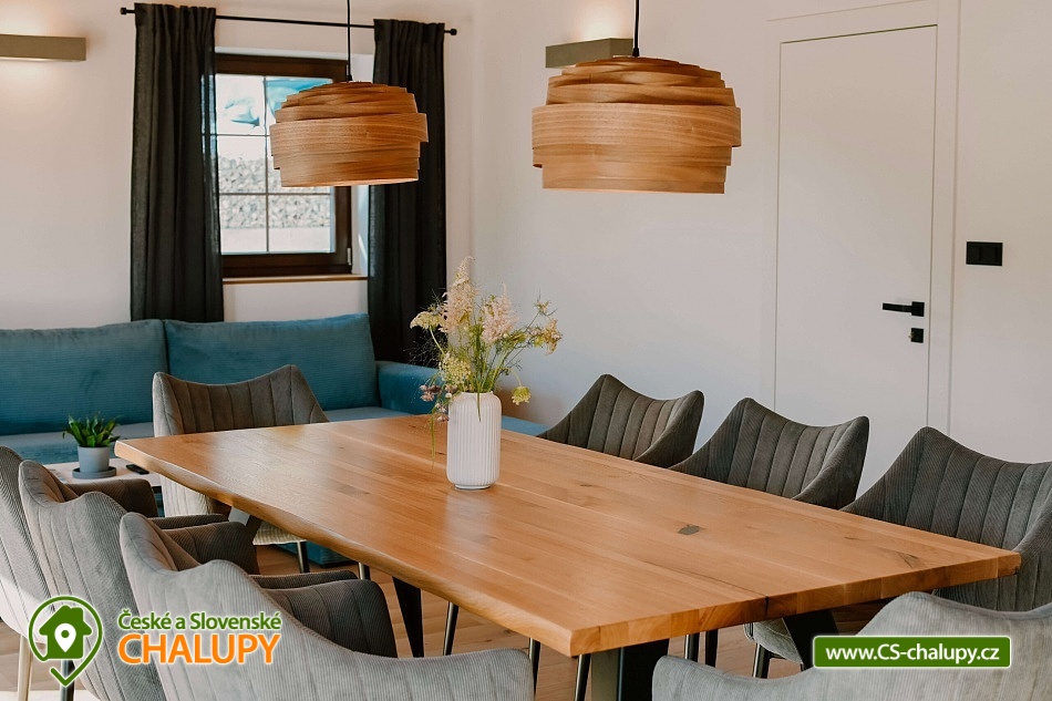 Moderně vybavená Chalupa s terasou se nachází nedaleko střediska Buková Hora v malebné horské obci Jakubovice u Šumperka v Jeseníkách. V okolí potěší spousta krásných procházek a cyklostezek. V zimním období výhodou blízkost horských resortů Buková Hora a Dolní Morava. Těšit se můžete na stylové ubytování, na teplo z kanadských kamen a na vířivku na terase s výhledem na historický kostel a nekonečnou přírodu. Chalupa nabízí ubytování pro až 10 osob v 5 ložnicích. V přízemí je umístěná dvoulůžková ložnice s manželskou postelí. Další čtyři dvoulůžkové ložnice s manželskou postelí se nachází v patře. Součástí těchto čtyř ložnic je vlastní sprchový kout. Dětská postýlka je k zapůjčení. Společné chvíle lze trávit ve společenské místnosti s krbovými kamny, sedací soupravou, TV, jídelním stolem s pohodlnými židlemi a plně vybaveným kuchyňským koutem (rychlovarná konvice, mikrovlnná trouba, lednička, kávovar a myčka nádobí). K dispozici je také lyžárna. Sociální zařízení zahrnuje jednu koupelnu v přízemí s vanou a 1x WC, dále v patře 2x samostatné WC a čtyři sprchové kouty v ložnicích. K dispozici jsou ručníky, osušky a toaletní potřeby. Vytápění je řešeno podlahovým vytápěním v obou patrech. Pro větší teplotní komfort a příjemnou atmosféru je možnost si zatopit v kanadských kamnech. V celém objektu je k dispozici WIFI připojení na internet. U chalupy lze volné chvíle trávit na terase s posezením, lehátky a vířivkou s krásným výhledem do přírody. K dispozici je gril a ohniště. Parkovat lze přímo u objektu. V okolí chalupy možnost cykloturistiky, koupání, houbaření, rybaření, běžkování a lyžování. V blízkosti jsou tenisové kurty, golfové hřiště a jízdárna. Mezi možnosti koupání patří např.: koupaliště Ruda nad Moravou, Štíty - Acrobat Park, koupaliště Bludov - Vlčí Důl, koupaliště Králíky, koupaliště Šumperk - Bratrušák, bazén Šumperk - Aquacentrum, bazén Zábřeh, koupaliště Rapotín, přehrada Krásné, Velké Losiny - termály, atd. V zimním období jsou k dispozici blízká lyžařská střediska: Turek, Panorama - Štědrákova Lhota, Zborov, Heroltice, Červená Voda - Buková hora a další. K výletům v okolí láká Rozhledna Suchý vrch, Stezka v oblacích na Dolní Moravě, Velké Losiny s termálními lázněmi, zámkem, historickou výrobnou papíru, dále Minigolf Loučná nad Desnou, Pivovarské muzeum Hanušovice nebo města Jeseník a Šumperk. Těšíme se na Vás u nás.