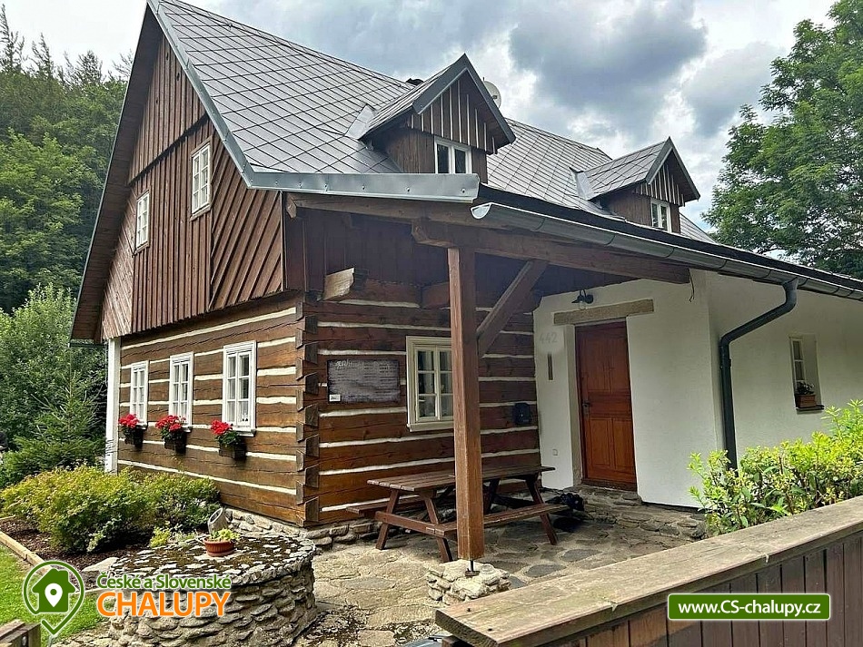 Roubená chalupa s vnitřním bazénem a protiproudem u říčky Bělé pod Studeným vrchem v Orlických horách. Chalupa ve stylu původních roubených chalup má kapacitu až 14 osob a pronajímá se vždy jako celek 1 skupině klientů. V patře chalupy jsou 3 ložnice po 4 až 5-ti lůžkách, k dispozici jsou hostům také ručníky. Kuchyňská linka vč. myčky nádobí, varná sklokeramická deska, 2x lednice s menším mrazákem, varná konvice, kávovar, mikrovlnná trouba a nádobí pro příslušný počet osob. Sociální zařízení: 1. v přízemí - samostatná koupelna se sprchou a umyvadlem, samostatné WC. 2. sociální zařízení je v patře - koupelna s vanou, umyvadlem a WC. V přízemí je krb, elektrické topení v podlaze, v patře jsou el. přímotopy. K dispozici úschova jízdních kol nebo lyží. U objektu pískoviště, trampolína, venkovní plynový gril, dřevěný altánek s posezením a ohništěm. Zdroj vlastní pitné vynikající vody. Parkování u domu na vlastním pozemku pro až 5 aut, celoročně bezproblémový příjezd. Po dohodě možná polopenze - výborná domácí strava. Oblast Deštné v Orlických horách a okolí nabízí nepřeberné množství námětů pro letní i zimní rekreaci. Jedná se o klidnou zónu, turisty mnohdy ještě neobjevenou. Další možnosti koupání: přehrada Rozkoš, bazén Deštné v Orlických horách, koupaliště Dobré, koupaliště Bystré, koupaliště Dobruška, rybník Broumar, koupaliště Rychnov nad Kněžnou, bazén Nové Město nad Metují, bazén Rychnov nad Kněžnou, aquapark Kudowa Zdroj, bazén Náchod, koupaliště Rokytnice v Orlických horách, koupaliště Náchod, koupaliště Vamperk. Blízká lyžařská střediska: Deštné - Na Špičáku, Start - Deštné v Orlických horách, Deštné v Orlických horách, Šerlišský mlýn, pod Masarykovou chatou, Sedloňov, Zieleniec, Olešnice v O.h., Orlické Záhoří - Bedřichovka, Kačenčina sjezdovka - Olešnice v O.h., Čihalka - Olešnice, Orlické Záhoří - Jadrná, Hartman - Olešnice v O. h., Ski centrum Zdobnice, Nový Hrádek - Panská stráň. Výlety do Polska: Lázeňské městečko Kudowa Zdroj – 25 km. Klodsko – 45 km, staré město, pevnost, Minieuroland – nádherná zahrada s květinami, okrasnými keři a evropskými miniaturními stavbami, zábavní hřiště a prolézačky pro děti, občerstvení. Stolové hory - Gory Stolowe, Skalní město Hejšovina (Szczeliniec Wielki) – 36 km, Skiareál Zieleniec – několik sjezdovek, lze nastoupit na Šerlichu v Deštném v Orlických horách.
