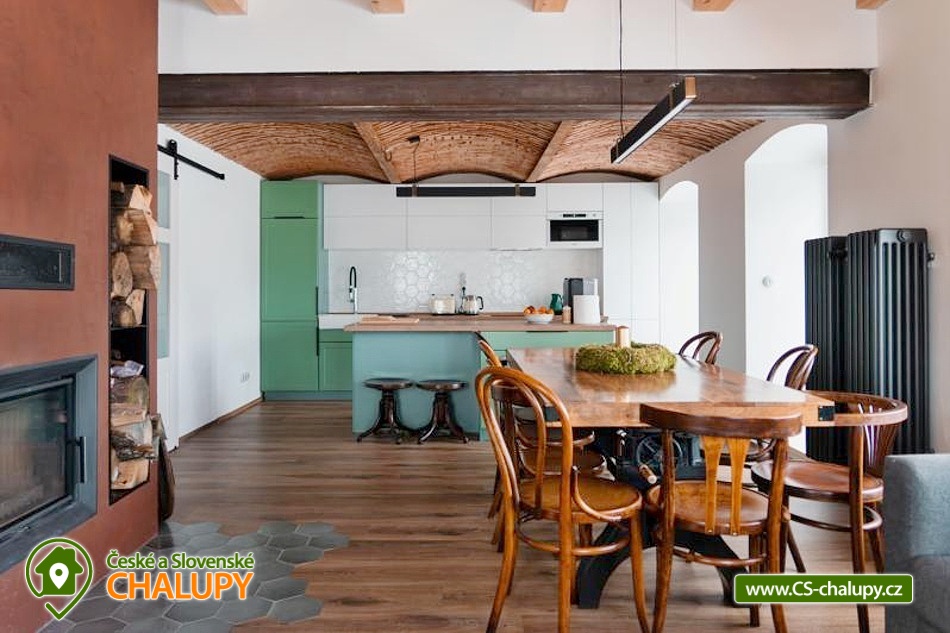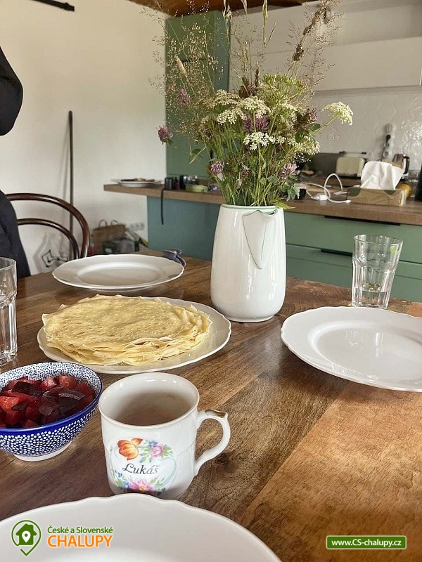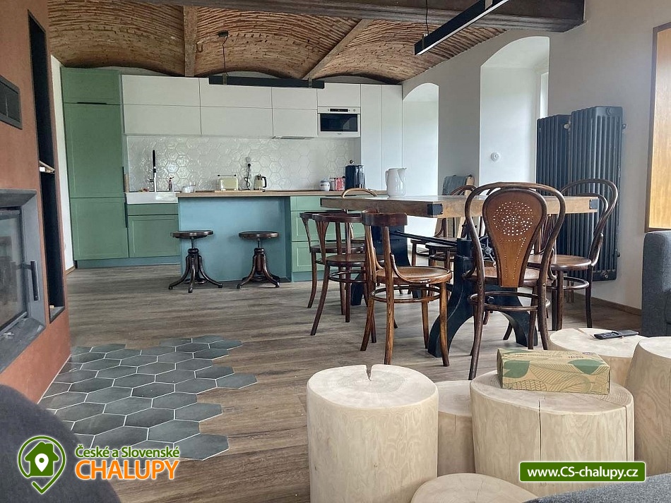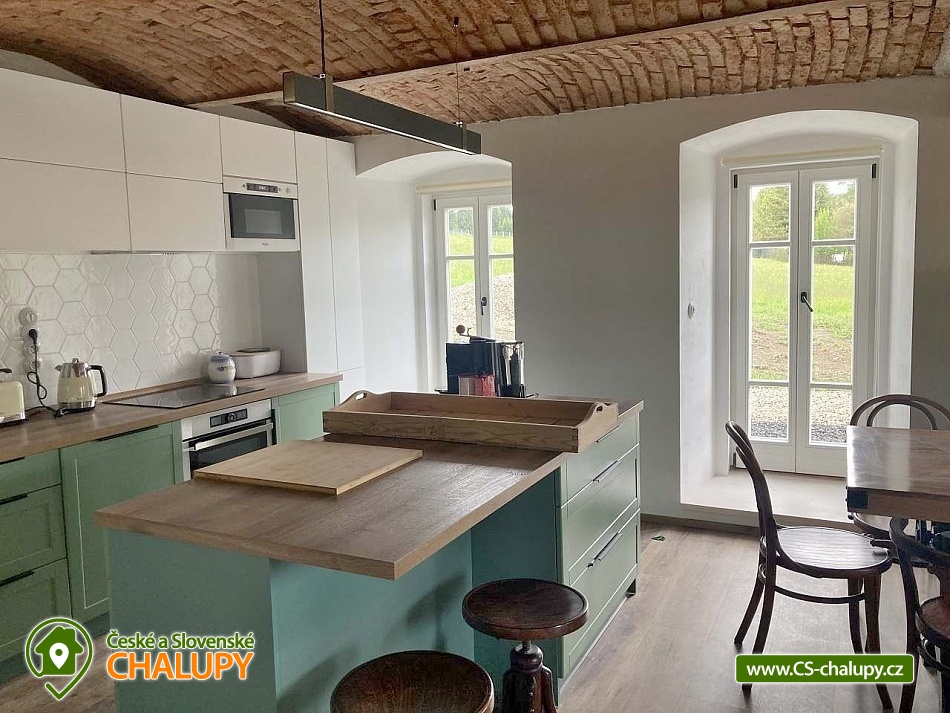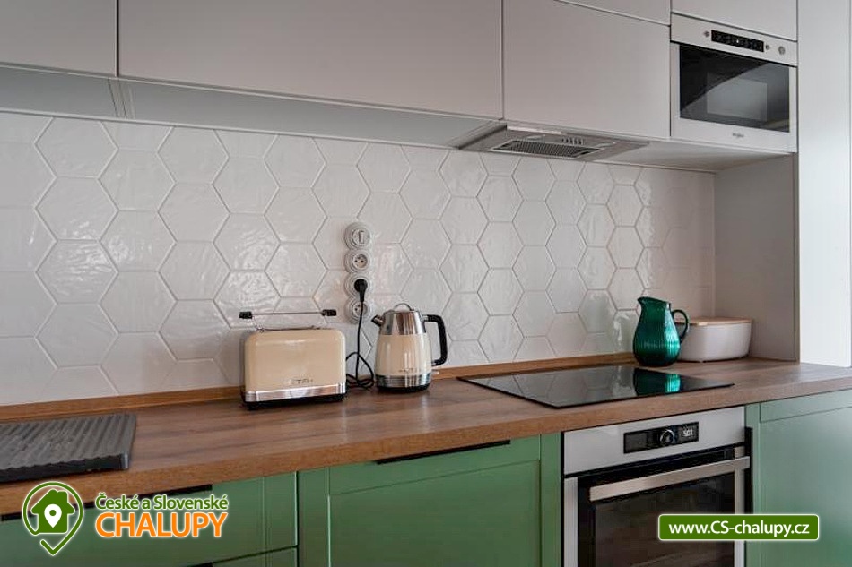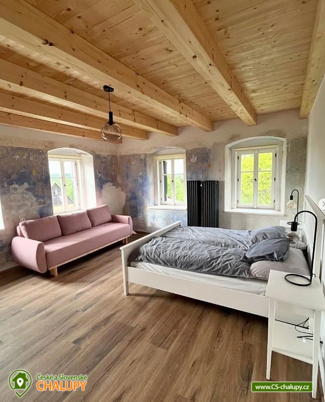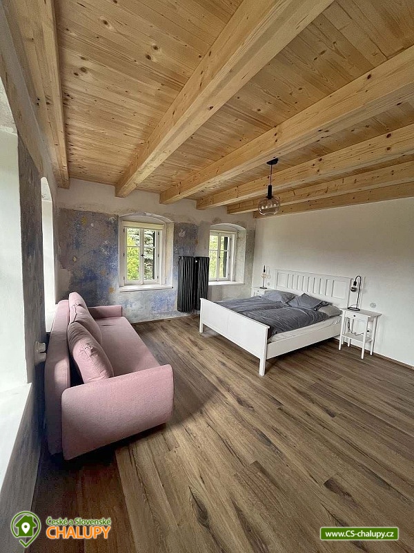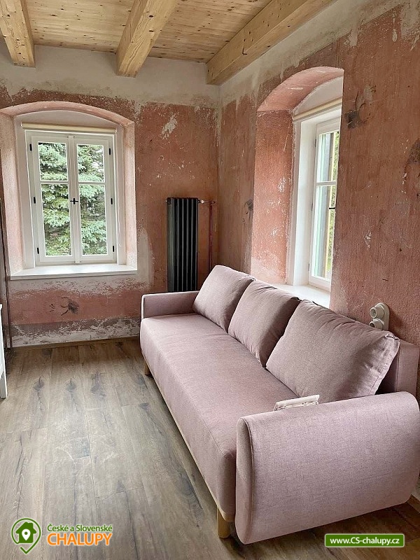 Chalupa s wellness se nachází v blízkosti lesa a luk na klidném místě nedaleko areálu Klínovec v malebném prostředí Krušných hor. Těšit se můžete na stylový interiér, kde se spojuje tradiční horská architektura s moderními prvky. Příjemný relax si užijete ve wellness místnosti s finskou saunou pro 6 osob, ledovou kádí, sprchou a lehátky. Chalupa nabízí ubytování pro až 18 osob v 5 ložnicích. Ubytování je vhodné pro rekreaci rodiny, větších skupin nebo pro pořádání oslav, teambuildingů, či cvičebních pobytů. V přízemí je umístěná dvoulůžková ložnice s 1x manželskou postelí. Další čtyři čtyřlůžkové ložnice se nachází v patře. Ve všech je k dispozici 1x manželská postel a 2x přistýlka řešená rozkládacím gaučem. V přízemí se nachází vstupní hala, technická místnost pračkou, sušákem na boty a stojanem na lyže nebo kola. Příjemné chvíle lze trávit ve společenské místnosti s krbovými kamny, se sedací soupravou, knihovnou, chytrou TV s O2TV, velkým oknem s možností sezení v něm, prostorným jídelním stolem a plně vybavenou kuchyní s ostrůvkem (lednice, mrazák, trouba, automatický kávovar na zrna, mikrovlnná trouba, spíž, hrnce, pánve, veškeré nádobí a příbory). Ke chvílím zábavy slouží podkrovní prostor s barem s chladničkou, sedací soupravou, stolky k posezení, pingpongovým stolem, stolním fotbálkem a v podhledu se zabudovanými reproduktory. K baru patří i chladící výčepní zařízení. Po domluvě lze zajistit sud piva. V celém objektu je k dispozici WIFI připojení na internet. Sociální zařízení zahrnuje v přízemí jednu koupelnu se sprchovým koutem a samostatné WC a v patře jednu koupelnu s vanou a WC. Další sprchový kout je u sauny. K dispozici jsou ručníky a prostěradla na saunování. Vytápění je řešeno ústředním vytápěním tepelným čerpadlem a elektrickým kotlem. V obývacím pokoji jsou k dispozici krbová kamna s výměníkem umožňujícím vytápění celého objektu. V chalupě si lze zapůjčit vysavač, koště, úklidové prostředky a erární pantofle. Součástí chalupy je dostatek úložných prostorů, hasící přístroj a lékarnička. Na obývací pokoj navazuje prostorná sluneční terasa, kde je připraveno posezení (stolek, židle a lavice), lehátka a plynový gril. Parkovat lze přímo u objektu. V blízkosti chalupy možnost turistiky, cykloturistiky, koupání, houbaření, lyžování a běžkování. Součástí obce je rybník, ve kterém je možné se vykoupat a v zimě na něm bruslit, a kuželna. Zhruba 10 minut od chaty se nachází areál Klínovec, který v zimě slouží k lyžování a v létě nabízí pro cyklisty upravované traily všech obtížností. Dále jsou k dispozici lyžařská střediska: Loučná pod Klínovcem, Alšovka - Měděnec, Neklid - Boží Dar a další. Mezi možnosti koupání patří také např.:aquapark Klášterec nad Ohří, Koupaliště Perštejn, aquapark Jáchymov, Černé jezírko, Velký rybník Hroznětín, atd. K výletům v okolí láká zaniklá vesnice Königsmühle, Muzeum letecké bitvy nad Kovářskou, vrch Měďník, vodní nádrž Přísečnice, vrch Velký Špičák, Zámek Klášterec nad Ohří nebo na německé straně Fichtelberg nad městem Kurort Oberwiesenthal. Těšíme se na Vás u nás.