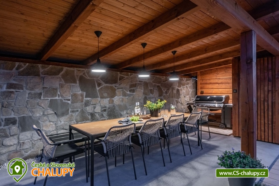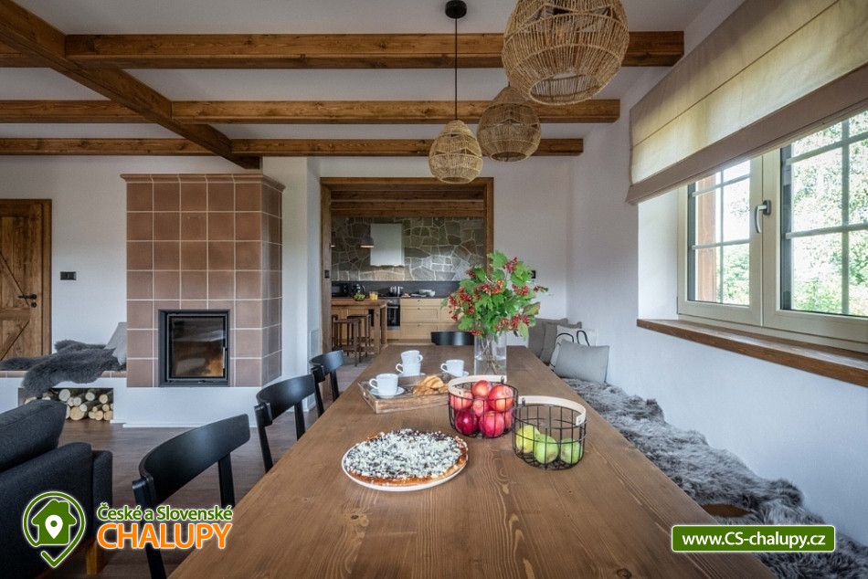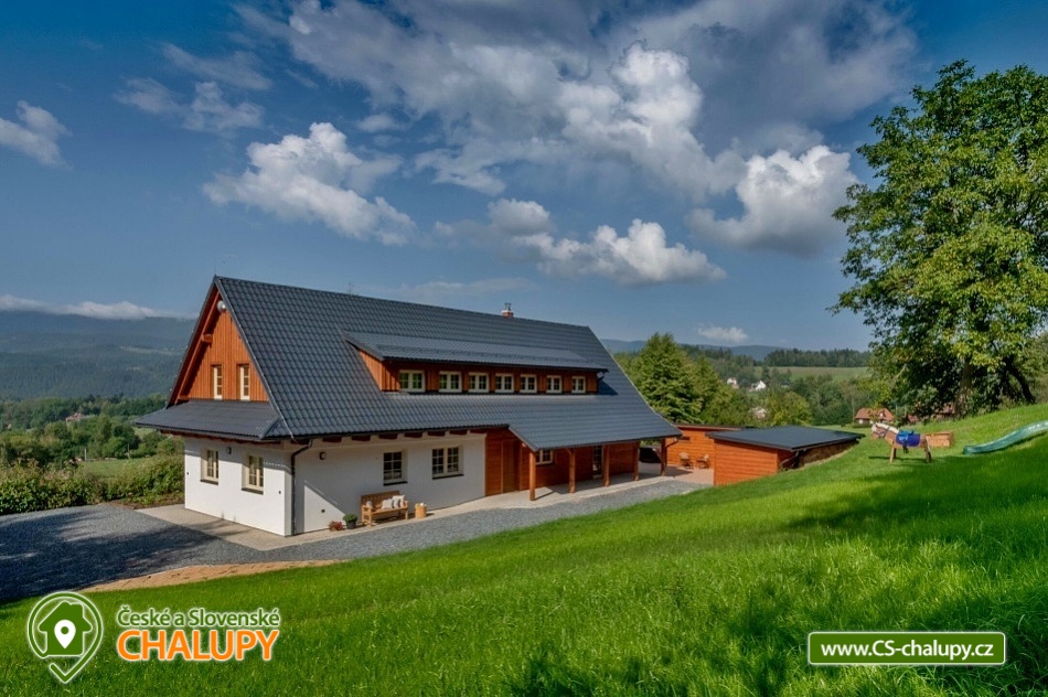 Chalupa s wellness Beskydy (finská sauna a vířivka) v CHKO Beskydy u Rožnovské Bečky pod vrchem Soláň. Nadstandardně vybavená chalupě pro až 14 osob (13 standardních lůžek + 1 přistýlka). K dispozici je čtyřlůžkový pokoj (s možností přistýlky) s vlastním sociálním zařízením a 1x apartmán: dvoulůžkový + dvoulůžkový pokoj se společným sociálním zařízením. Dále 1x apartmán: dvoulůžkový + třílůžkový pokoj se společným sociálním zařízením. V chalupě je kvalitní wi-fi připojení a televize v obývacím pokoji. Moderní kuchyň je vybavená americkou lednicí, myčkou, elektrickou troubou s mikrovlnnou funkcí, rychlovarnou konvicí, kávovarem De’Longhi a veškerým nádobím. Ve všech prostorách je podlahové topení, v obývacím pokoji jsou navíc ještě krbová kamna s lenoškou. V pokojích jsme si dali záležet na výběru kvalitních postelí a matrací. Na vyžádání připravíme dětské postýlky či jídelní židličky pro vaše nejmenší. Venku jsou k dispozici terasa s grilem a posezením, finská sauna, vířivka, dětské hřiště a stolní tenis. Parkovat je možné přímo u chalupy. Příjezdovou cestu udržujeme celoročně. Chalupa se nachází v CHKO Beskydy, v obci Hutisko-Solanec, která je vzdálená hodinu cesty z Ostravy, hodinu a půl z Olomouce a čtyři hodiny cesty autem z Prahy. Okolí je dále protkáno řadou turistických, cyklistických i lyžařských tras. Ski areál Soláň nabízí sedm udržovaných sjezdovek různých obtížností a dvě upravené běžecké trasy uprostřed panenské beskydské přírody. Chalupa se nachází na polosamotě, obklopena lesem, loukami a pastvinami. Chalupa nabízí soukromí, ale zároveň možnost vyžití díky dostupnosti civilizace. Deset minut chůze se nachází koupaliště s multifunkčním hřištěm a tenisové kurty. Těšíme se na Vás u nás.