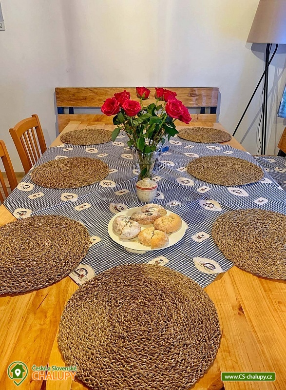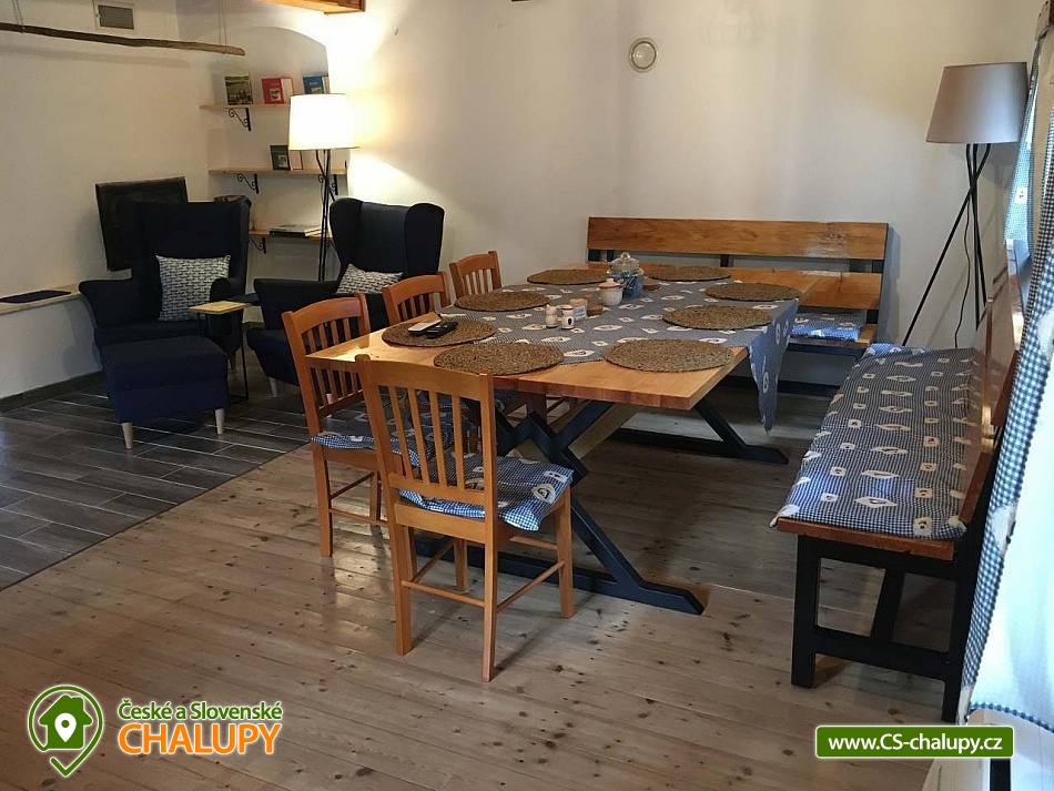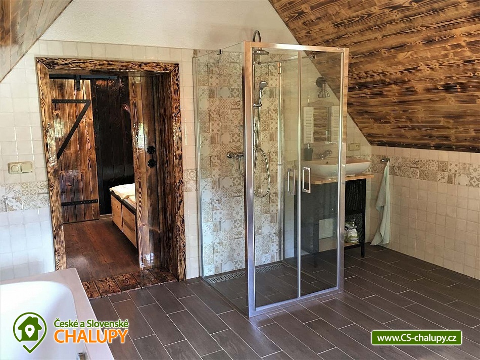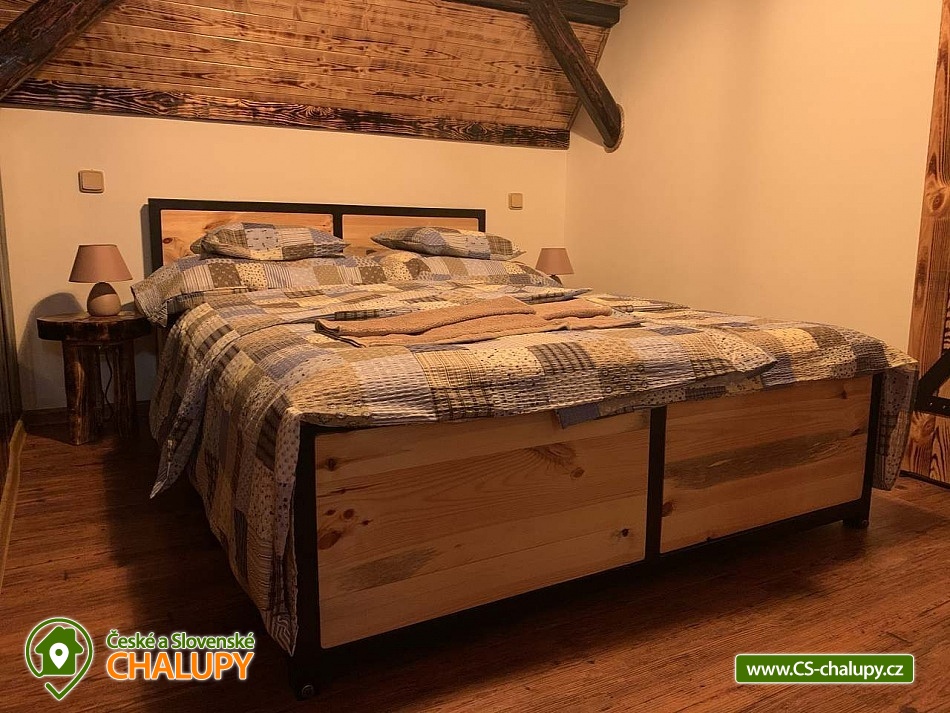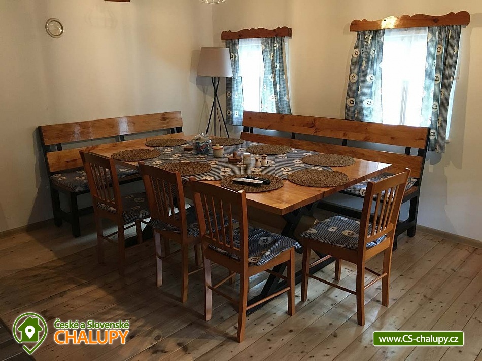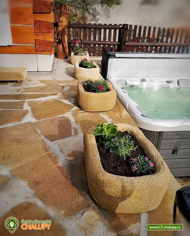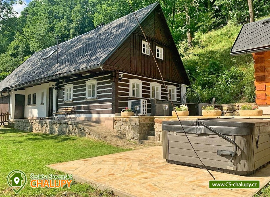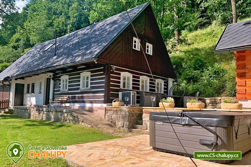 Chalupa s wellness (finská sauna, venkovní vířivka a bazén) v nádherném prostředí na úpatí Adršpašsko - teplických skal, oblast CHKO Broumovsko, obec Vlásenka, Česká Metuje. Okolí nabízí nesčetné možnosti turistiky, horolezectví, procházek v přírodě i zimních radovánek v podobě sáňkování či lyžování. Třešničkou na dortu je vířivka, sauna a venkovní bazén u chalupy, kde si dopřejete zasloužený odpočinek po aktivním dni. Ubytujte se v citlivě rekonstruované polodřevěnici z 19. století. Objekt je vhodný pro jednu skupinu hostů s maximální kapacitou až 8 osob. V přízemí Vás přivítá obývací místnost pro společně strávené chvíle. Oceníte velké dřevěné posezení pro společné stravování, pohodlné křesla, společenské hry a internetovou televizi se satelitním připojením a službou Netflix. Hřejivou atmosféru vytvoří krbová vložka. Přejděte plynule do vybavené kuchyně, kde je radost uvařit společný oběd či večeři. Využijete elektrickou troubu a sporák, lednici s mrazákem, mikrovlnnou troubu, rychlovarnou konvici, kávovar, toastovač i topinkovač. K dispozici je dokonce i kontaktní gril. Koupelna v přízemí nabízí komfort v podobě sprchového koutu, toalety a ručníků. Na patře dostatek soukromí nabízejí dvě ložnice. Ložnice Veronika je zařízena manželskou postelí a dvěma samostatnými lůžky, v ložnici Viktorka se nacházejí dvě manželské postele. Okouzlí Vás nádherná, prostorná koupelna s "walk-in" sprchovým koutem, vanou, toaletou a přebalovacím pultem. Mysleli jsme i na nejmenší, pro které jsme připravili dětskou postýlku i dětskou jídelní židli. Bezplatné WiFi připojení na internet je samozřejmostí. Na dvoře každého návštěvníka potěší vířivka, v letním období venkovní bazén a v případě chladného počasí určitě i sauna. Víme, že nikomu se nechce stát u sporáku když je venku hezky, udělejte si proto na dvoře grilovačku a poseďte si na venkovním posezení na terase. Pokud si dovezete vlastní lyže či kola, bez problémů si je uschováte v garáži. Oblast je součástí Chráněné krajinné oblasti Broumovsko. Vyberte se poznávat přírodu, navštivte zříceninu hradu Skály, rozhlednu Čáp nebo vodopád v Anenském údolí. Krásy podzemí odhalí Mariánská jeskyně a jeskyně Kovárna. Jednoznačně si udělejte výlet na Adršpašsko-teplické skály. V okolí se nachází množství nádherných lezeckých cest, zeptejte se nás na ně, rádi Vám poradíme. Za historií či kulturou se vydejte na Hrad Střmen do Muzea papírových modelů či do Broumoského kláštera. Nezapomeňte se zastavit v Pivovaru Broumov a na ovčí bio farmě M & M v Šonov. No a v zimě máte nejbližší vlek nebíčka jen 4 km vzdálený nebo si vychutnejte lyžování ve Ski Kamenec Teplice nad Metují.