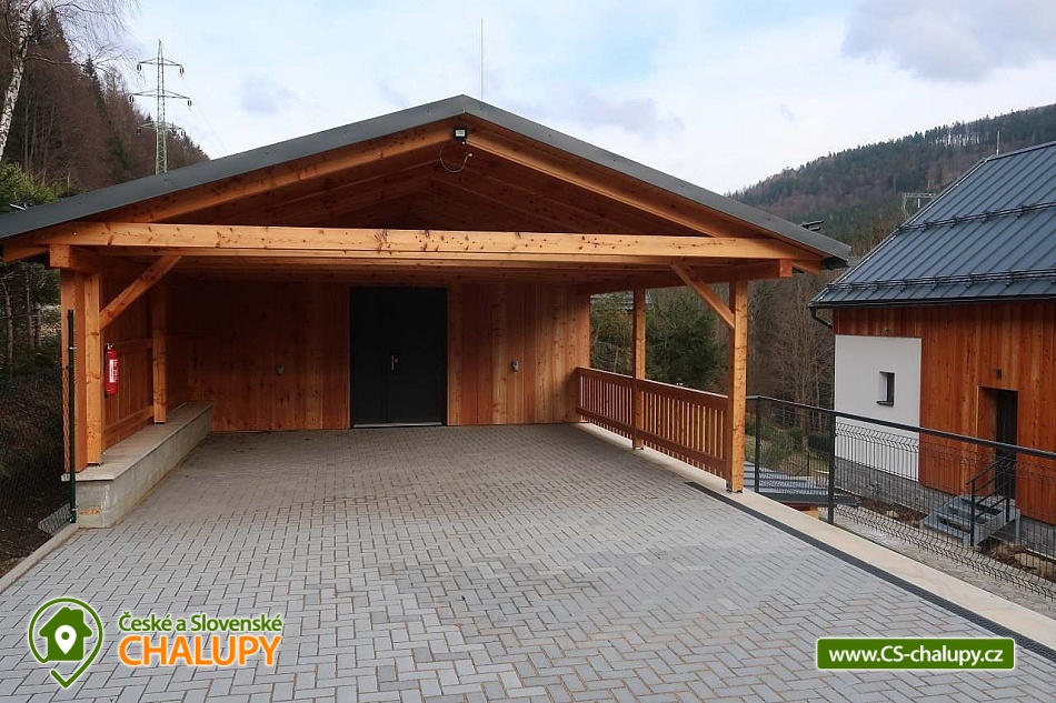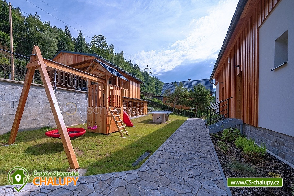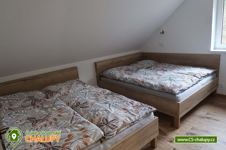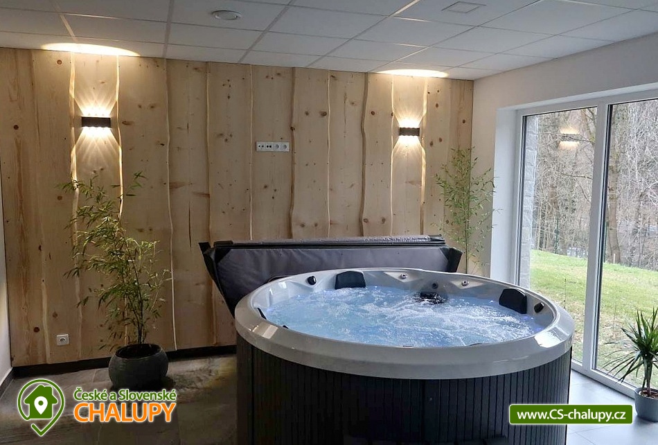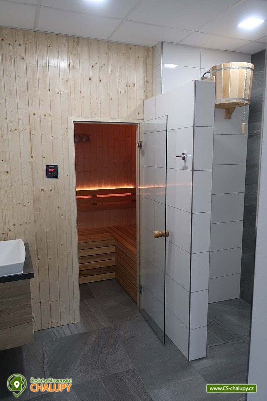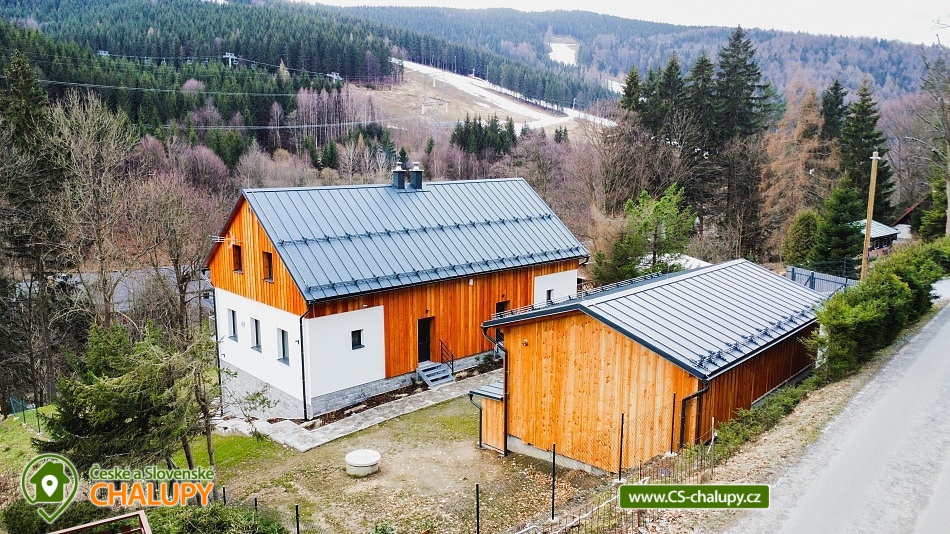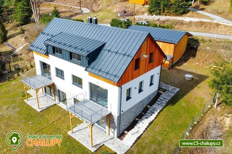 Chalupa s wellness (sauna a vířivka) nedaleko Červenohorského sedla a střediska Ovčárna v Jeseníkách. Chalupa se dělí na 2 části - každá část pro až 9 osob se pronajímá samostatně. Možný je samozřejmě i pronájem obou částí společně pro až 18 osob. Každá část chalupy má svůj vlastní wellness se soukromou vířivkou a saunou. Každá část má 2 ložnice (jedna ložnice má dvě dvojlůžka a druhá ložnice má dvě dvojlůžka a jedno samostatné lůžko) + k dispozici 2 přistýlky. Kuchyň je kvalitně vybavena všemi spotřebiči, myčka, indukce, trouba s mikrovlnkou, digestoř, americká lednice, kávovar, toustovač, atd. V obývacím pokoji je led televize s internetem. Na terase posezení a stůl s šesti křesly. V suterénu kvalitní vířivka a finská sauna. Každá polovina chalupy má tři koupelny - dvakrát sprchový kout a jedna vana a tři WC, z toho dvě WC jsou samostatné a jedno v koupelně. Podlahové vytápění je v celém objektu napojené na elektrokotel a na krb s výměníkem. Parkování je pro 4 auta v uzavřeném objektu a další 3 auta mohou stát u objektu za plotem venku. Celý pozemek je oplocen má 1300 m2 a ve spodní části má každá polovina chalupy oddělenou zahradu. K dispozici jsou houpačky a společný zahradní krb na opékání. Chalupa se nachází přímo u 6ti sedačkové lanovky, která vede k přečerpávací nádrži Dlouhé Stráně. V okolí objektu možnost turistiky, cykloturistiky, koupání, houbaření, rybaření, lyžování a běžkování. V blízkosti je také golfové hřiště. Mezi možnosti koupání patří např.: bazén Domašov - Bělá pod Pradědem, Velké Losiny - termály, termální koupaliště Velké Losiny, koupaliště Rapotín, Bazén Karlova Studánka, koupaliště Jeseník, bazén Jeseník - Priessnitz, přehrada Krásné, Hynčice pod Sušinou - rybník Úžas, koupaliště Šumperk - Bratrušák, bazén Šumperk - Aquacentrum, atd. V zimním období jsou k dispozici blízká lyžařská střediska: Kouty nad Desnou nebo např. Červenohorské sedlo. Těšíme se na Vás u nás.