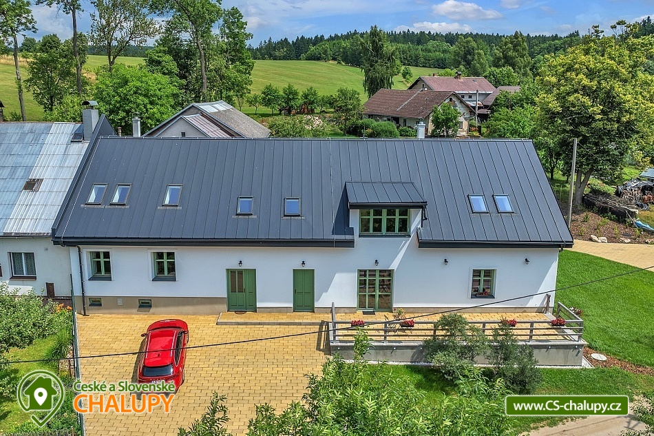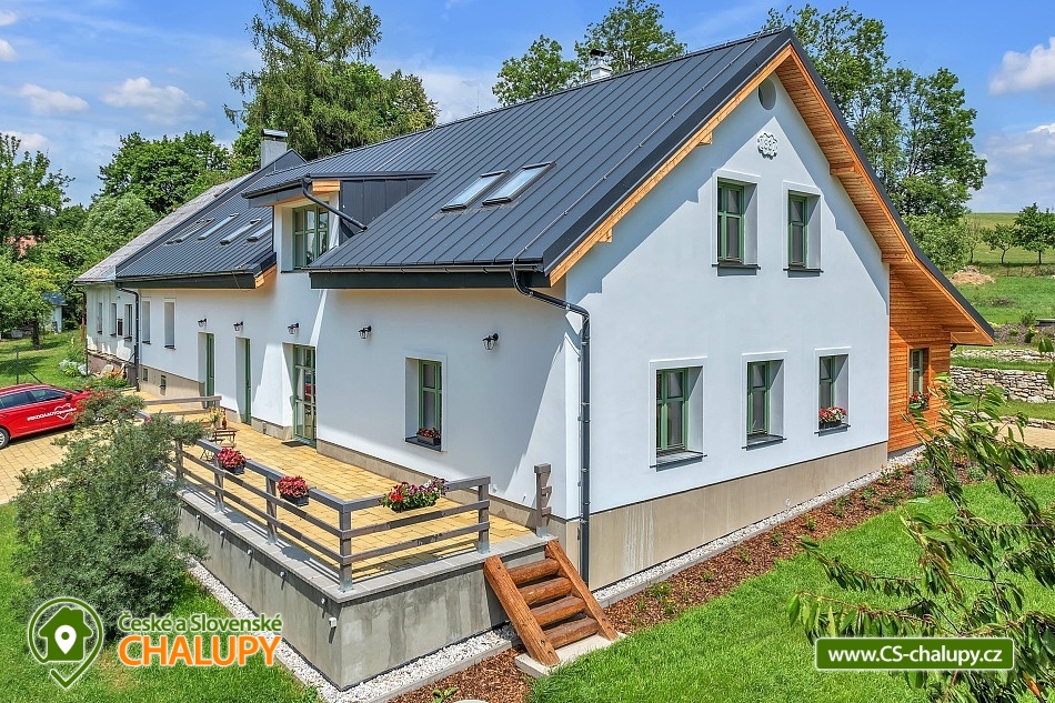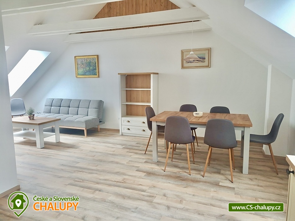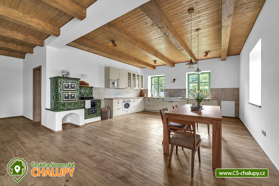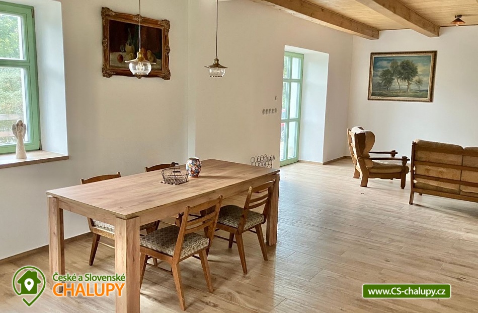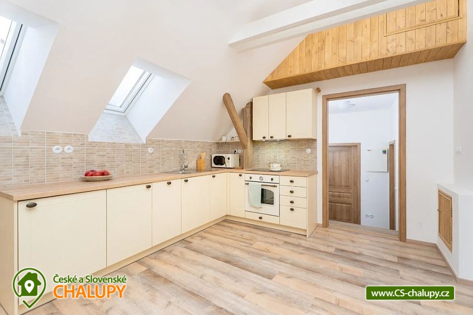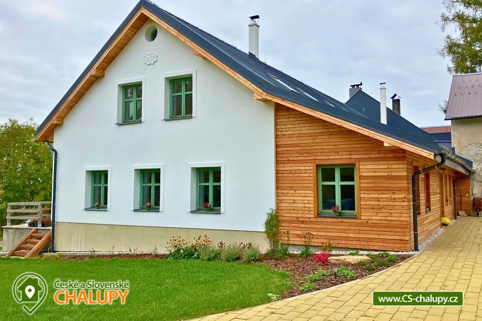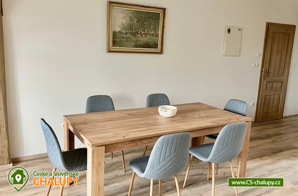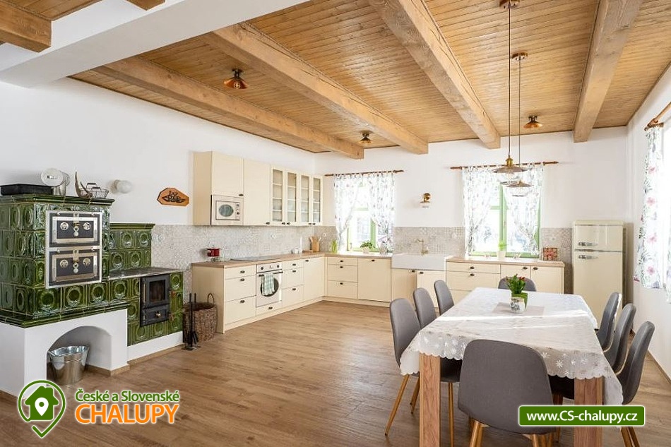 | Vybavení objektu - vnitřní: | společenská místnost, dětská postýlka, dětská stolička, krb / krbová kamna, internet - wifi, vybavená kuchyně, rychlovarná konvice, varná deska, lednička, mrazák, mikrovlnná trouba, myčka, koupelna s vanou, koupelna s wc společné, koupelna se sprchovým koutem, wellness, sauna, TV, společenské hry |