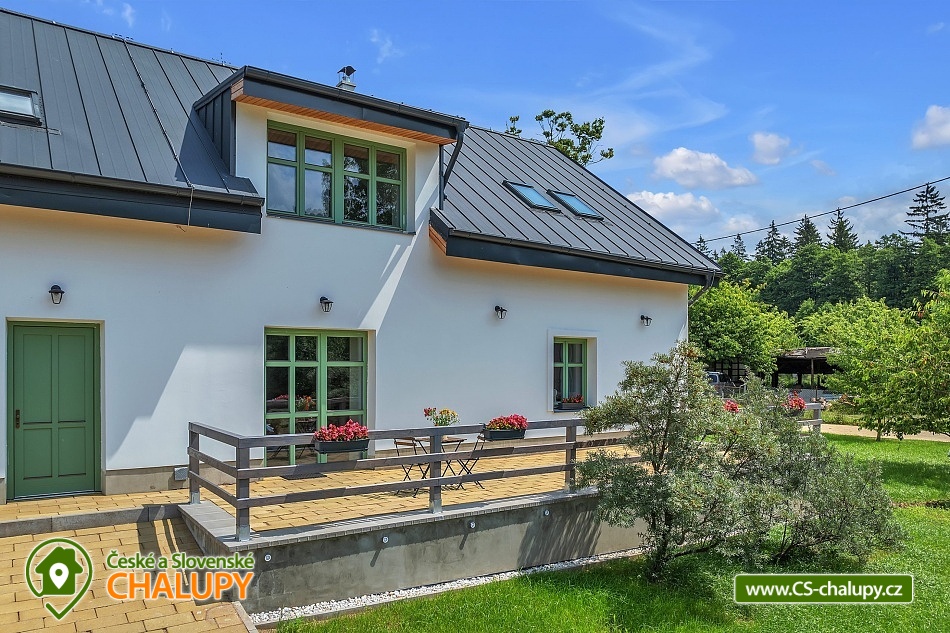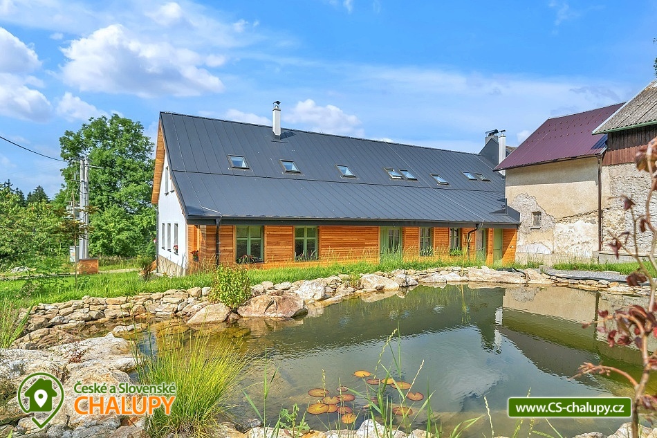 | Vybavení objektu - venkovní: | zahradní nábytek, terasa, zastřešené posezení, zahrada, koupací jezírko, travnatá plocha, ohniště, gril, sklad pro kola/ lyže |