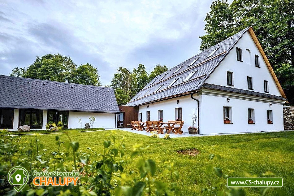 Chalupa s wellness Dolní Morava v nádherné krajině pod Králickým Sněžníkem na pomezí Jeseníků a Orlických hor v obci Prostřední Lipka nedaleko obce Červený Potok. V těsné blízkosti lze zavítat do celoročně provozovaných areálů Dolní Morava, Červená Voda, Říčky v Orlických Horách a České Petrovice. V chalupě se můžete těšit na komfortní pobyt s možností odpočinku v sauně nebo ve venkovním koupacím sudu. Chalupa nabízí ubytování pro až 28 osob v 7 čtyřlůžkových ložnicích. V přízemí je umístěna jedna čtyřlůžková ložnice s manželskou postelí a dvěma jednolůžky a vlastní koupelnou s WC a sprchovým koutem. Dále je součástí přízemí společenská místnost s velkým jídelním stolem, kuchyní, obývací pokoj se sedací soupravou a TV, dvě samostatná WC, vstupní hala s botníky a sušákem na lyžáky, tělocvična (6x12 m) a finská sauna s přilehlou terasou a koupacím sudem. Kuchyň je plně vybavena vším potřebným pro vaření, pečení, stolování a posezení pro velkou skupinu 28 osob. K dispozici je rychlovarná konvice, kávovar, mikrovlnná trouba, pečící trouba, varná deska, lednička, myčka a veškeré nádobí. Využívat lze také instalovanou pípu s třemi kohouty a dostatkem skla. Po domluvě a za příplatek lze zajistit pivo z velkoskladu. V druhém patře se nachází další čtyři čtyřlůžkové ložnice, tři s manželskou postelí a dvěma jednolůžky a jedna s dvěma manželskými postelemi. Dvě ložnice mají vlastní koupelnu se sprchovým koutem a WC a dvě ložnice mají jednu společnou koupelnu, také se sprchovým koutem a WC. K dispozici je jedno samostatné WC na chodbě. Ve třetím patře jsou umístěné další dvě čtyřlůžkové ložnice, každá se čtyřmi jednolůžky. Obě ložnice mají vlastní koupelnu se sprchovým koutem a WC. V celém objektu je k dispozici WIFI připojení na internet. Vytápění je řešeno elektrických kotlem pro podlahové topení v přízemí. Druhé a třetí patro je vytápěno elektrickými přímotopy. V třetím patře a v tělocvičně je k dispozici klimatizace. K dispozici je pračka. Venku kolem chalupy se rozléhá travnatá zahrada. Chalupa má přední a zadní terasu s venkovním posezením. Na zadní terasu je možné vstoupit i z druhého patra. K dispozici je gril a ohniště. Parkovat lze přímo u objektu. V okolí objektu možnost turistiky, cykloturistiky, koupání, houbaření, rybaření, běžkování a lyžování. V blízkosti je také jízdárna. Mezi možnosti koupání patří např.: Velké Losiny - termály, koupaliště Králíky, bazén Mezilesí, Hynčice pod Sušinou - rybník Úžas, koupaliště Jablonné nad Orlicí, přehrada Pastviny, Štíty - Acrobat Park, koupaliště Ruda nad Moravou, koupaliště Kunvald, koupaliště Letohrad, aquapark Žamberk, atd. V zimním období je v okolí k dispozici několik špičkových lyžařských středisek. Mezi nejznámější patří Resort Dolní Morava s 8 upravenými sjezdovkami různých stupňů obtížnosti, s dětským skiparkem Amálka, se zábavnou tratí s klopenkami a 2 tunely, crossovou tratí nebo tratí s překážkami. V okolí k výletům láká Stezka v oblacích Dolní Morava, Tvrz Hůrka, Vojenské muzeum Králíky, Poutní areál Hora Matky Boží v Dolní Hedeči, Rozhledna na Křížové hoře, Suchý vrch, Přírodní park Zemská brána v Klášterci nad Orlicí nebo Přírodní rezervace Králický Sněžník s pramenem řeky Moravy. Těšíme se na Vás u nás.