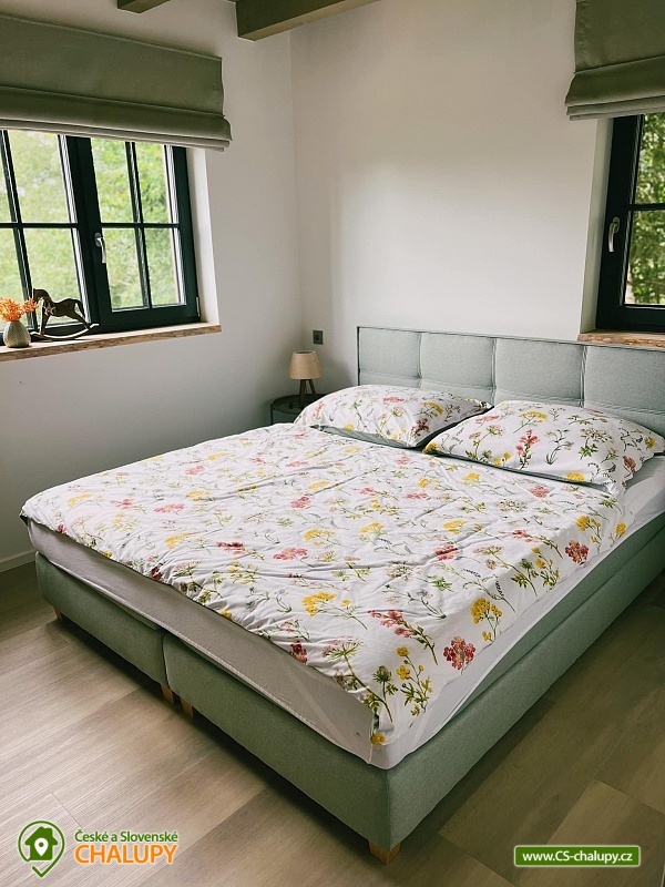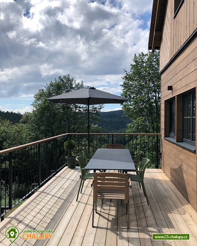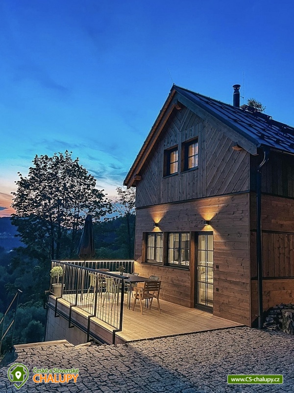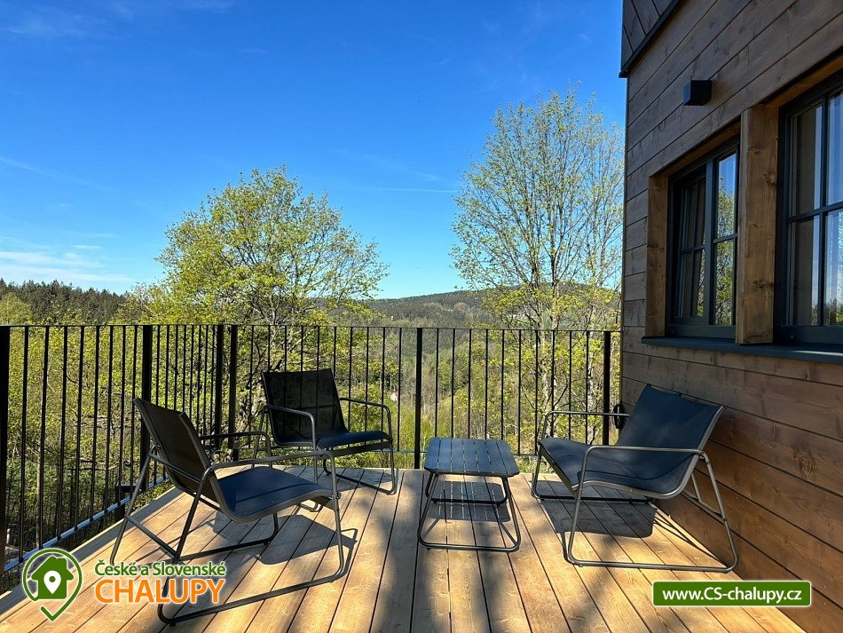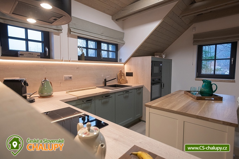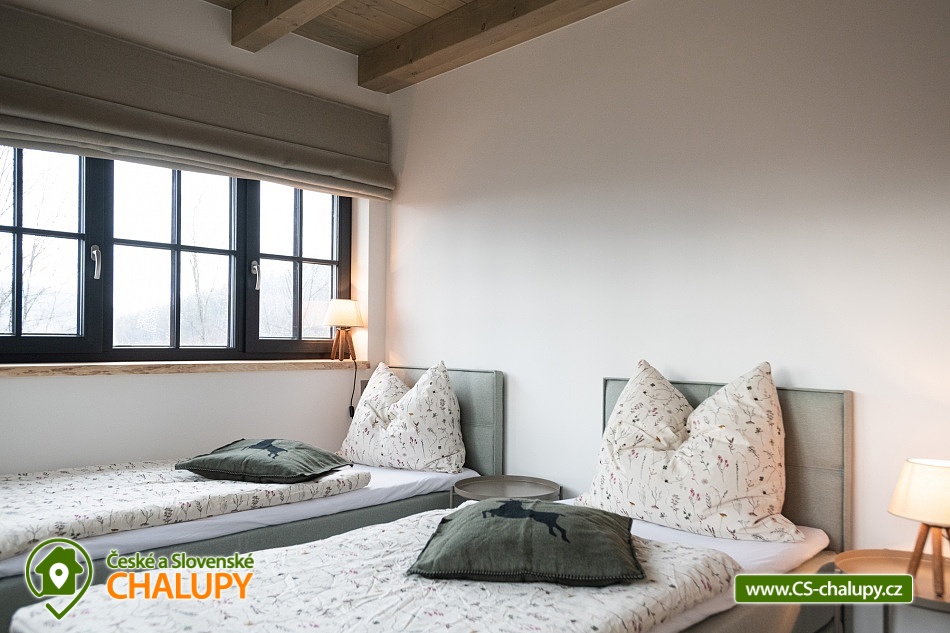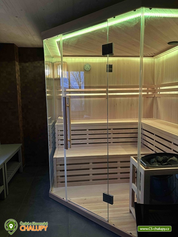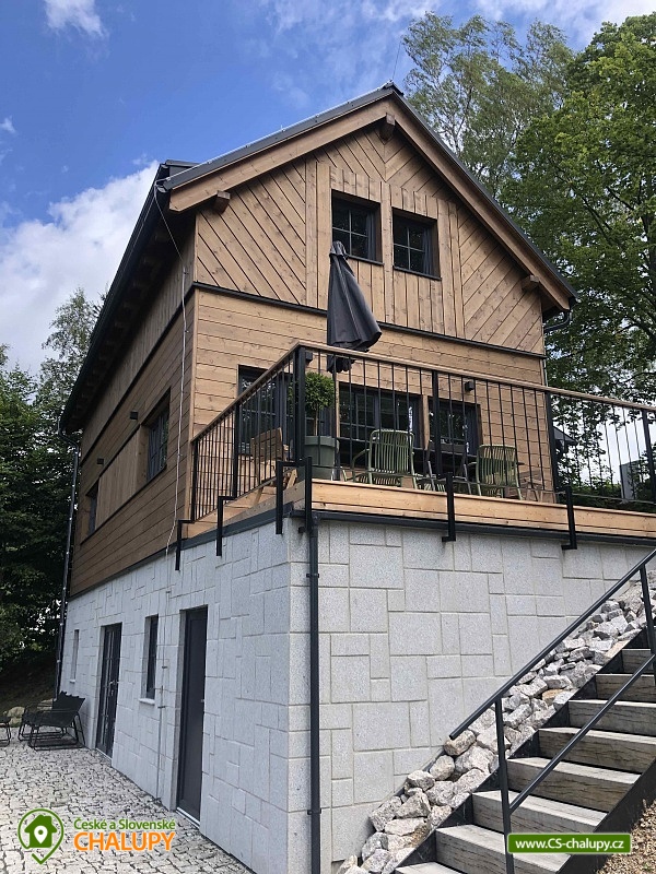 Chalupa s wellness (finská sauna a vyhřívaný koupací sud) nedaleko Bedřichova v Jizerských horách. Luxusní dřevostavba - chalupa pro až 8 osob vyrostla v kopcích nad janovským údolím. Úžasný výhled a strategická poloha pro sport a turistiku nabízí skvělé zážitky všem aktivním návštěvníkům Jizerských hor. Dřevěná novostavba s prvky tradiční jizerskohorské architektury. Vhodně řešená dispozice chalupy s komfortním zázemím umožní všem návštěvníkům Jizerek prožít aktivní pobyt doplněný o příjemné zázemí pro odpočinek a relax v horském prostředí. V chalupě je k dispozici plně vybavená kuchyně a obývací prostor s posezením. Kuchyně je vybavena elektrickou troubou, sklokeramickou deskou, lednicí, mikrovlnou troubou, varnou konvicí, kávovarem Nespresso a topinkovačem. Společenská místnost je vybavena jídelním stolem, pohodlnou pohovkou, LED TV a krbovými kamny. Na venkovní terase najdete venkovní nábytek k pohodlnému posezení s výhledem do kraje. U chalupy je také lavice na ranní kávičku s prvním slunkem. Druhou kuchyni najdete v suterénu u finské sauny, která je určena pro přípravu na venkovní grilování. K dispozici jsou 3 ložnice: 2x 2-lůžková a 1x 4-lůžková. Sociální zařízení zahrnuje 2x WC a koupelnu. Vytápění zajišťuje tepelné čerpadlo. Parkování je možné přímo u objektu. V okolí chalupy najdete nespočet turistických zajímavostí pro celoroční objevování, provozování zimních a letních sportů nebo jen startovní bránu k výletům do rozmanité přírody Jizerských hor. Místa jako Hrabětice, Josefodolská přehrada, rozhledna Bramberk, Prezidentská chata, Severák, Slovanka, Bedřichov, Hřebínek, Knajpa nebo Královka jsou oblíbenými turistickými body zájmu. Z nejhezčí louky Jizerských hor, pár desítek metrů nad naší chalupou, můžete vzhlížet k ikonickému Ještědu. Věříme, že krásy Jizerek v kombinaci s příjemnou zastávkou v chalupě Vás dokonale nabijí na všechny Vaše plánované mise a denní rutiny. Těšíme se na Vás u nás!