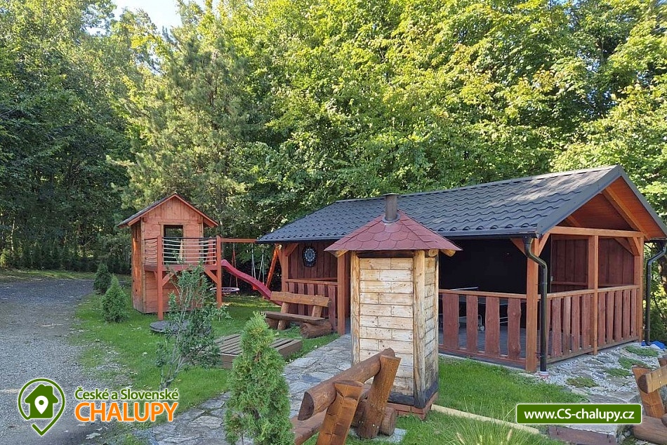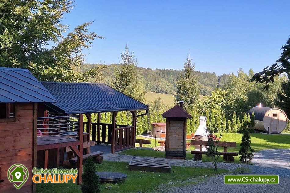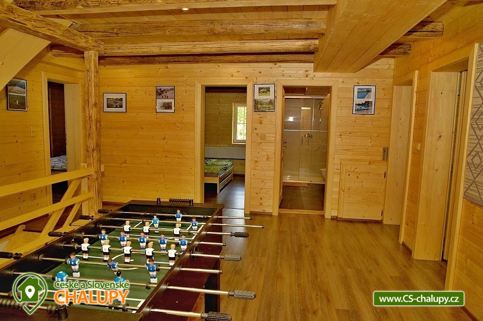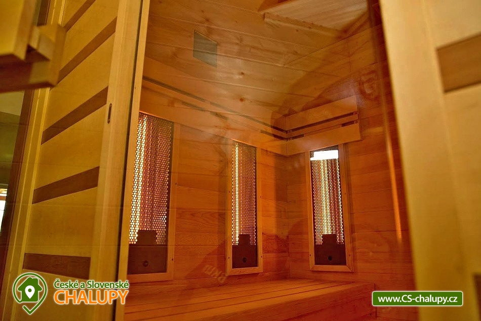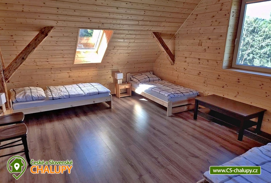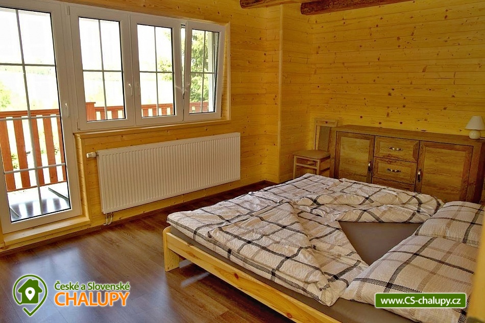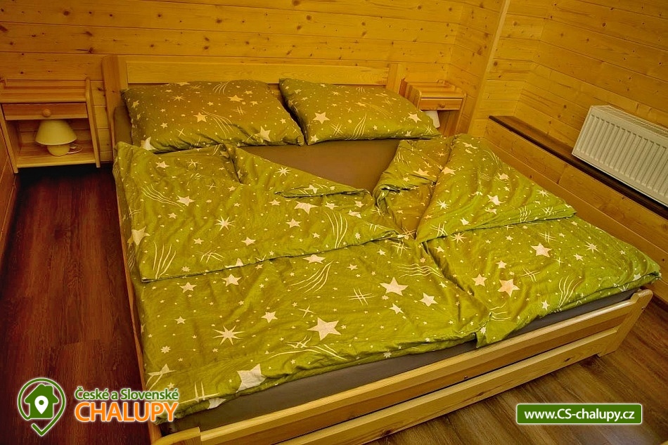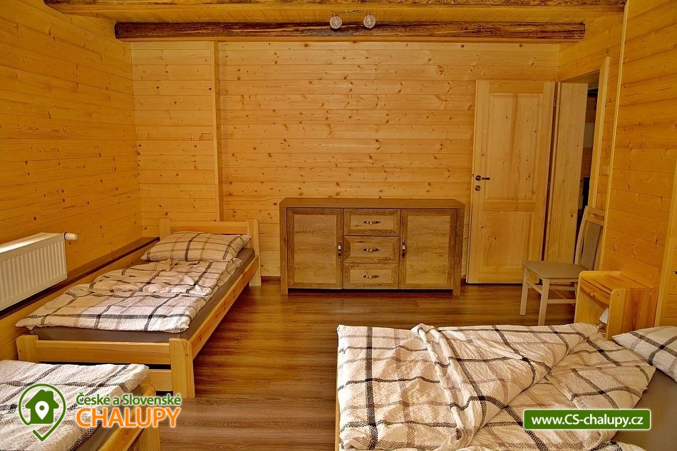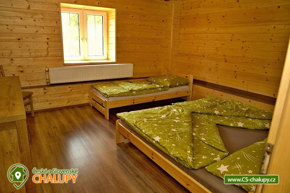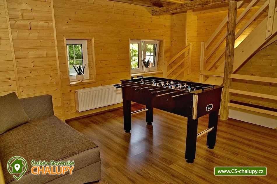 Wellness chalupa (finská sauna + vyhřívaný koupací sud + vířivka) vybavená pro maximální pohodlí i rodinné pobyty (nafukovací skákací hrad). Poloha v klidné části chatové osady nedaleko zámku Janský vrch v Rychlebských horách. Na své si u nás přijdou milovníci přírody pěší turistiky i na kolech, a nebo jen relaxovat a kochat se krásným výhledem na okolní pastviny a les. Maximální důraz klademe na čistotu - spokojení hosté ocení naší práci. Chalupa k pronájmu poskytuje ubytování pro až 22 osob v 7 ložnicích. POPIS: Přízemí - ložnice (manželská postel, 2 osoby). Obývací pokoj (rozkládací gauč), TV a SAT. Plně vybavená kuchyně (keramická varná deska, elektrická trouba, mikrovlnná trouba, rychlovarná konvice, lednice s mrazákem, kávovar na kapsle i myčka nádobí). Patro - pokoj č.1. (manželská postel + jednolůžko). Pokoj č.2.- (manželská postel). Pokoj č.3.- (manželská postel). Pokoj č.4. (manželská postel + jednolůžko). Pokoj č.5. (manželská postel + 2x jednolůžko). Pokoj č. 6. (manželská postel + 2x jednolůžko). V patře se dále nachází společenská místnost, kde si můžete posedět na pohovce nebo zahrát stolní fotbal. Sociální zařízení: 2x koupelna (sprchový kout) + 2x WC. Vytápění: krbová kamna + automatický kotel na pelety. Parkování přímo u chalupy, 10 parkovacích míst. Na zahradě u chalupy je pro Vaše děti skákací hrad (za poplatek) a pískoviště. Pod altánkem se nachází stolní tenis a šipky. Na zahradě můžete hrát také petangue, kriket nebo frisbee. Vaše sportovní potřeby můžete odložit do kůlny. V letních dnech můžete využít gril na dřevěné uhlí nebo ohniště. Dopřejte si točené pivo na terase s venkovním posezením - můžeme Vám zapůjčit pípu na čepování piva. Během pobytu Vás nebude nikdo rušit neboť na chalupě je velmi špatný mobilní signál a dokonce zde nemáme ani internet. Okolí: Rychlebské stezky - cykloturistika, Lesní bar Stříbrný pramen - Zálesí, který provozuje sám majitel chalupy. Dále zámek Jánský Vrch v Javorníku, Borůvková hora - nedaleký 899 m vysoký vrchol s možností návštěvy rozhledny, Tančírna v Račím údolí - zrekonstruovaná architektonická památka (koncerty, výstavy). Krytý bazén Javorník, Koupaliště Červenka a Otmuchowské jezero. V zimě skiareály: Filipovice, Horní Lipová, Ladek Zdrój. Těšíme se na Vás u nás.