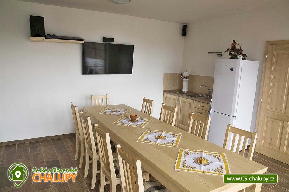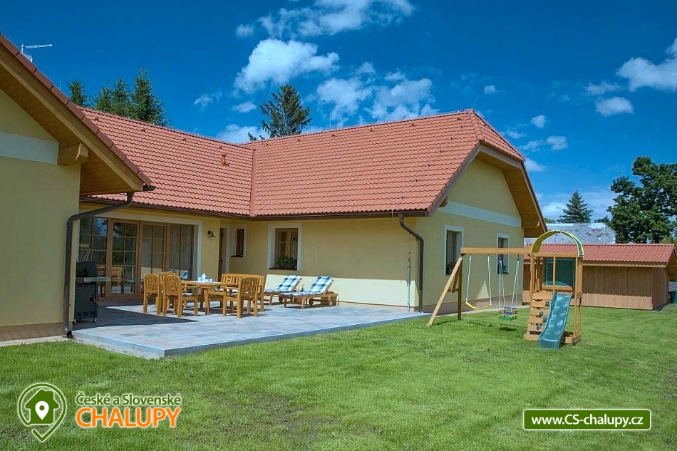 Chalupa s infrasaunou a venkovní terasou nedaleko rozhledny Javorník a hradu Kašperk v krásné přírodě NP Šumava. Kapacita objektu je až 10 osob ve 3 samostatně pronajímaných apartmánech (2+4+4) s vlastním sociálním zařízením a kuchyňkou. Ideální pobyt pro pro milovníky přírody, turistiky, cyklistiky nebo lyžování. Celkem je k dispozici: Bezbariérový apartmán uzpůsobený pro osoby handicapem - jednopokojový apartmán pro 2 osoby (2x jednolůžko ve společenské místnosti), Oranžový a Hnědý apartmán - dvoupokojové apartmány pro 4 osoby (1x manželská postel v samostatné ložnici a 1x palanda ve společenské místnosti). Součástí všech apartmánů je menší společenská místnost s jídelním stolem, TV a vybavenou kuchyňkou (lednice, vařič, mikrovlnka a varná konvice). Sociální zařízení zahrnuje ve všech apartmánech jednu koupelnu se sprchovým koutem a WC. K dispozici je pračka. Vytápění je řešeno podlahovým topením. V celém objektu je zajištěno WIFI připojení na internet. Všichni ubytování mohou využívat také prostornou společenskou místnost s velkým jídelním stolem, kuchyňským koutem s pivním výčepem a lednicí, domácím kinem s výkonným audio systémem a dětským koutkem. Místnost může sloužit k pořádání oslav a večírků. Chvíle odpočinku si lze užívat v infrasauně. Kolem chalupy se rozléhá velká travnatá zahrada. K posezení slouží společná venkovní terasa s grilem. Děti ocení venkovní hřiště s houpačkami a skluzavkou. K dispozici je úschovna pro kola a lyže. Parkovat lze zdarma přímo u objektu. Každý apartmán má své parkovací místo. V okolí chalupy možnost turistiky, cykloturistiky, koupání, lyžování, běžkování a houbaření. Restaurace, obchody, pošta, cukrárna (1km). Mezi možnosti koupání patří např.: koupaliště Rohanov, koupaliště Vimperk, Rybník Zdíkovec, Aquaparky Sušice nebo Horažďovice atd. K dispozici jsou blízká lyžařská střediska: Zadov, Nové Hutě, Javorník nebo Kašperské hory. K výletům v okolí láká lanové centrum Zadov, Hrad Kašperk, Hrad Rabí, rozhledny Zadov, Javorník, Boubín, Svatobor a Sedlo, dále historické centrum města Vimperk, Tvrz Volyně, Vodní mlýn Hoslovice nebo Singltrek Prachatice. Těšíme se na Vás u nás.