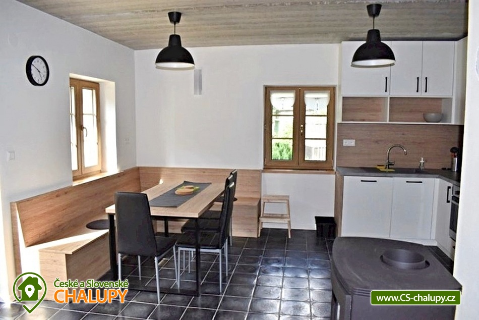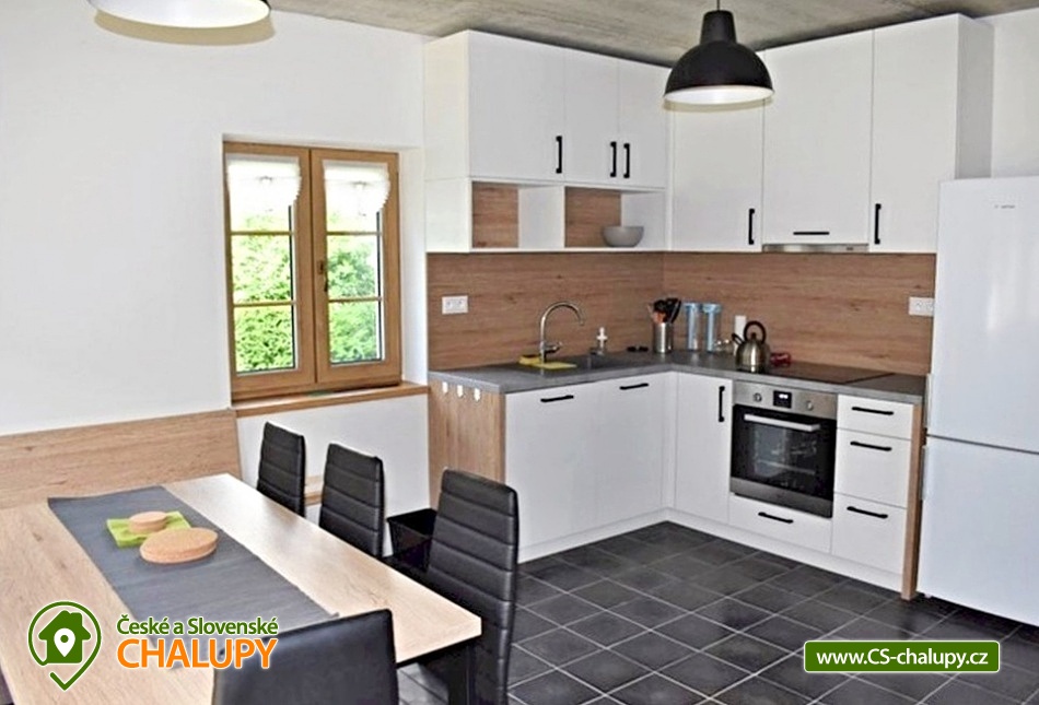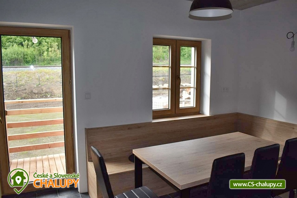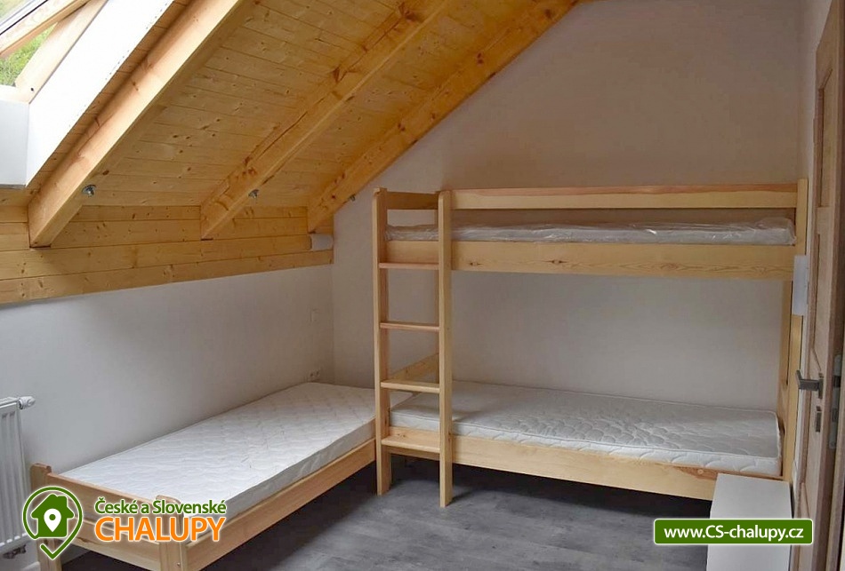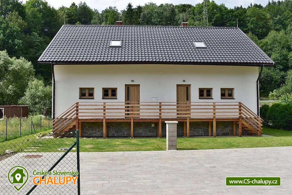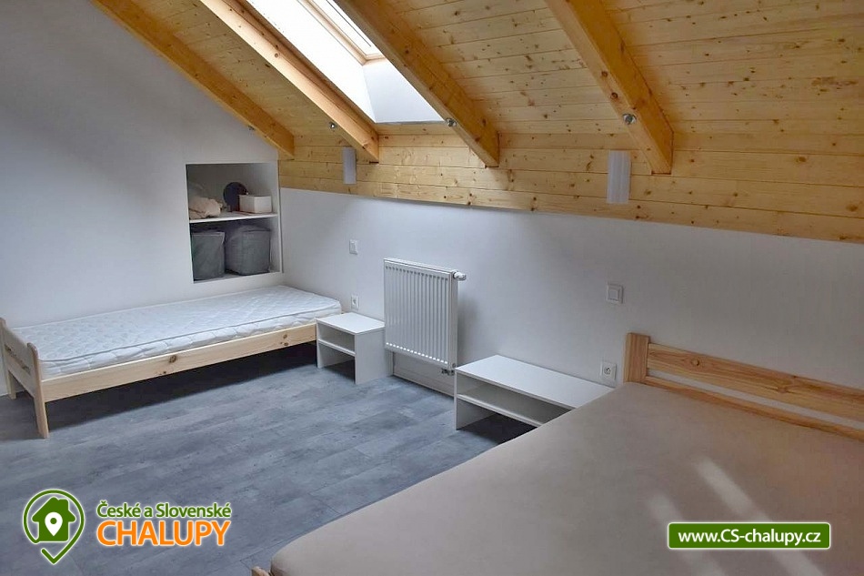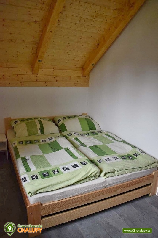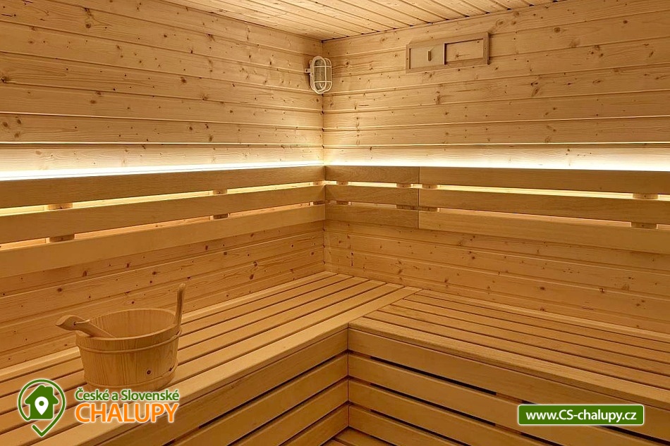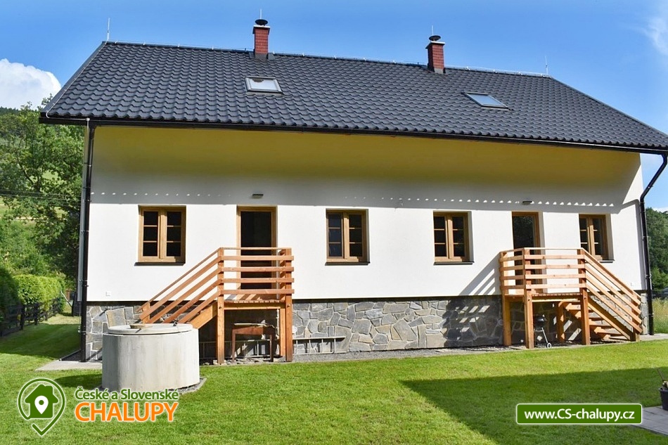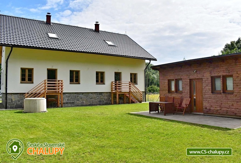 Chalupa se saunou se nachází nedaleko areálů Kouty a Červenohorské sedlo, poloha v obci Loučná nad Desnou, která je ideálním místem pro turistiku po Jeseníkách. Nabízí ubytování pro až 22 osob ve dvou stejných apartmánech (11 + 11 osob). Chalupu je možné si pronajmout jako celek nebo každý apartmán zvlášť. Každý apartmán má svůj vlastní vchod a nabízí ubytování pro až 11 osob ve třech ložnicích (1x dvoulůžková, 1x třílůžková s palandou a jednolůžkem, 1x pětilůžková s palandou, jednolůžkem a dvoulůžkem). Další lůžko je na rozkládací pohovce v obývací části, kde najdete také krbová kamna, TV, jídelní stůl s lavicí a židlemi a plně vybavenou kuchyň (lednice, mrazák, indukční varná deska, trouba, myčka, mikrovlnná trouba a varná konvice). V každém apartmánu je jedna koupelna se dvěma umyvadly, sprchovým koutem a WC. K dispozici Wi-Fi připojení. Celá chalupa je vytápěna podlahovým topením a radiátory, možnost si přitopit v krbových kamnech. Parkování u objektu celkem pro 4 auta. Možnost nabíjení elektromobilů a elektrokol přímo z parkoviště před chalupou. Na společné zahradě je k dispozici sauna s jezírkem, zastřešený altán s posezením, gril a ohniště. V okolí chalupy je možnost turistiky, cykloturistiky, houbaření, lyžování a také možnost využít bikeparky, skatepark nebo si zahrát diskgolf a minigolf. V okolí najdete také několik dětských hřišť. Tipy na výlety: zámek Loučná nad Desnou, vodní elektrárna Dlouhé Stráně, Borový vodopád, lesní ekostezka Švagrov, ruční papírna Velké Losiny, zámek Velké Losiny. Možnosti koupání: termální koupaliště Velké Losiny, koupaliště Rapotín, bazén Domašov - Bělá pod Pradědem, Bazén Karlova Studánka, přehrada Krásné. Blízká lyžařská střediska: Kouty nad Desnou, Kareš - Kouty nad Desnou, Ski Centrum OAZA - Loučná nad Desnou, Přemyslov, Kocián - Loučná nad Desnou, Červenohorské sedlo, Vernířovice-Brněnka, X-park Františkov. Těšíme se na Vás u nás.