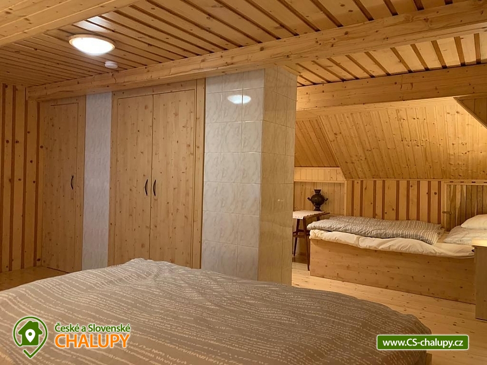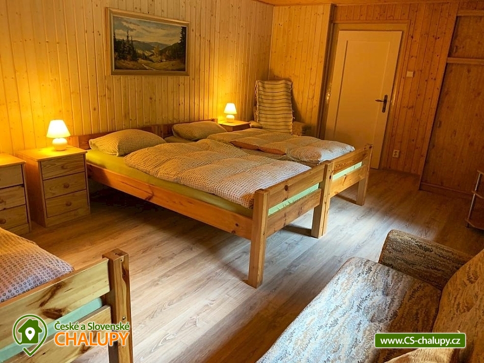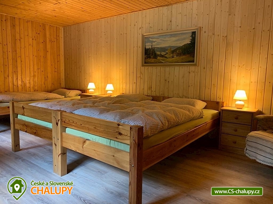 Chalupa se saunou se nachází v CHKO Beskydy, pod Lysou horou v obci Krásná v Moravskoslezském kraji, nedaleko cesty vedoucí na Lysou horu. Za plotem u chalupy protéká potok Mohelnice. Chalupa k pronájmu poskytuje ubytování pro až 18 osob v 5 ložnicích. Je vhodná jak pro rodiny s dětmi, tak pro skupinu přátel. V letních měsících je na zahradě připraven venkovní krb s grilem a posezení se slunečníkem a také lehátky. Děti mohou využít houpaček a pískoviště a dospělí například kuželky. V zimním období si můžete dopřát saunu a masážní vanu. POPIS chalupy: Chalupa nabízí 5 oddělených ložnic (Patro - 2x dvoulůžkový pokoj, 1 x čtyřlůžkový. Přízemí - 2x třílůžkový pokoj). V přízemí se nachází 2 třílůžkové pokoje, obývací pokoj, vybavená kuchyně – elektrický sporák a trouba, kávovar, toustovač, ponorný mixer, myčka nádobí atd. , koupelna se záchodem a pračkou, sauna, samostatná koupelna a 2 samostatné záchody. V 1. patře se nachází 2 dvojlůžkové pokoje (1 s možností přistýlky), 1 čtyřlůžkový (s možností přistýlky), záchod, koupelna, kuchyň a obývací pokoj. Pokoje jsou vybaveny skříněmi, nočními stolky s lampičkami a postelemi. V každém pokoji se nachází elektrické topení. Sociální zařízení: Přízemí: 1x společná koupelna s WC a vanou, 2x WC, 1x koupelna se sprchovým koutem. 1.patro: 1x WC, 1x sprchový kout. Vytápění: V obývacím pokoji v přízemí objektu se nachází krb (krbem se dá vytopit přízemní patro). Ostatní pokoje jsou vybaveny elektrickým topením. Parkování je přímo u chalupy, popřípadě je k dispozici garáž pro 1 auto. Chalupa se nachází v krásné beskydské přírodě, proto je zde celá řada tipů na výlety do okolí. Doporučujeme cyklotrasy v okolí objektu. V zimě pak Ski areály: Sviňorky, Zlatník, Radegast, Visalaje. Celoročně aquaparky: Olešná Tropikana a Bazén: Morávka. Lanový park Tarzanie – Pustevny. Turistika: Lysá hora, Prašivá, Bílý kříž, Švarná Hanka, Travný. Těšíme se na Vás u nás.