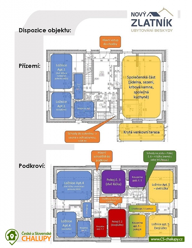 - 10 ložnic: 3x 4, 6x 2, 1x 0+4