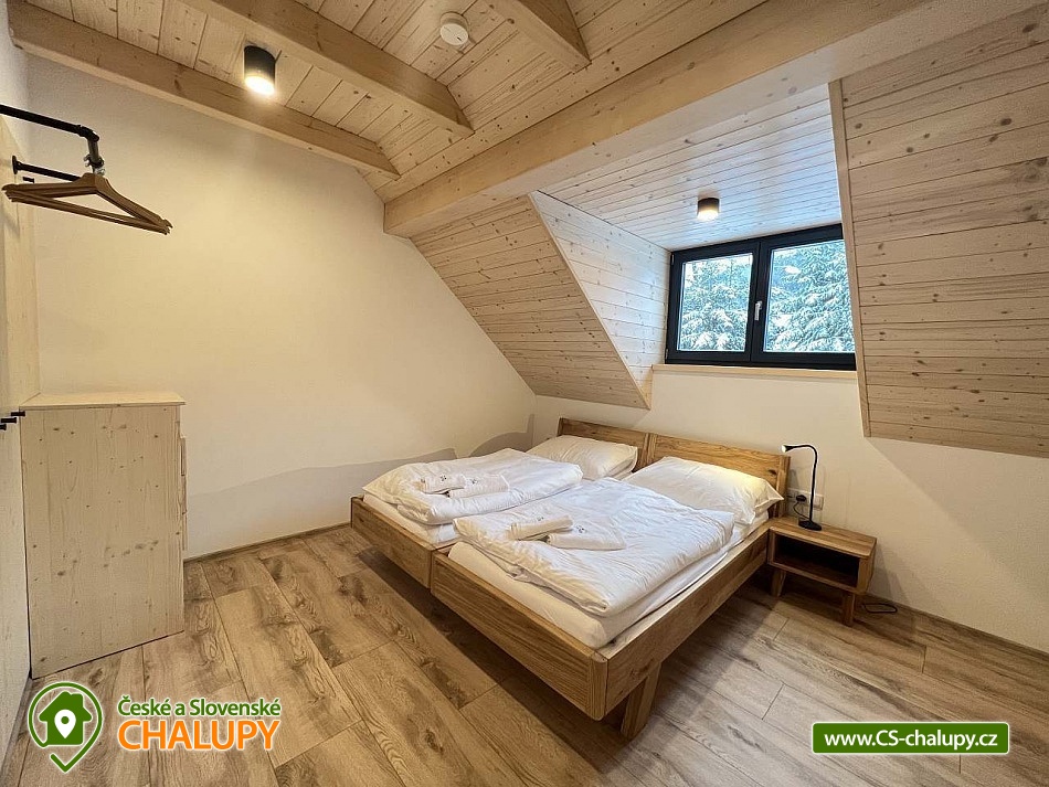 Chalupa se saunou Lysá hora - ubytování CHKO Beskydy. Chalupa k pronájmu poskytuje ubytování pro až 28 osob v celkem 9 ložnicích. Skvěle se hodí jak pro pobyty s dětmi, tak pro firemní akce či setkání s přáteli. Celkem je k dispozici 24 lůžek (z toho 4 na rozkládacích postelích) a další 4 přistýlky (kvalitní matrace) a 2 dětské postýlky. Všechny apartmány i pokoje mají vlastní koupelnu s WC mimo jeden 4lůžkový pokoj. Sociální zařízení zahrnuje celkem 5x koupelna s WC (sprchový kout a umyvadlo), 2x sprchu u sauny a 1x samostatné WC. Vytápění zajišťuje teplovodní podlahové vytápění a krb ve společenské místnosti. Stravování je vlastní s možností vaření ve velmi dobře vybavených kuchyňských koutech. K dispozici jsou celkem 2 (větší kuchyně ve společenských prostorech a menší kuchyně v patře). Dále společenská místnost s jídelnou: společná kuchyně s myčkou, troubou, kávovarem, pípou, americkou lednicí, jídelní stoly pro 24 hostů, TV 65“, wifi, krbová kamna, sedačka, fotbálek a venkovní krytá terasa s posezením. Parkování je pro 5 - 7 aut u chaty, další místa na parkovišti 50m od chaty, kde se taktéž nachází autobusová zastávka. U chalupy je k dispozici venkovní posezení s grilem, ohniště, prolézačky pro děti, trampolína a velký pozemek s potokem. Chalupa se nachází v krásné beskydské přírodě, proto je zde celá řada tipů na výlety do okolí. Doporučujeme cyklotrasy v okolí objektu. V zimě pak Ski areály: Sviňorky, Zlatník, Radegast, Visalaje. Celoročně aquaparky: Olešná Tropikana a Bazén: Morávka. Lanový park Tarzanie – Pustevny. Turistika: Lysá hora, Prašivá, Bílý kříž, Švarná Hanka, Travný. Těšíme se na Vás u nás.