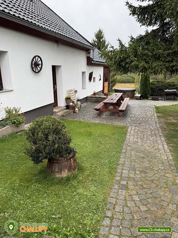 Chalupa se saunou v srdci národního parku Šumava na polosamotě poskytuje ubytování pro až 17 osob ve 4 ložnicích. Chalupa je rozdělena na dvě části a každá má svůj vlastní vchod. Část spodní má dvě ložnice, dvě koupelny a obývací pokoj s kuchyní celkem pro 7 osob a část vrchní podkrovní má dvě ložnice, dvě koupelny obývací pokoj s kuchyní a velkou terasu celkem pro 8 osob. V přízemí je 1x třílůžková ložnice a 1x čtyřlůžkový ložnice. V podkrovní chalupy je 2x čtyřlůžkový ložnice + rozkládací gauč .Ve spodním apartmánu je společenská místnost a kuchyň: krb, jídelna, myčka, trouba, sklo-keramická deska, televize a obývací pohovka. V podkrovní části je druhá společenská místnost i kuchyň: krb, jídelna, myčka, trouba, sklo-keramická deska a televize. V podkroví je dále velká terasa s grilem. Vytápění zajišťuje elektrokotel, který zaručí vytopení celé chalupy bez námahy, dále zde jsou krbová kamna umístěna ve společenské místnosti s výměníkem napojená na centrální topení. Součástí chalupy je také stylová stodola, kde je k dispozice zahradní nábytek či síta na sušení hub, stodola slouží také pro Vaše využití například úschovna kol, lyží atd. U chalupy je dřevěná pergola u které stojí gril pro Vaše dobroty, samozřejmostí je i ohniště a nedotčená příroda kterou si naplno užijete, protože nejbližší sousedé jsou 500 m od nás. Ideální na týdenní či víkendové pobyty. Najděte si místo kam se rádi budete vracet. V letním období je možné objednat tenisový kurt k dispozici je i místní bazén a sauna. Samozřejmostí jsou značené turistické okruhy kolem města. V zimním období jsou perfektní podmínky pro lyžování v německém Mitterdorf (15 minut od domu, cenově velmi výhodné rodinné jízdné) vhodné i pro nejmenší lyžaře, nejbližším střediskem jsou pak České Žleby (10 minut). Po lyžování můžete navštívit blízké termální lázně ve Waldkirchen (mj zde najdete i slaný 35 stupňový termální bazén), nebo městský bazén ve Volarech. Nejznámější turistické cíle: prales Boubín s rozhlednou, Libínské Sedlo s rozhlednou a lanovou dráhou, Plešné jezero, Schwarzenberský kanál s plavením dřeva, Třístoličník, Lipenské jezero, cesta pro cyklisty nebo bruslaře okolo Vltavy (Nové Údolí - Nová Pec). Známá města: Prachatice, Český Krumlov, Strakonice, Hluboká, České Budějovice, Passau (Německo). Lze navštívit dětské hřiště, městské muzeum, Volarský menhiry, křížovou cestu, staré město s typickými Volarský domy. Nedaleko se nachází také železniční stanice s výjezdem vlaků ve směrech na Prachatice, Strakonice, Český Krumlov a Nové Údolí (přechod do Bavorska).
