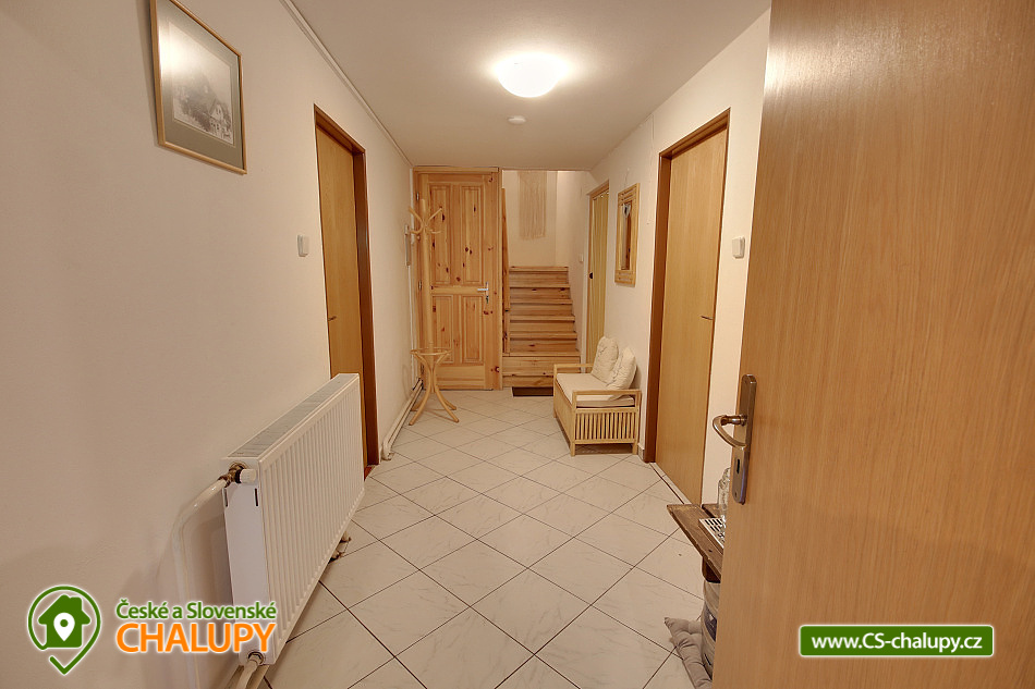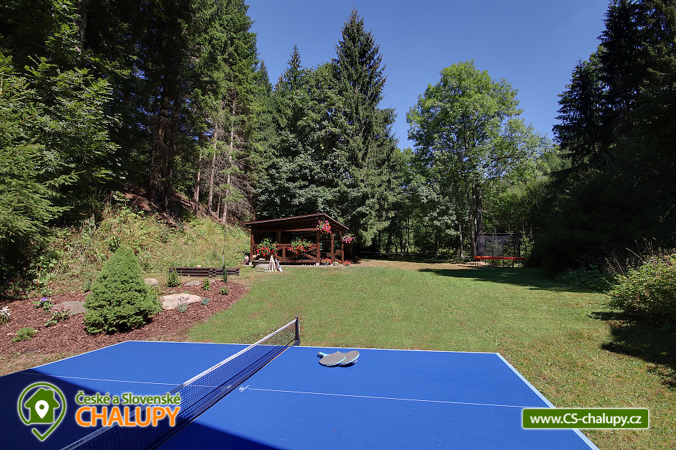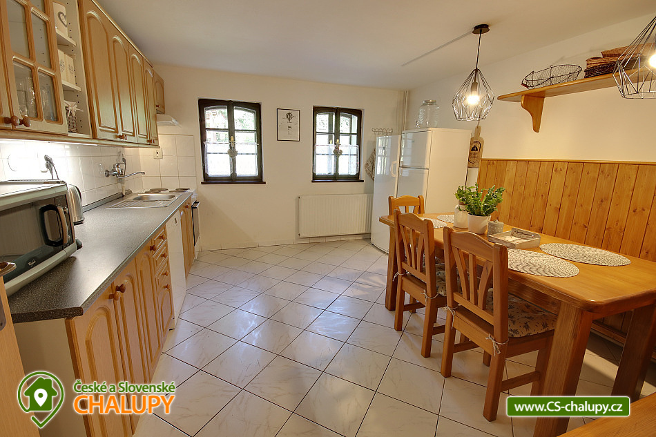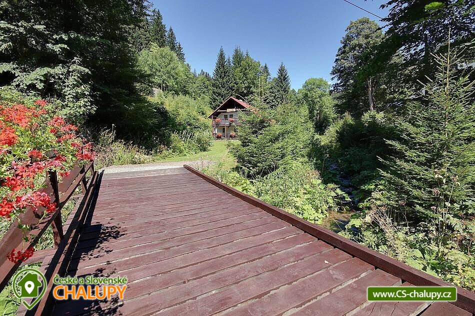 Chalupa se saunou u říčky Bělá nedaleko areálu Šerlišský Mlýn a vrchu Velká Deštná v Orlických horách. Chalupa leží v krásné krajině a díky tomu je ideálním místem pro trávení letní i zimní dovolené. Celková ubytovací kapacita je až 20 lůžek v 6 ložnicích. V chalupě naleznete 2 dvoulůžkové a 2 třílůžkové pokoje s vlastním sociálním zařízením a koupelnou se sprchou. V nabídce jsou také 2 podkrovní pokoje pro 4 + 6 osoby s příslušným počtem matrací, kde se zalíbí především dětem. Tyto pokoje mají společné sociální zařízení a koupelnu se sprchou. K dispozici je kompletně vybavená kuchyňka - zařízena sporákem, troubou, mikrovlnnou troubou, rychlovarnou konvicí, kávovarem, toustovačem, lednicí, myčkou nádobí, nádobím a jídelním koutem. Po předchozí domluvě vám rádi zajistíme sud piva s pípou. Nechybí ani společenská místnost s krbem, televizorem, stolním fotbálkem a posezením. Samozřejmostí je bezdrátové připojení k internetu. V přízemí chalupy je k dispozici sauna, ze které můžete skočit rovnou do sněhu nebo potůčku - pro poseroutky je hned vedle sprcha. V letních měsících oceníte terasu s grilem a venkovním posezením. Pro děti je k dispozici zahrada, potůček, dětské hřiště, trampolína nebo například chození po laně. O zábavu bude postaráno! Za menší příplatek vás zde rádi uvítáme i s domácím mazlíčkem. Svá vozidla můžete zaparkovat v těsné blízkosti chalupy. Okolí - Milovníci sportu ocení turistické trasy a cyklostezky vedoucí na Masarykovu chatu, Velkou Deštnou či do Luisina údolí. V zimních měsících je vám k dispozici oblíbené lyžařské středisko Ski areál Deštné. V blízkosti je také menší sjezdovka Šerlišský Mlýn, kde se zalíbí dětem a začátečníkům. Nadšenci do historie mohou navštívit historická města Náchod nebo Nové Město nad Metují. V blízkosti chalupy naleznete restauraci, obchod s potravinami i autobusovou zastávku. Možnosti koupání: bazén Deštné v Orlických horách, koupaliště Dobré, koupaliště Bystré, koupaliště Hroška, koupaliště Dobruška, koupaliště Rychnov nad Kněžnou, bazén Rychnov nad Kněžnou, koupaliště Rokytnice v Orlických horách a bazén Nové Město nad Metují. Blízká lyžařská střediska: Deštné v Orlických horách, Deštné - Na Špičáku, pod Masarykovou chatou, Šerlišský mlýn, Start - Deštné v Orlických horách, Zieleniec a Orlické Záhoří - Bedřichovka.