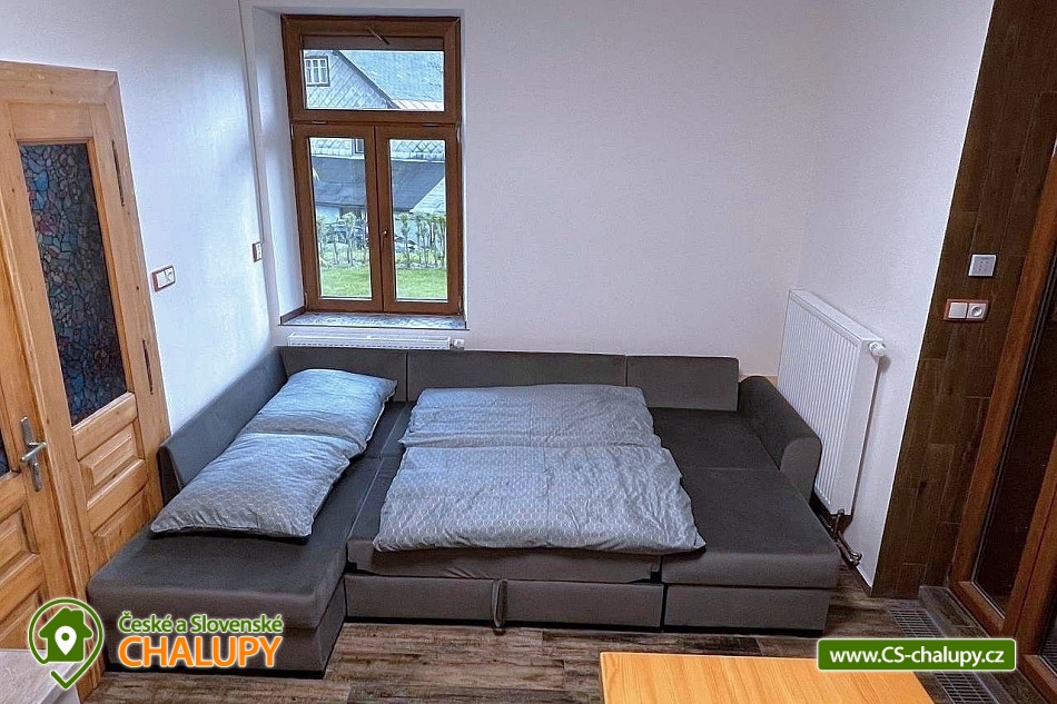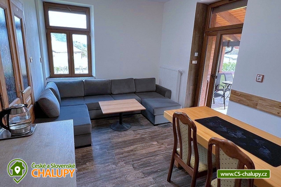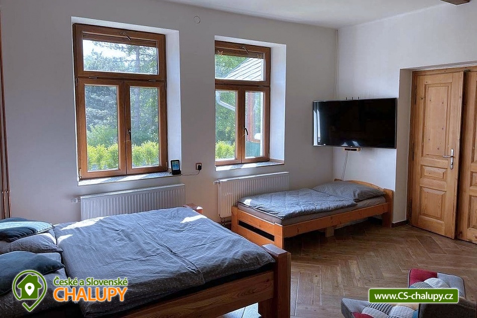 Chalupa se zahradou v Orlických horách nedaleko aquaparku Žamberk a přehrady Pastviny. Chalupa poskytuje ubytování pro až 11 osob ve 2 apartmánech. Apartmán s 1 ložnicí pro 3 osoby a Apartmán se 2-ma ložnicemi pro 8 osob. Objekt má dva vchody a to jeden z čela domu od vjezdu a druhý ze zahrady. Na zahradě je grilovací - opékací prostor a velká trampolína. Součástí zadní části domu, směrem do zahrady, je dřevěná terasa a na ni navazuje druhá dlážděná terasa se slunečníky. POPIS chalupy: APARTMÁN 1 pro 3 osoby. Obývací místnost: 1 x dvoulůžko 160 x 200 cm, 1 x jednolůžko 90 x 200 cm, 1 x skříň, 2 x křesílko, 1 x konferenční stolek. Kuchyň: Plně vybavená kuchyňská linka, 1 x jídelní stůl, 4 x židle. APARTMÁN 2 pro 8 osob: 2 x dvoulůžko 160 x 200 cm, 1 x palanda 90 x 200 cm, 1 x skříň, 2 x křesílko, 1 x konferenční stolek. Kuchyň: 1 x sedačka do U rozkládací - dvě přistýlky 140 x 200 cm, 1 x konferenční stolek, Plně vybavená kuchyňská linka, 1 x jídelní stůl, 1 x rohová lavice, 3 x židle. V obou apartmánech jsou TV, wifi, v kuchyních mikrovlnné trouby, plynové varné desky, kávovary na kapsle "Tchibo", varné konvice a ke každému apartmánu lednice. V koupelně je k dispozici pračka. Sociální zařízení: Velká koupelna se dvěma umyvadly, velký sprchový kout (dvě sprchy) a WC. Druhé WC má samostatný vchod mimo koupelnu. Vytápění: Celý objekt je vytápěn tepelným čerpadlem a v každém apartmánu jsou krbová kamna. U chalupy je jedno parkovací místo ve vjezdu, ostatní parkování je možné v okolí objektu, nebo na nedalekém městském parkovišti (bez poplatku). LÉTO: Koupaliště: městské přírodní koupaliště Rokytnice v Orlických horách, aquapark Žamberk, koupaliště Písečná, přehrada Pastviny, koupaliště Letohrad, koupaliště Choceň, koupaliště Polom, koupaliště Kostelec nad Orlicí, koupaliště Rychnov nad Kněžnou, koupaliště Zdelov, koupaliště Jablonné nad Orlicí a koupaliště Vamberk. ZIMA: Blízká lyžařská střediska: Rokytnice v Orl. horách - Farák, Nella - Bartošovice, Říčky v Orl. h., Orlické Záhoří - Černá Voda, Ski centrum Zdobnice, SKI KLUB Kostelec - Zdobnice a České Petrovice. Těšíme se na Vás u nás.
