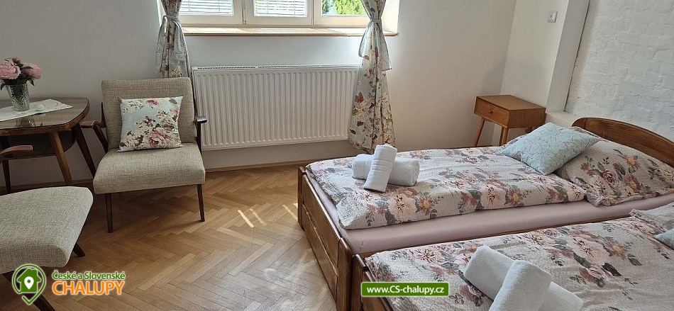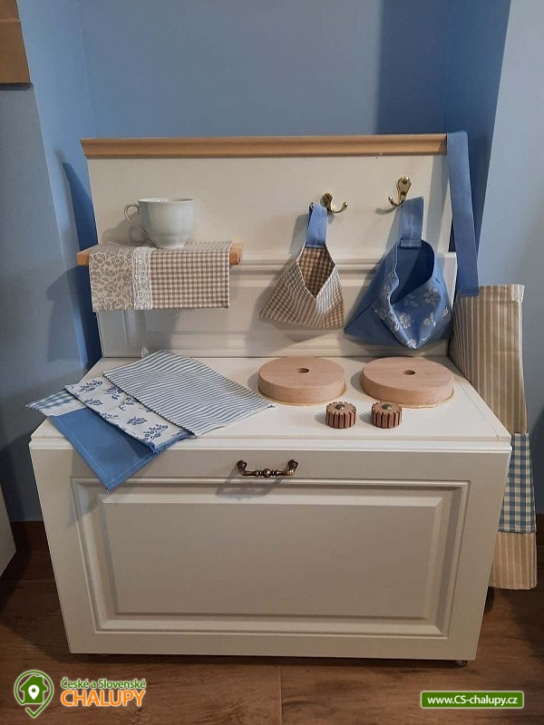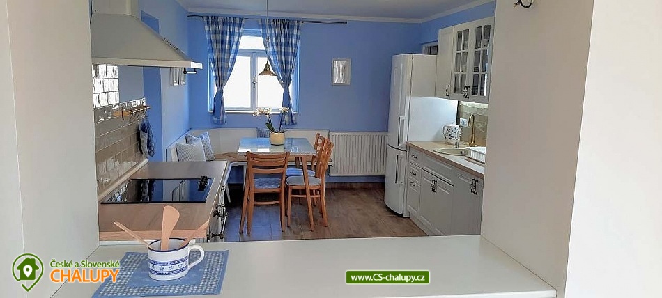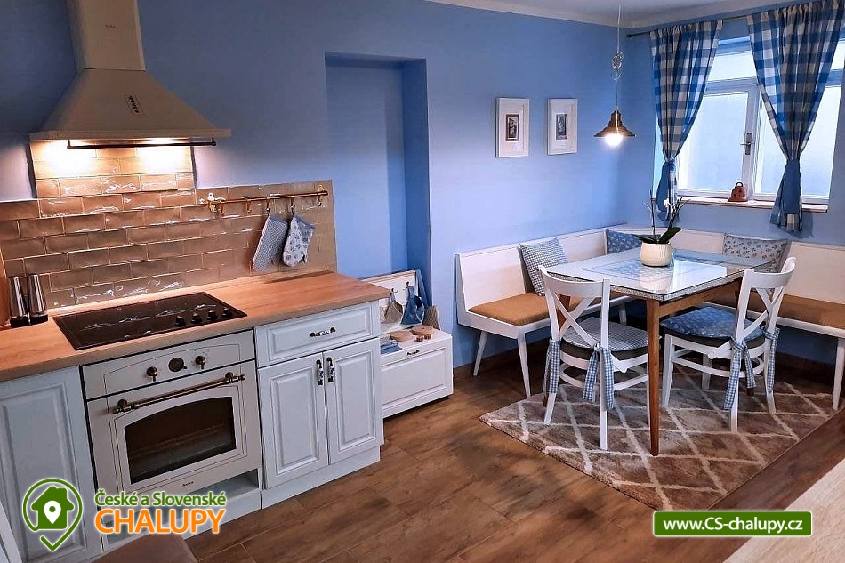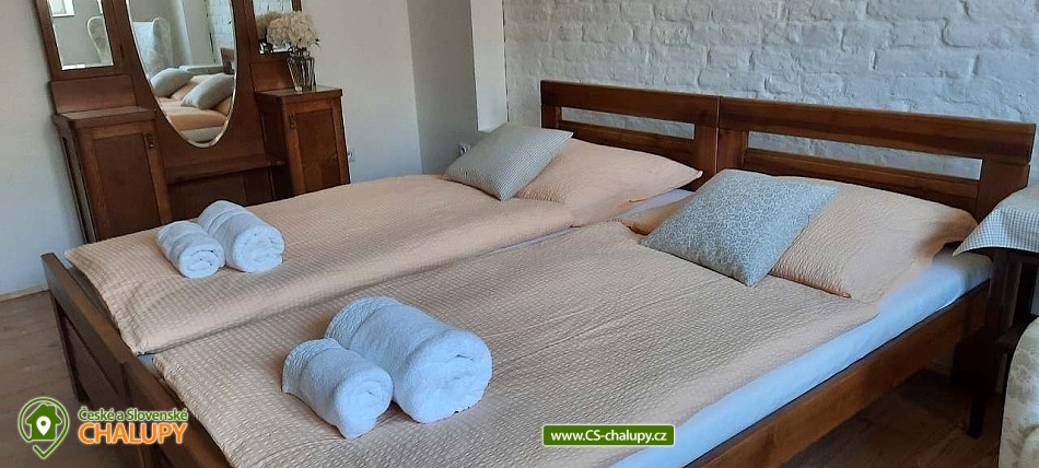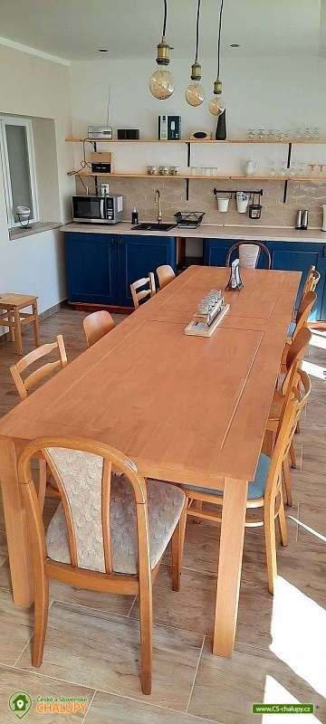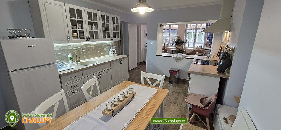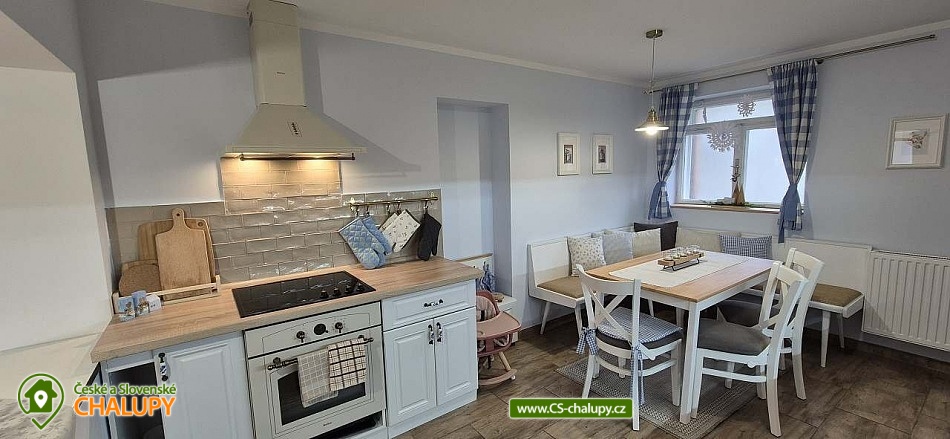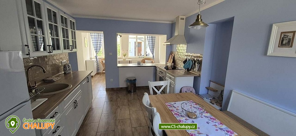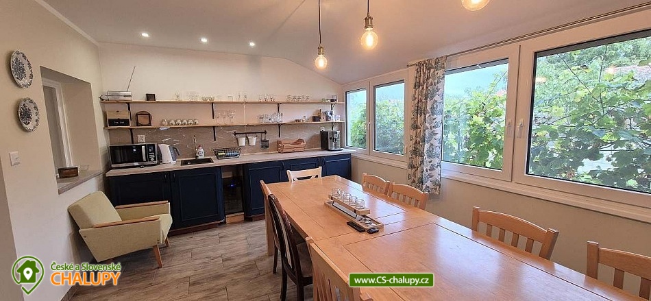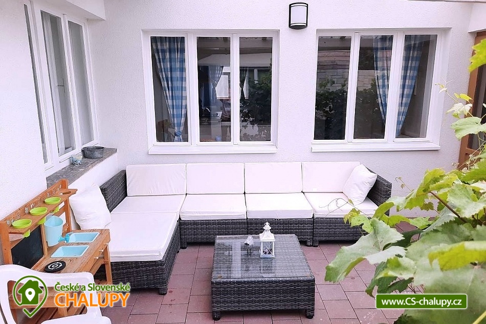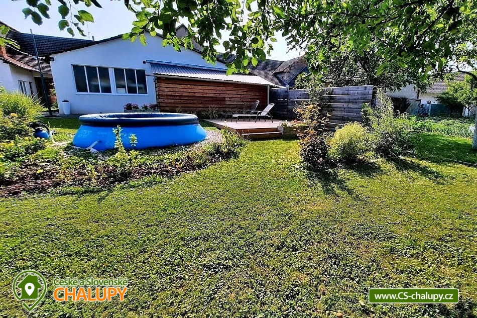 Chalupa Slovácko nedaleko hradu Buchlov - ubytování s bazénem, zahradním posezením, plynovým grilem. Kapacita chalupy je až 9 osob ve 4 ložnicích. Oblast Slovácka Vám skýtá nepřeberné možnosti vyžití, ať už jste milovníky dobrého vína, folkloru, památek, cyklistiky, sportu či přírodních krás. V chalupě jsou Vám k dispozici tři dvoulůžkové pokoje, jeden třílůžkový pokoj, esteticky a vkusně zařízené, plně vybavená kuchyně v rustikálním stylu, společenská místnost s posezením a velkou led TV, obývák, dvě koupelny, krytá terasa s posezením, gril, parkování ve dvoře a oplocená zahrada. Plně vybavená kuchyňská linka se sklokeramickou varnou deskou, horkovzdušnou troubou a digestoří, rychlovarnou konvicí, jídelním stolem s rohovou lavicí a židlemi. Sociální zařízení - 2 koupelny s prostorným sprchovým koutem a WC. Jedna koupelna je zařízena spíše v pánském stylu, druhá v romantických vanilkových tónech. K dispozici Vám je tekuté mýdlo na ruce, ručníky, osušky, odkládací plochy a toaletní papír. Vytápění celého domu je zajištěno tepelným čerpadlem. Ve společenské místnosti Vám k teplotní pohodě přispějí krbová kamna značky Jotul. Na kryté terase můžete využít posezení a zároveň si ugrilovat lahůdky na grilu na dřevěné uhlí, dále ohniště, pískoviště, bazén, terasa s lehátky, zahradní houpačka, pingpongový stůl, garáž pro dvě auta, další parkování ve dvoře. V obci je třeba dodržovat noční klid. Okolí - doporučujeme navštívit hrad Buchlov, zámek Buchlovice, zámek Napajedla, Uherský Ostroh, poutní místo Velehrad, Provodov, archeoskanzen Modrá. Baťův kanál splujete na lodi nebo se kolem něj projedete na kole. Milovníci vína můžou navštívit nejeden vinný sklípek či přímo Vinohradskou ulici v Mařaticích plnou vinných sklepů i s pohoštěním. Ke koupání a vodním radovánkám můžete využít buď přírodní koupání Štěrk v Topolné, na kole jste tam za 15 minut. Tyto vodní plochy můžou využít i rybáři, ti můžou chytat ryby i na řece Moravě. V Uherském Hradišti je aquapark, dále letní koupaliště ve Starém Městě, Kunovicích, Luhačovicích, Zlíně. Těšíme se na Vás u nás.