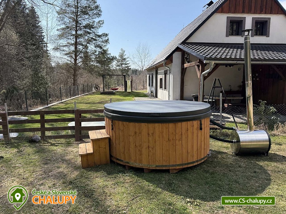 „Chalupa se saunou a koupacím sudem - ubytování na Šumavě u lesa.“
