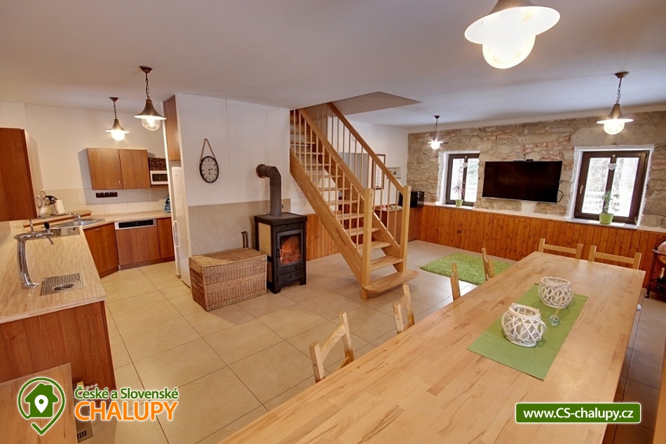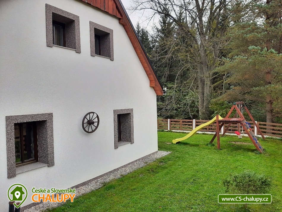 Chalupa se saunou a koupacím sudem v srdci národního parku Šumava na polosamotě u lesa je ideální jak pro dospělé (výčepní zařízení, gril, terase, klid) tak i pro Vaše děti (dětský koutek, pískoviště, vůbec žádný provoz). Chalupa k pronájmu v obci Chlum poskytuje ubytování pro až 18 osob v celkem 4 ložnicích. V kuchyni je myčka, rychlovarná konvice, mikrovlnná trouba, sporák + sklokeramická deska, televize 109 cm, vysavač a dětská postýlka. V objektu 2x samostatné sociální zařízení (2x sprchový kout, 3x Wc, 2x umyvadlo, 1x pračka), centrální vytápění, elektrický kotel a krb s výměníkem. U chalupy je dřevěná pergola u které stojí gril pro Vaše dobroty samozřejmostí je také ohniště a nedotčená příroda kterou si naplno užijete, protože nejbližší sousedé jsou 500 m od nás. Součástí chalupy je také stylová Stodůlka kde je k dispozici zahradní nábytek či síta pro sušení hub, stodola slouží také pro Vaše využití například úschovna kol, lyží atp. Parkování je možné přímo u objektu neomezeně. Po domluvě zajistíme snídani či polopenzi. Restaurace v dosahu cca 3 km (Volary) nebo doporučujeme objednat pizzu z Volaru. Nejznámější turistické cíle: prales Boubín s rozhlednou, Libínské Sedlo s rozhlednou a lanovou dráhou, Plešné jezero, Schwarzenberský kanál s plavením dřeva, Třístoličník, Lipenské jezero, cesta pro cyklisty nebo bruslaře kolem Vltavy (Nové Údolí - Nová Pec). Známá města: Prachatice, Český Krumlov, Strakonice, Hluboká, České Budějovice, Passau (Německo). V letním období je možné objednat tenisový kurt, k dispozici je také místní bazén a sauna. Lze navštívit dětské hřiště, městské muzeum, volarské menhiry, křížovou cestu, staré město s typickými volarskými domy. Nedaleko se nachází také nádraží s výjezdem vlaků ve směrech na Prachatice, Strakonice, Český Krumlov a Nové Údolí (přechod do Bavorska). Samozřejmostí jsou značené turistické okruhy kolem města. V zimním období jsou perfektní podmínky pro lyžování v německém Mitterdorfu (15 minut od domu, cenově velmi výhodné rodinné jízdné) vhodné i pro nejmenší lyžaře, nejbližším střediskem jsou pak České Žleby (10 minut). Po lyžování můžete navštívit blízké termální lázně ve Waldkirchen (mimo jiné zde naleznete i slaný 35 stupňový termální bazén), nebo městský bazén ve Volarech.