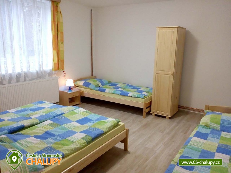 Chalupa u hradu Trosky - Český ráj. Chalupa nedaleko Hrubé Skály nabízí ubytování pro až 15 osob ve 4 ložnicích. Uvnitř chalupy jsou celkem čtyři pokoje, objekt se vždy pronajímá jako celek 1 skupině klientů. V přízemí se nachází vybavená kuchyň se společenskou místností, lednice s mrazákem, televize, indukční varná deska s el. troubou, mikrovlnná trouba, rychlovarná konvice a krbová kamna. V přízemí dále čtyřlůžkový pokoj (ložnice s dvoulůžkem a 2x samostatná postel) s vlastním sociálním zařízením (sprchový kout, WC a umyvadlo), samostatný čtyřlůžkový pokoj s palandami, samostatné WC a sociální zařízení (sprchový kout, WC a umyvadlo). V patře chalupy se nachází 1x třílůžkový pokoj v kterém jsou 3 samostatné postele. Dalším podkrovním pokojem je čtyřlůžkový, ve kterém jsou 2 samostatné postele a jedno dvoulůžko (manželská postel - možno rozdělit na dvě samostatná lůžka). Dále je na patře koupelna se sprchovým koutem, umyvadlem a WC. Všechny postele jsou vybaveny zdravotní pěnovou matrací a lůžkovinami. Vytápění: Radiátory (elektro kotel), krbová kamna ve společenské místnosti. Parkování je na oploceném pozemku u domu. U chalupy je oplocená zahrada, dětský koutek s pískovištěm, houpačka a trampolína pro děti. K zpříjemnění pobytu poslouží i prostorná zastřešená terasa se zahradním nábytkem. U chalupy je i uzamykatelný zahradní domek, kde si můžete uložit vaše kola, kočárky nebo lyže. Majitelé zde nebydlí. Chalupa je dostatečně prostorná a proto se hodí i pro větší skupiny hostů. Díky výhodné poloze chalupy máte možnost si za skvosty Českého ráje dojít pěšky, aniž byste museli použit auto. Ideální místo, odkud se dají podnikat výlety do blízkého i vzdáleného okolí na hrady, zámky a do skalních měst. Možnosti koupání: Jinolické rybníky, rybník Věžák, koupaliště Jičín - Kníže, Turnov, Lomnice nad Popelkou, Sedmihorky Aqua Centrum Jičín, Babylon Liberec. Mezi klenoty našeho okolí patří: Zřícenina hradu Trosky, zřícenina hradu Frýdštejn, hrad Valdštejn, hrad Kost, hrad Valečov, zámek Hrubá Skála, zámek Humprecht, zámek Rohozec, zámek Sychrov, zámek Dětenice, Prachovské skály, Obrácené zvony Rovensko, Drábské světničky, ZOO Liberec a Dvůr Králové nad Labem. Tato oblast Českého ráje je ideální místo jak pro rodiny s dětmi, tak pro skupiny přátel, milovníky turistiky, cykloturistiky, houbaření, horolezectví.