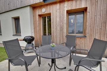 Chalupa v CHKO Jizerské hory - Vyhlídková cesta u obce Kořenov a Příchovice na místě, kde stála původní stará chalupa z filmu Obsluhoval jsem anglického krále. Jedná se o zděnou novostavbu v nadmořské výšce cca 700 m na krásném klidném místě. Uvnitř chalupy jsou dva nadstandardně vybavené apartmány, jeden o kapacitě 4 + 1 osoby a druhý o kapacitě 8+1 osob. V menším apartmánu č.1 je obývák s krbovými kamny, výstupem na terasu a plně vybavenou kuchyní (myčka, elektrická trouba, mikrovlnná trouba, varná deska, rychlovarná konvice, lednice s mrazákem, kávovar, topinkovač...), koupelna se sprchovým koutem a samostatná toaleta. V patře dva prostorné dvoulůžkové pokoje, šatna a toaleta. Ve větším apartmánu č.2 je v přízemí prostorný obývací pokoj s krbem, jídelním koutem a opět plně vybavenou kuchyní , koupelna, samostatná toaleta, šatna a jeden dvoulůžkový pokoj. Z obývacího pokoje jsou přístupné dvě terasy s možností grilování /mimo zimní období/. V patře se nachází čtyřlůžkový pokoj a dvoulůžkový, s možností kvalitní přistýlky a koupelna s toaletou. Každý apartmán má svůj vlastní vchod a jsou plně oddělený. V případě pronájmu celé chalupy lze apartmány propojit jinak uzamčenými dvojitými dveřmi. Je zde příjemné venkovní posezení na terase s možností grilování (mimo zimní období). Ohniště pro milovníky opékání špekáčků se nachází na zahradě. V letních měsících je možnost přespat v Téépéé, které má dřevěnou podlážku. V celém objektu využijete Wifi připojení (omezené) , televize je vždy v obývacích pokojích. Objekt lze vytápět elektrickými přímotopy nebo krbovými kamny. U domu je parkovací stání pro několik aut. Pro bezpečné uložení kol, lyží, kočárků atd. je uzamykatelná místnost. Kolem chalupy je prostorný udržovaný trávník a okrasné jezírko se skalkou. Chalupa se nachází na polosamotě u lesa, kde si odpočinete od ruchu města pod korunami stromů, za zpěvu ptáků, šumění vody u jezírka a lze pozorovat hvězdnou oblohu nezkreslenou světly měst. Okolí Vám dává možnost výběru různých sportovních aktivit, ať už se jedná o turistiku, jízdu na kole (jsou zde i bikeparky), běžecké lyžování (blízký nástup na Jizerskou magistrálu) a sjezdové lyžování za "rohem" (Příchovice U Čápa, Tanvaldský Špičák, Harrachov). Pokud milujete klid, přírodu, pohodu u jezírka, turistiku, kolo, běžecké lyžování a sjezdovky, jste na správném místě!!!! Těšíme se na Vás u nás.