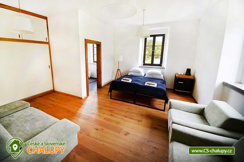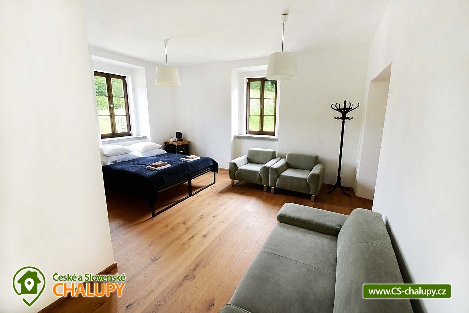 Útulná chalupa se nachází na okraji Rejštejna, kde už začíná šumavská příroda. Je to klidné zázemí pro rodiny, přátele i všechny, kdo si chtějí odpočinout od ruchu města. Okolí nabízí spoustu možností k výletům na kole i pěšky a díky poloze u hranice Národního parku Šumava máte krásné trasy doslova na dosah. Chalupa poskytuje ubytování až pro 24 osob v 6 pokojích. V prvním patře se nachází šestilůžkový Apartmán deluxe s 3 ložnicemi (2x manželská postel + přistýlka formou rozkládací pohovky pro dvě osoby). Apartmán má vlastní plně vybavenou kuchyň (trouba, mikrovlnná trouba, indukce, kávovar, mixer, lednice, myčka, rychlovarná konvice a nádobí) s jídelním posezením a obývací pokoj. Dále je na prvním patře dvoulůžkový pokoj deluxe s jednou ložnicí (1x manželská postel). V druhém patře je 2x dvoulůžkový pokoj s jednou ložnicí (1x manželská postel). V podkroví najdete rodinný pokoj menší s jednou ložnicí (2x manželská postel) a rodinný pokoj větší s 1 ložnicí (2x manželská postel + přistýlka formou rozkládací pohovky pro čtyři osoby). Každý pokoj je navíc vybavený malou ledničkou, rychlovarnou konvicí a pohovkou. V přízemí je k dispozici společná plně vybavená kuchyň (trouba, mikrovlnná trouba, indukce, kávovar, mixer, lednice a nádobí) s jídelním posezením a společný obývací pokoj s knihovnou, TV, společenskými hry, dětským koutkem, kytarou a rádiem. Každý pokoj je vybaven vlastním sociálním zařízením zahrnujícím koupelnu se sprchovým koutem, toaletou, umyvadlem a fénem. Dále 2x společná toaleta v přízemí. Vytápění objektu je řešeno pomocí tepelného čerpadla, podlahového topení a topných žebříků v koupelně. V objektu možnost zdarma WI-FI připojení na internet. Chalupu obklopuje zahrada s možností parkování přímo u objektu. Součástí zahrady je venkovní posezení a ohniště. K dispozici je také úschovna kol a běžek. V okolí objektu možnost turistiky, cykloturistiky, koupání, lyžování, běžkování, rybaření či houbaření. Mezi možnosti koupání patří např.: koupaliště Hartmanice, koupaliště Sušice, bazén Sušice nebo Úbislavický rybník. V zimě jsou výhodou blízká lyžařská střediska např.: skiareál Kašperské Hory, skiareál Hartmanice, skiareál Javorník a skiareál Zadov. K výletům v okolí láká: hrad Kašperk, cesta zlatokopů, mravenčí stezka, povydří, Horská Kvilda nebo Schwarzenberský plavební kanál. Těšíme se na Vás u nás.