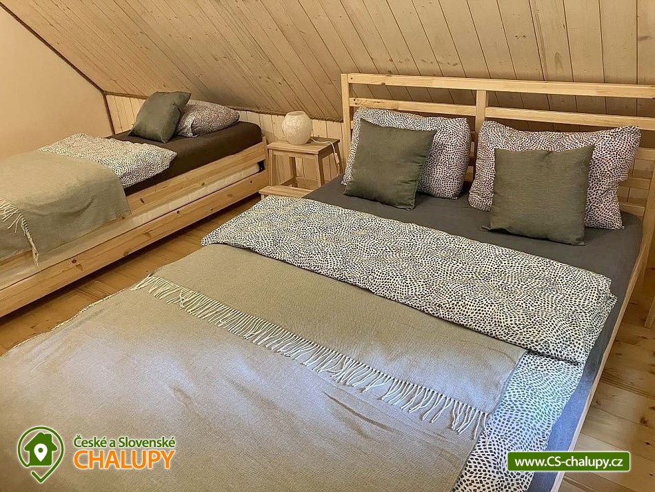 Chalupa nabízí krásné ubytování v blízkosti lesa a v srdci Lužických hor, kde se můžete věnovat turistice, cykloturistice, lyžování, běžkování a houbaření. Nabízí ubytování pro 15 osob ve třech ložnicích (2x čtyřlůžková ložnice, 1x pětilůžková ložnice a rozkládací pohovka v obývací části). Pro váš maximální komfort ale doporučujeme ubytování maximálně 12 dospělých osob. V přízemí se nachází ložnice až pro 5 osob. Postel 160 cm široká a 2 jednolůžka, z toho jedno je stohovatelné a dá se z něj vytvořit letiště nebo 2 oddělené postele. V patře jsou 2 ložnice, každá až pro 4 osoby. V každé je postel 140 cm široká, kde se vyspí 2 osoby a jedna stohovatelná postel, ze které se dá vytvořit letiště či 2 oddělené postele. Jedna ložnice je menší a postel je možné rozložit pouze na 2 oddělená lůžka. Letiště se nevejde. Ve společenské místnosti v patře je velmi pohodlný rozkládací gauč pro 1 - 2 osoby. Prosíme vás, abyste nám před příjezdem dali vědět, jak si budete přát spát. My postele rozložíme přesně podle vašich přání a vše připravíme pro vaše maximální pohodlí. Prosím, abyste nám s vybavením pokojů pak už nehýbali. Dále chalupa disponuje nadstandardně vybavenou kuchyní s lednicí, indukční varnou deskou, el. troubou, myčkou, pračkou, mikrovlnou troubou a kávovarem zn. Delongi. Kávovar má vestavný mlýnek na kávu a napařovač na mléko pro přípravu cappuccina a Latte. 200g italské kávy Moncafe je zahrnuto v ceně. Svou ranní kávu si u nás opravdu užijete. Kuchyň navazuje na jídelnu s kachlovými kamny na dřevo. Tato místnost slouží pro hostiny s přáteli či rodinou, hraní deskových her či pořádání různých oslav. Za poplatek je možné zapůjčit výčepní zařízení s chlazením. Po domluvě je možné zajistit i pivo z místních pivovarů. V přízemí se nachází velká koupelna se sprchovým koutem a WC. V patře je pak oddělené WC a sprchový kout. Teplá voda je řešena bojlerem. Vodu máme z obecního řádu, je pitná a velice chutná. Chalupa je vytápěna kachlovými kamny v obýváku. Kamna mají teplovodní výměník a zvládnou vytopit celou chalupu i s bojlerem a podlahovým topením v kuchyni a v koupelně. Chalupa se nachází hned vedle parkoviště, kam se vejde mnoho aut. Stání pro jedno auto je přímo na pozemku. K dispozici vám je dále pergola s grilem (do které se vstupuje přímo z kuchyně), ohniště s posezením, dětské hřiště, uzamykatelná kůlna na kola, kočárky, atd a sklep. Máme k zapůjčení různé hry (karty, kostky, puzzle, petanque, badminton a různé deskové hry), knížky, dětský nafukovací bazének, rozkládací postýlku, židličku, stupátko ke dřezu. K dispozici Wi-Fi připojení. V okolí: Adrenalin park Jedlová 2,5 km = OBŘÍ HOUPAČKA, PŮJČOVNA KOLOBĚŽEK, LANOVÝ PARK. Přímo v obci se nachází rozhledna Jedlová, zřícenina hradu Tolštejn, stříbrná štola, Křížová cesta a další. Při nepříznivém počasí jsou v blízkosti cca 10 km dva kryté bazény, popřípadě návštěva 25 km vzdálených termálních lázní Toscana Therme v Bad Schandau. V zimě můžete navštívit skiareály: Jedlová, Horní Podluží, vlek Mezičky nebo si zaběžkovat na tratích Jedlová. Jsme také kousek od NP České Švýcarsko (Pravčická brána, lodičky Hřensko a spousty zajímavých a turisticky atraktivních míst). Těšíme se na Vás u nás.