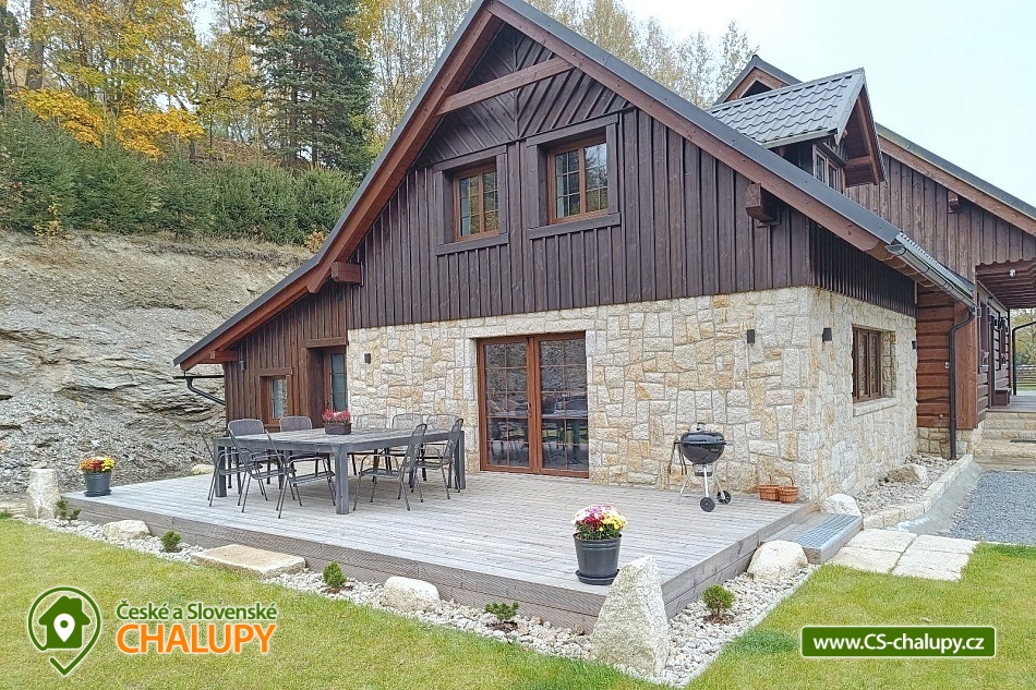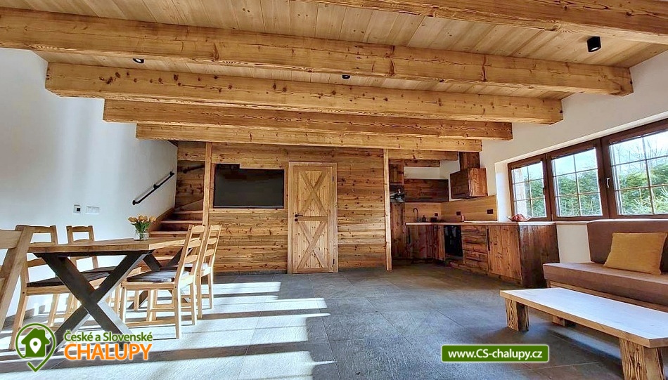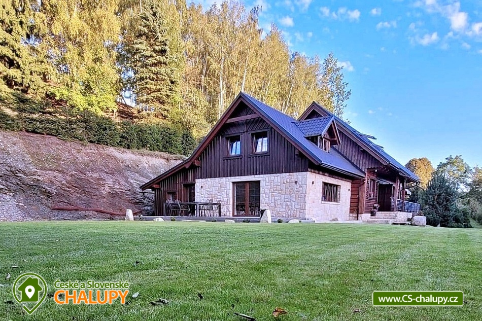 Chalupa u lesa s venkovním bazénem na pomezí Jizerských hor a Krkonoš se nachází nedaleko Jizerské magistrály. Součástí obce je bikepark, koupaliště, Ski areál a trasy pro běžky. Chalupa nabízí ubytování pro až 10 osob ve 3 ložnicích. K dispozici je jedna přízemní dvoulůžková ložnice (1x manželská postel) a dvě čtyřlůžkové ložnice v patře (2x manželská postel a 2x rozkládací postel pro 2 osoby). Ve všech ložnicích jsou připravené povlečené postele a ručníky. Interiéru chalupy dominuje kámen a dřevo s nádhernou strukturou, které vytváří příjemně hřejivou atmosféru. V přízemí lze společné chvíle trávit v prostorném obývacím pokoji se sedací soupravou, TV se SAT, jídelním koutem a plně vybavenou kuchyní (lednice s mrazákem, varná deska, trouba, mikrovlnná trouba, myčka na nádobí, rychlovarná konvice, nádobí, toustovač, topinkovač, mixér a kapslový kávovar - Nespresso, Caffissimo/Tchibo, Dolce Gusto a adaptér na mletou kávu). Sociální zařízení zahrnuje v přízemí dvě koupelny se sprchovým koutem a WC a jedno samostatně WC v patře. Vytápění je řešeno podlahovým topením, které je regulováno termostaty v každé místnosti. V celém objektu je k dispozici WIFI připojení na internet. Venku lze posedět na prostorné terase s grilem. Dále je v blízkosti terasy a lesa umístěné další kryté sezení a také ohniště. K dispozici je venkovní bazén. V letní sezóně lze na prostorné louce přímo před terasou využívat pingpongový stůl, branky na fotbal, síť na badminton nebo si zahrát fotbal a líný tenis a petangue. Parkovat lze přímo u objektu. V okolí objektu možnost turistiky, cykloturistiky, koupání, houbaření, rybaření, lyžování a běžkování. V blízkosti jsou tenisové kurty, jízdárna a golfové hřiště. Přímo u chalupy je bikepark, pumptrack pro děti a workoutové hřiště. Mezi možnosti koupání patří např.: Koupaliště Zlatá Olešnice, Koupaliště Jablonec nad Jizerou, Městské koupaliště Železný Brod, bazén Jilemnice, Aquapark Špindlerův Mlýn atd. V blízkém okolí jsou k dispozici lyžařské areály i dětské sjezdovky včetně nočního lyžování - Ski Areál Zlatá Olešnice, Ski areál Sklenařice, Ski areál Šachty - Vysoké nad Jizerou, Ski areál Paseky nad Jizerou a další. Jizerská magistrála pro běžkaře s nástupním místem vede nedaleko chalupy. K výletům v okolí láká Maják Járy Cimrmana Příchovice, Palackého stezka a údolí Kamenice, Bozkovské dolomitové jeskyně, Mumlavský vodopád Harrachov, Rozhledna Tanvaldský Špičák, Vlastivědné muzeum pro Vysoké nad Jizerou, Ozubnicová dráha Tanvald - Kořenov nebo Muzeum skla a bižuterie Jablonec nad Nisou. Těšíme se na Vás u nás.