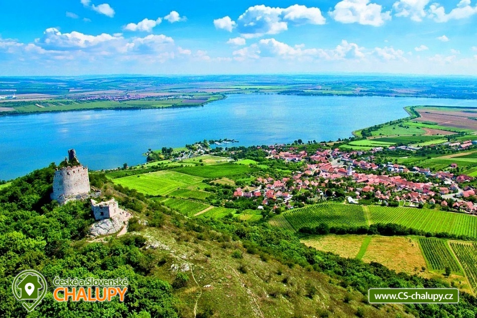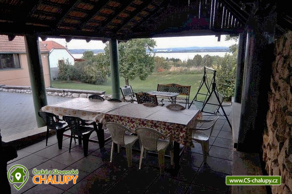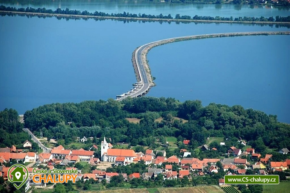 Chalupa u vodní nádrže Nové Mlýny v CHKO Pálava na okraji obce Pavlov, v okrese Břeclav, v Jihomoravském kraji. Chalupa stojí v těsné blízkosti vodní nádrže Nové Mlýny. Celoročně nabízíme ubytování pro až 15 osob v 5 ložnicích. Ubytování je určeno více rodinám s dětmi nebo skupince cyklistů či turistů. Hostům je k dispozici 5 ložnic, tři 2-lůžkové s manželskými postelemi a jeden 4-lůžkový rodinný pokoj se dvěma ložnicemi (jedna přechodná se dvěma samostatnými lůžky a druhá s manželskou postelí). Společenská místnost s krbem a výhledem na přehradu je vybavena velkým jídelním stolem se židlemi. Z této místnosti se schody přesunete do další 4-lůžkové ložnice se dvěma manželskými postelemi, která je však v otevřeném prostoru, který není uzavřen dveřmi. Pohodlně si uvaříte v kuchyni, která disponuje elektrickým sporákem s troubou, lednicí, mikrovlnnou troubou, rychlovarnou konvicí a jídelním stolem. Při kuchyni najdete verandu, kde je také umístěno posezení. Pro Vaše pohodlí se v domě nacházejí dvě koupelny se sprchovým koutem a toaletou. V celém objektu je pro Vás zajištěno bezplatné WiFi připojení na internet. Na dvoře se zahradou (400 m2) si posedíte na zastřešené terase s posezením, venkovním krbem a grilem, odsud máte výhled na vodu. Cyklisté ocení možnost bezpečně uložit kola v garáži. V uzamykatelném dvoře zaparkujete až 5 aut. Obec je známá svou vinařskou tradicí, během celého roku se zde konají tradiční události (Den otevřených sklepů, vinobraní, Velikonoční výstava vín). Tato oblast je oblíbená u motorkářů i cyklistů, kteří zde najdou množství cyklistických tras, některé z nich vedou do vinic, jiné k zajímavým historickým místům a další zase k sousedům do Rakouska. Při pobytu v této oblasti nevynechejte návštěvu Lednice a Valtic, kde si můžete prohlédnout nádherné zámky, parky, palmový skleník či minaret. Na přehradě Nové Mlýny zažijete zábavu při koupání a vodních sportech, doporučujeme například pláž v Pasohlávkách. V této obci naleznete i Aqualand Moravia, který je v provozu během celého roku. Těšíme se na Vás u nás.