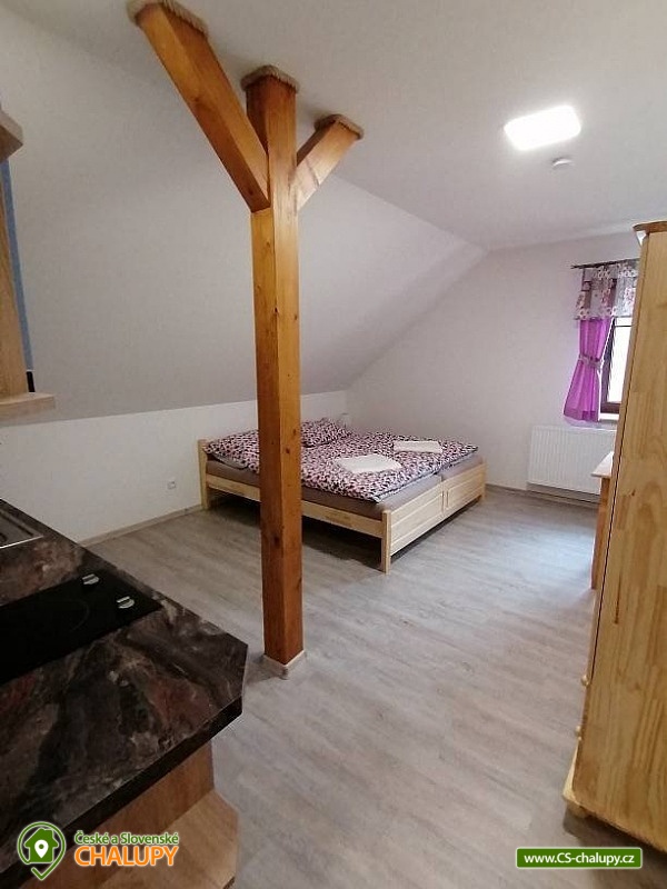 Chalupa u přehrady Rozkoš, poloha nedaleko CHKO Broumovsko, Babiččina údolí v Ratibořicích, zámku Náchod a skalního města Adršpach. Kapacita chalupa je až 14 osob ve 4 ložnicích. V přízemí se nachází 4-lůžkový apartmán (1x manželská postel, 2x přistýlka formou rozkládací pohovky), který je bezbariérový. V podkroví se nachází 4-lůžkový apartmán (1x manželská postel, 2x přistýlka formou rozkládací pohovky), 2-lůžkový apartmán (1x manželská postel) a 4-lůžkový apartmán (1x manželská postel, 2x přistýlka formou rozkládací pohovky) s terasou. V každém apartmánu se nachází plně vybavený kuchyňský kout (varná deska, rychlovarná konvice, mikrovlnná trouba, lednice, malý mrazák a nádobí), jídelní posezení a TV. Sociální zařízení zahrnuje v každém apartmánu koupelnu se sprchovým koutem, umyvadlem, sušákem na prádlo a toaletou. Dále se zde nachází velká společenská místnost s posezením, kuchyňkou, kávovarem a pípou. Vytápění chalupy je řešeno pomocí radiátorů. V objektu možnost zdarma WI-FI připojení na internet. Chalupu obklopuje zahrada a parkování je zajištěno na hlídaném parkovišti přímo u objektu (max. 4 auta). Součástí zahrady je gril na dřevěné uhlí a terasa s posezením. K dispozici je uzamykatelná úschovna pro kola. V okolí chalupy možnost turistiky, cykloturistiky, koupání, lyžování, běžkování, rybaření či houbaření. Mezi možnosti koupání patří např.: nádrž Rozkoš, koupaliště Náchod, koupaliště Dobruška nebo koupaliště Opočno. V zimě jsou výhodou blízká lyžařská střediska např.: lyžařské středisko Běloves a lyžařské středisko Žabokrky. K výletům v okolí láká: skalní město Adršpach, Teplické skály, Ostaš, Babiččino údolí v Ratibořicích, zámek Náchod, zámek Nové Město nad Metují, zámek Opočno, hospitál Kuks nebo ZOO Dvůr Králové nad Labem. Těšíme se na Vás u nás.