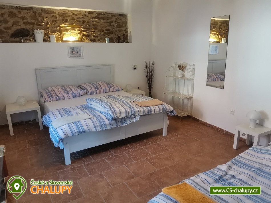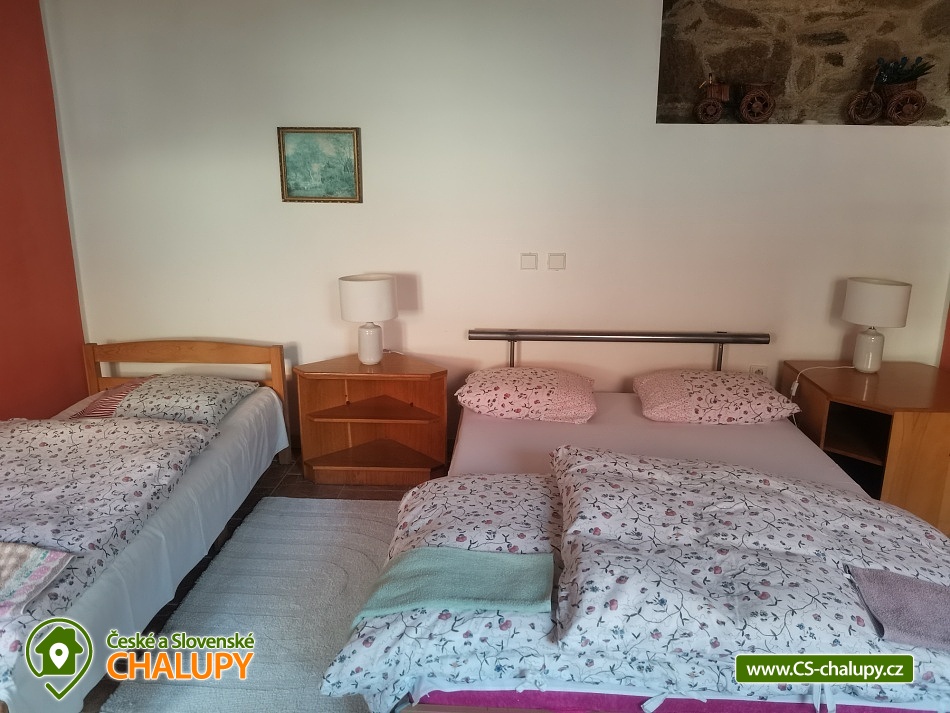 Rekreační chalupa na Vysočině u vodní nádrže Švihov na řece Želivka, poloha cca 75 km od Prahy, v obci Blažejovice, čisté, klidné a pohodové prostředí. Poloha chalupy je ideální pro cykloturistiku, rybaření, sběr hub a lesních plodů nebo prostě pro odpočinek. Před chalupou je rybník. Kapacita ubytování je až 17 lůžek a 2 přistýlky vhodné pro děti. Celkem 6 samostatných pokojů. V zadní části chalupy je v přízemí třílůžkový pokoj /manželská postel + válenda/, v podkrovním pokoji tři samostatná lůžka. K pokojům patří malá kuchyňka s příslušenstvím. V hlavním podkroví jsou dva pokoje - třílůžkový / manželská postel + válenda/ a dvoulůžkový /dvě samostatná lůžka/ s příslušenstvím. Naproti je samostatný domeček se dvěma třílůžkovými pokoji s příslušenstvím. Vždy manželská postel + válenda. V domečku jsou pokoje průchozí. Dále nabízíme letní kuchyni s krbem pro grilování a příjemným posezením. Tato místnost je propojena s venkovním posezením a nedá se vytopit. Vedle v herně je k dispozici kulečník a fotbálek. Na návsi je dětské hřiště a nedaleko za školou velké hřiště pro míčové hry. V obci je malá hospůdka, kde se však, bohužel, nevaří. Hotový oběd si můžete dát v Dolních Kralovicích vzdálených 3,5 km, kde je prodejna potravin a drogerie. Větší městečko s restauracemi je Humpolec (15 km) nebo Lokte (6 km). V Lokti jsou jen rychlá občerstvení. V okolí se nachází také přehrada Trnávka a vodní nádrž Sedlice. V blízkosti můžete navštívit památky jako jsou např.: klášter Želiv, zřícenina hradu Orlíku u Humpolce, hrad Lipnice nad Sázavou, zámek Růžkovy Lhotice, zámek Ledeč nad Sázavou, zámek Zruč nad Sázavou, Stvořidla u Ledče, zámek Světlá nad Sázavou. V okolí se nachází také přehrada Želivka-Švihov.