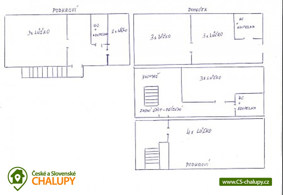 - 6 ložnic: 1x 4+1, 4x 3, 1x 2