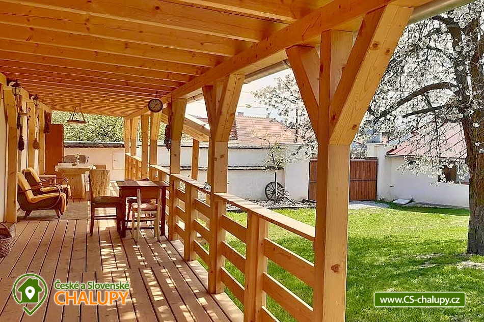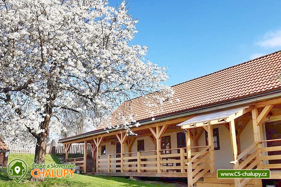 Chalupa u přehrady Vranov s koupacím sudem se nachází v obci Dešov na rozhraní kraje Vysočina a Jihomoravského kraje nedaleko Jemnice. Chalupa má velký uzavřený dvůr poskytující naprosté soukromí a obrovské zastřešené zápraží s posezením a závěsným houpacím křeslem. Těšit se můžete na krásné výlety v okolní přírodní krajině nebo na odpočinek v koupacím sudu. Chalupa nabízí ubytování pro až 15 osob v hlavní budově chalupy a ve vejminku. Součástí hlavní budovy je světnice sloužící jako společenská místnost s krbovými kamny, rozkládací sedací soupravou (2 přistýlky), TV, jídelním stolem a plně vybavenou kuchyní s kachlovými kamny, na kterých se dá vařit nebo i péct. Dále je v kuchyni k dispozici lednice, mrazák, myčka, plynový sporák, trouba, rychlovarná konvice a vše potřebné na vaření. V podkroví chalupy se nachází ložnice s prostorným čtyřlůžkem a jednou samostatnou postelí. Naproti přes dvůr je vejminek, kde jsou další dvě čtyřlůžkové ložnice. V každé ložnici je k dispozici jedna manželská postel a jedna patrová postel. K zapůjčení je dětská postýlka. V celém objektu je k dispozici WIFI připojení na internet. Sociální zařízení zahrnuje dvě koupelny se sprchovým koutem a WC, jedna je umístěná v hlavní budově chalupy a druhá na vejminku. K dispozici je pračka. Vytápění je řešeno u obou částí plynovým kotlem a krbovými kamny. K dispozici je klimatizace. Venku lze trávit volné chvíle na zastřešeném zápraží. Za chalupou je velká zahrada, která navazuje na rybník. K dispozici je gril a ohniště. Dále je součástí venkovních prostor zastřešený přístřešek s kulečníkem, šipkami a gaučem. Pro děti je připravená vlastní zastřešená hernička, k dispozici jsou hračky, pískoviště, venkovní kuchyňka a knížky. Dále se mohou těšit na dětské hřiště se skluzavkou umístěné na zahradě. Za příplatek lze zajistit vytopení a koupel v koupacím sudu (na teplotu 38 - 40°C), která je příjemná i za chladného počasí. Parkovat lze přímo u objektu. V okolí chalupy možnost turistiky, cykloturistiky, koupání, rybaření a houbaření. V blízkosti jsou tenisové kurty a cca 400 m od chaty je nové dětské hřiště. Mezi možnosti koupání patří např.: koupaliště Nimpšov, Bítovská zátoka, rybník Hrachovec, koupaliště Moravské Budějovice, Biotop Jemnice, Vranovská přehrada, přehrada Plichťák, rybník Vidlák, koupaliště Jaroměřice nad Rokytnou, rybník Dolní Modletický, atd. K výletům v okolí láká Státní zámek Vranov nad Dyjí, Hrad Bítov, Rozhledna Rumburak a Červená kaplička, Zřícenina hradu Cornštejn, Zámek Jaroměřice nad Rokytnou, Židovská čtvrť a hřbitov v Třebíči - UNESCO, Bazilika svatého Prokopa, Národní park Podyjí, Telč a další. Těšíme se na Vás u nás.