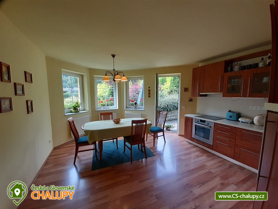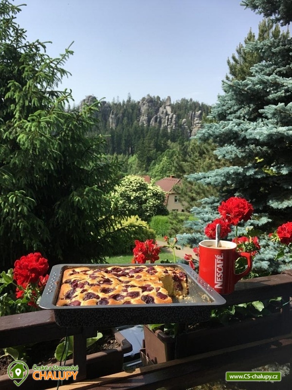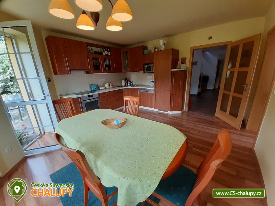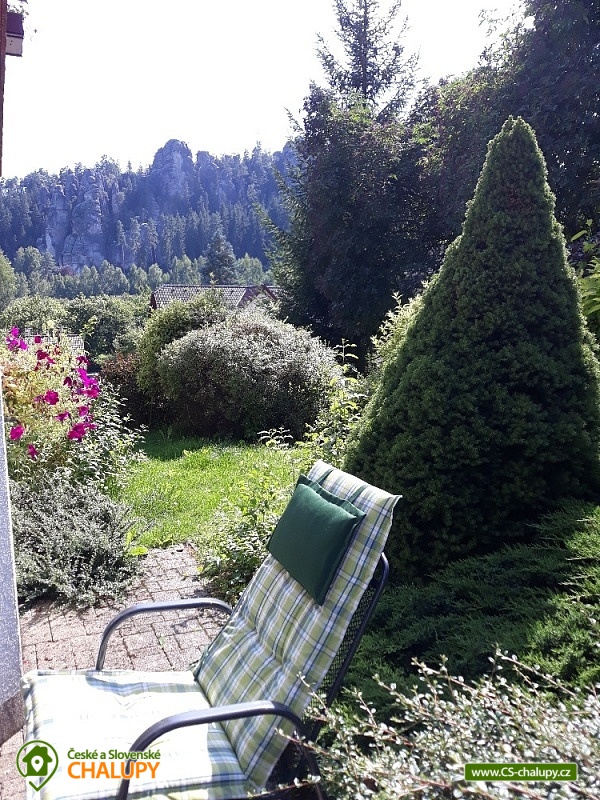 Chalupa u skalního města - CHKO Broumovsko. Chalupa má kapacitu až 15 osob v 6 ložnicích. Chalupa s vyhlídkou na Adršpašské skalní město je situována na jižním svahu proti skalnímu městu, asi 1 km od parkoviště Adršpach. Chalupa nabízí v 1. patře 3 samostatné pokoje (každý s WC a koupelnou) a 1 apartmán (2 pokoje s koupelnou a wc), dva pokoje jsou s balkonem a vyhlídkou na skalní město. V přízemí je 1 bezbariérový pokoj (koupelna, wc) a společenská místnost (sat/TV) s jídelnou pro 12 osob. K dispozici je kompletně vybavená kuchyň s ledničkou, myčkou, el. sporákem, mikrovl. a horkovzd. troubou, toustovač, atd., a jídelním koutem. Venkovní terasa s možností grilování. Dětské postýlky a hřiště s pískovištěm k dispozici. Topení elektrokotel. Vlak i autobus jsou v místě. Chalupa se nachází v chráněné krajinné oblasti, která láká k turistice, cykloturistice, horolezectví a odpočinku. K nejvyhledávanějším místům patří skalní města Adršpach, Teplice nad Metují, Ostaš, Broumovské stěny, polská skalní města a jejich okolí. Za návštěvu dále určitě stojí Broumov - benediktinský klášter, muzeum, skupina broumovských kostelů. Police nad Metují - muzeum, klášter, muzeum stavebnice Merkur, papírové muzeum. Broumovské stěny - Hvězda, Slavný. Jiráskovy skály. Kuks. Zámek Náchod, Nové Město nad Metují. Ratibořice - Babiččino údolí, Dobrošov - dělostřelecká pevnost, Zoo ve Dvoře Králové nad Labem, Trutnov, Krkonoše, Sněžka. V obci je hraniční přechod do Polska, kde lze navštívit další skalní města, zoo, zámek Ksiaz (jeden z největších polských zámků), aquapark, muzeum hornictví, podzemní komplexy ze 2.světové války, lázeňská města a tržnice. Těšíme se na Vás u nás.