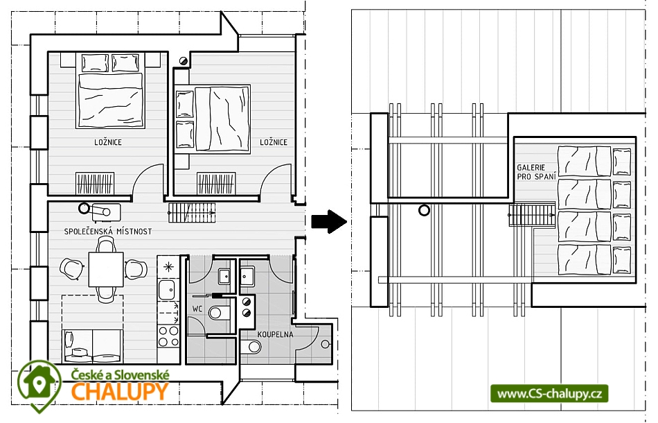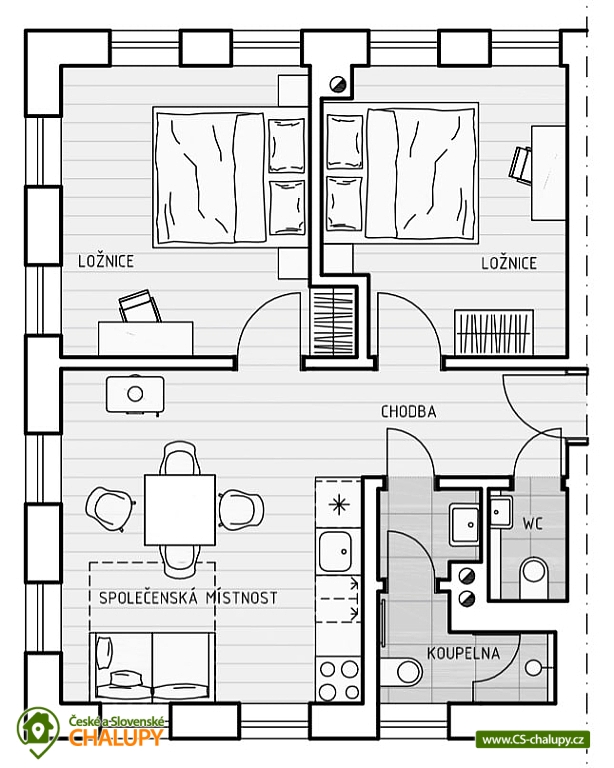 - 5 ložnic: 3x 2, 1x 2+2, 1x 2+1