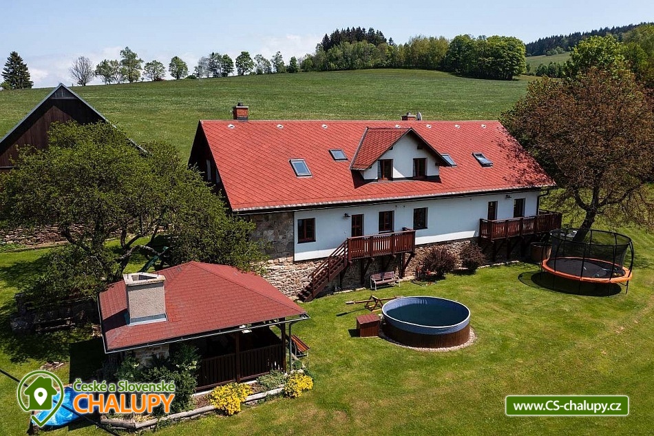 Chalupa s bazénem a trampolínou na samotě u lesa, poloha u vodní nádrže Pastviny a Přírodní rezervace Zemská brána, obec České Petrovice. Ubytování na klidném místě bez přítomnosti silnic a cest, tudíž zcela bezpečný pro Vaše děti. Pronajímáme v chalupě samostatný apartmán se samostatným vchodem, který poskytuje ubytování pro 11 osob ve 3 ložnicích. Pokoje: 3 ložnice - 4 lůžka, 3 lůžka, 3 lůžka + přistýlka, možnost dětské postýlky, hlídačky dechu, přebalovací pult, jídelní stolička, vanička, nočníky, zmenšovací prkénko na wc, flísové deky, záslepky na zásuvky, noční světla. Zábrana na schodech. Hračky v dětském koutku. K dispozici plně vybavená kuchyň, po domluvě lze pro Vás zajistit snídaně a večeře. V případě potřeby lze zapůjčit také tyčový mixér. V apartmánu možnost bezplatného připojení na wi-fi. Společenská místnost s TV a dětským koutkem. Sociální zařízení: Koupelna v patře - wc, umyvadlo, sprchový kout. Ručníky a toaletní papír k dispozici. Koupelna v přízemí - wc, umyvadlo, sprchový kout. Vytápění: ústřední. Venkovní terasa, posezení u ohně, pergola se zahradním grilem, krbem a udírnou, bazén s lehátky, venkovní sušák, vyžití pro děti - skluzavka, domeček, houpačky, pískoviště, trampolína. Parkování do krytého přístřešku až pro 3 vozy, v zimním období přímo u objektu na vyfrézovaném místě. Bus v obci - cca 10min chůze, vlak 5km - po domluvě lze vyzvednout na vlakové zastávce. I při rezervaci apartmánu třeba jen pro 2 osoby je obsazen celý apartmán (kvůli zachování soukromí). Pokud hledáte klid a pohodovou dovolenou, tady je to pravé místo. Do lesa je to pár kroků, bazén máte přímo u chalupy, Pastvinská přehrada 10 min jízdy autem, pěší vycházka kouzelným údolím do Pastvin podél potoka zabere 30 min. Pro děti je tu spousta vyžití, trampolína, houpačky, k zapůjčení odrážedla, pískoviště, louky okolo chalupy lákají k pouštění modelů letadel. Nedaleko jsou malé bunkříky, které lákají ke klučičím bitkám a najdete tu i opravený bunkr, který je přístupný po domluvě i pro veřejnost, potok pro stavění hrází. Výlety, atrakce, zábava - sport areál České Petrovice - vyžití v zimě, v létě řada adrenalinových sportů. Zima - DĚTSKÝ VLEK PŘÍMO U CHALUPY!!!! Ski areály - Čenkovice, Bartošovice, Dolní Morava, Červená Voda, Branná - běžkařské dráhy. Léto - koupání Pastviny, Žamberk koupaliště, Česká Třebová, zámky, hrady (Litice, Potštejn, Doudleby n. O., Opočno, Rychnov n. K, muzeum řemesel Letohrad, unikátní poutní kostel Neratov, přechody do Polska, cykloturistika, pěší turistika, ideální podmínky pro motorkáře, malebná krajina pro krajináře, houbaření, bunkry a opevnění na dohled Hanička, Bouda, možnost zapůjčení koloběžek, letní provoz sportovního areálu. Možnosti koupání: přehrada Pastviny, bazén Mezilesí a aquapark Žamberk.