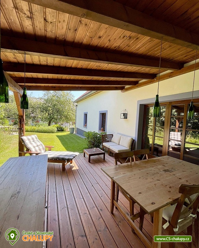 Chalupa na českém venkově - Stylové venkovské ubytování v klasické chalupě s vinným sklípkem a velkou přírodní zahradou. Chalupa k pronájmu poskytuje ubytování pro až 6 osob ve 2 ložnicích. Kapacita apartmánu s krytou terasou je daná prostorem a bohužel nelze navyšovat! Ložnice - 1 manželská postel. Pokojík - 2 oddělené postele v originální velikosti (délka lůžka 1,8 m) s možností umístění jedné dětské postýlky. Obývací pokoj - rozkládací sedací souprava (dvoulůžko - možná přistýlka pro 2 nocležníky), TV s připojením na internet, krbová kamna. Interiér apartmánu je stylově doplněn fotografiemi cestovatele F. Č. Vyšaty z jeho cest po jižní Americe. Kuchyně s jídelnou - kuchyňská linka (rychlovarná konvice, plynový sporák, elektrická trouba, myčka, lednička s mrazákem), jídelní stůl pro 4 osoby. Sociální zařízení: Koupelna se sprchovým koutem, WC, úklidová místnost s pračkou. Typickou venkovskou chalupu doplňuje ukázková přírodní zahrada s nabídkou sezónního ovoce a zeleniny, které je k dispozici i ubytovaným hostům, a taká malé mini hospodářství zaměřené na chov malých hospodářských zvířat - králíků, slepic, křepelek a koz. Společnost vám U Vyšaty bude dělat také maďarský ohař Max a kočka Myška s kocourem Márou. V chalupě U Vyšaty se můžete ubytovat po celý rok a obdivovat tak krásu pošumavských Chluman od jara, kdy tu kvetou ovocné sady a aleje, přes léto bohaté na nabídku zemědělských plodin, na podzim, kdy jsou okolní lesy plné hub a borůvek. Těšíme se na Vás u nás.