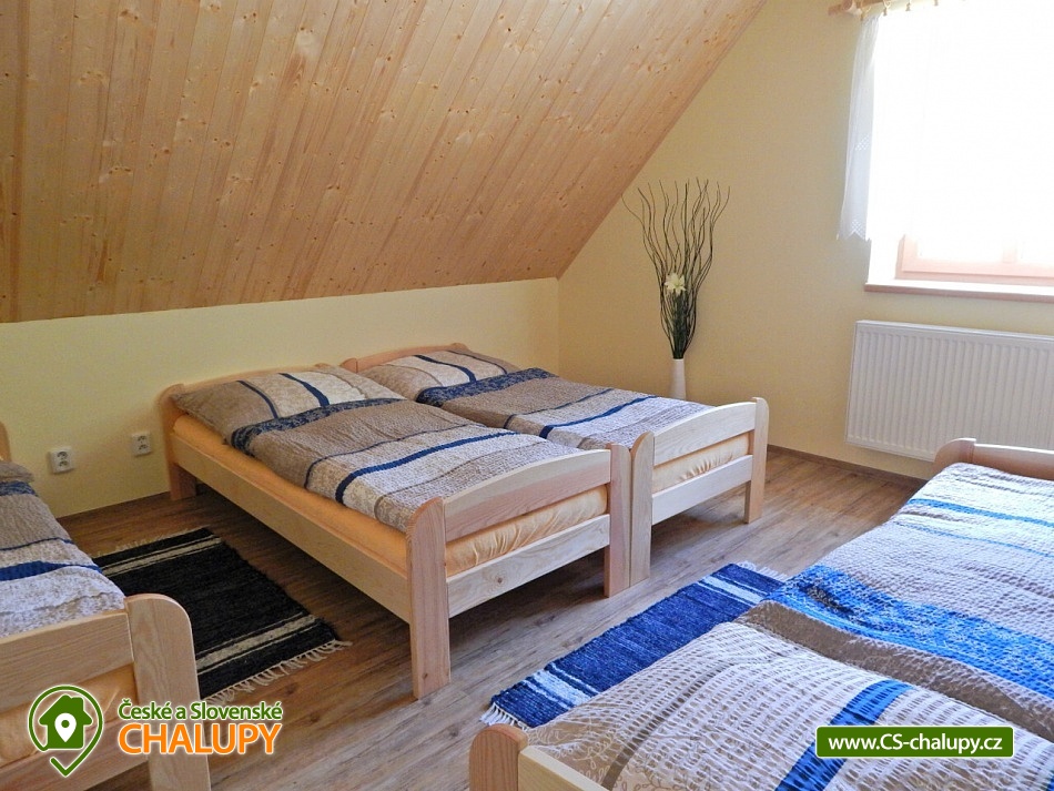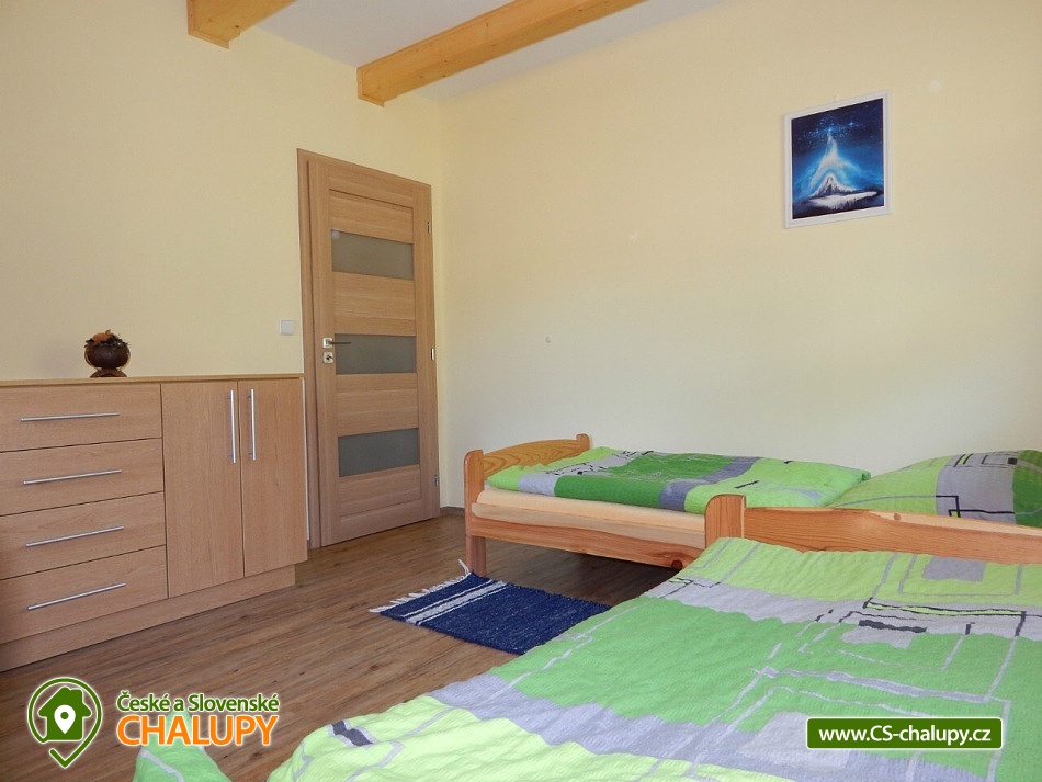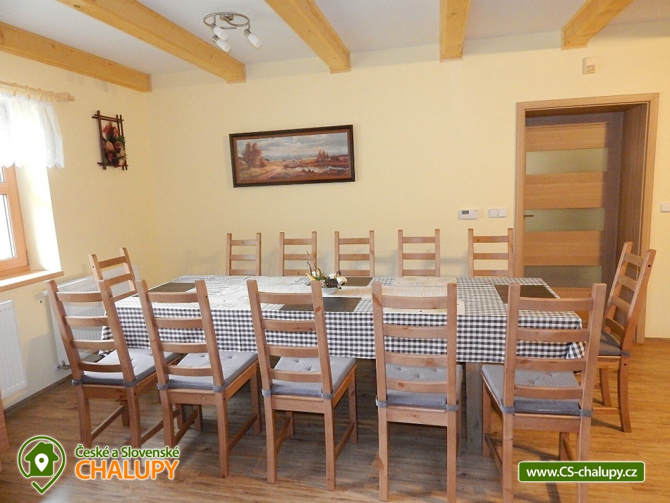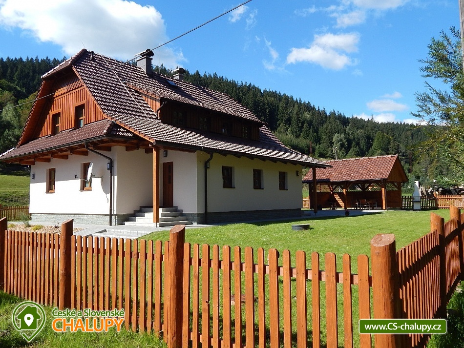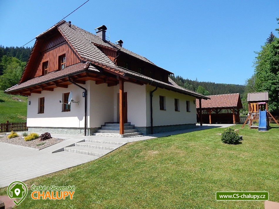 Chalupa v srdci Valašska - poloha na rozhraní Javorníků a Beskyd. Chalupa k pronájmu pro až 20 osob ve 2 apartmánech se nachází západně od centra Velkých Karlovic v malebném údolí. Nabízíme i bezbariérové ubytování v přízemí ve velké bytové jednotce, kde se nachází upravená bezbariérová prostorná koupelna, kuchyň s posezením i ložnice v přízemí. V chalupě je celkem 6 ložnic, ubytovat se je možné v malém apartmánu o kapacitě 8-mi lůžek nebo ve velkém apartmánu o kapacitě 12-ti lůžek (popř. obsadit celou chalupu - 20 lůžek). I v případě, že obsadíte pouze malý apartmán budeme garantovat, že zbývající lůžka (chalupa) zůstanou neobsazená a celá zahrada je k dispozici pouze pro Vás. Vaše soukromí a pohodlí je pro nás prioritou. K dispozici je vybavená kuchyň vč. lednice, mikrovlnné trouby, varné konvice, sporáku a dalších elektrických spotřebičů. Chalupa je dále vybavena TV a SAT, DVD přehrávačem a internetem, který je samozřejmě v ceně pobytu. K vytápění lze použít krbová kamna nebo elektrokotel. Součástí objektu je oplocená zahrada, ve které máte možnost venkovního posezení a grilování. Pro vyžití Vašich dětí je pak připraveno pískoviště a houpačka. U chalupy je i prostor pro uložení kol, kočárků nebo lyží. V objektu se nachází celkem 4 sprchové kouty a WC, z toho 1 sprchový kout ve velké bytové jednotce je uzpůsoben pro méně pohyblivé. Parkování je možné přímo u objektu. Pokud patříte mezi milovníky turistiky, cykloturistiky, houbaření nebo lyžování, nebo snad jen chcete poznat život na Valašsku, odpočinout si od každodenních starostí, užít si odpočinku s možností kdykoli vyjít do přírody a přitom být na místě i v zimě lehce dostupném autem, nemůžete si snad vybrat lepší místo. Nabízíme Vám ubytování na rozhraní Javorníků a Beskyd v centru turistiky na Valašsku. V zimních měsících bývá tento kraj hojně navštěvován především lyžaři. Jsou zde lyžařská střediska s moderními vleky. Začátečníci a zdatnější lyžaři mají vytvořeny vhodné podmínky. Zájemci o běžecké lyžování mohou využít různě náročné upravené běžecké trasy. Rádi Vám po příjezdu poradíme. Těšíme se na Vás u nás.