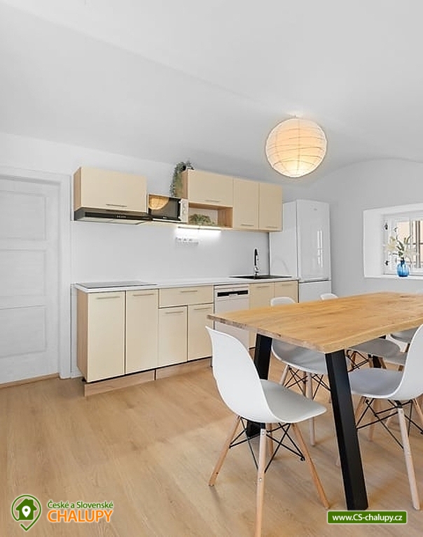 Chalupa s apartmány, obklopená nádhernou přírodou Vysočiny, se nachází v malé vesnici Ústup u vodní nádrže Letovice. Těšit se můžete na spoustu možností pro výlety. V létě potěší možnost koupání v 5 km vzdálené přehradě Letovice a v zimním období si lze užít lyžování v nedalekém lyžařském středisku Olešnice. Chalupa se skládá z více budov, ve kterých jsou umístěná apartmánová studia. Apartmány Ústup nabízí ubytování pro 18 osob ve čtyřech samostatně pronajímaných apartmánech s vlastním vchodem, koupelnou a kuchyní. Objekt lze také pronajmout jako celek. Popis: Apartmán č. 1 má kapacitu pro 6 osob, k dispozici je čtyřlůžková ložnice (1x manželská postel + 1x dvoulůžko řešené rozkládací pohovkou) a 2x přistýlka v obývacím pokoji (rozkládací gauč) vhodná pro děti. Apartmány č. 2,3 a 4 mají kapacitu pro 4 osoby, k dispozici je 1x dvoulůžko a 2x přistýlka pro děti řešená rozkládací sedací soupravou. Apartmán č. 3 je mezonetový a spací část je umístěná v patře, do kterého vedou prudší schody. K zapůjčení je dětská postýlka. Všechny apartmány mají plně vybavenou kuchyň (lednička, mikrovlnná trouba, varná deska, rychlovarná konvice, myčka, jídelní sezení a kuchyňské potřeby). V apartmánech je k dispozici TV. Sociální zařízení v každém apartmánu zahrnuje jednu koupelnu se sprchovým koutem, umyvadlem a WC. K dispozici jsou ručníky. Vytápění je řešeno tepelným čerpadlem nebo přímotopy. Venku lze trávit čas na travnaté zahradě. Posezení je připravené na venkovní terase. K dispozici je gril a ohniště. Děti ocení pískoviště a trampolínu. Parkovat lze přímo u objektu. V okolí apartmánů možnost turistiky, cykloturistiky, koupání, houbaření, rybaření, lyžování a běžkování. V blízkosti je také jízdárna. Mezi možnosti koupání patří např.: přehrada Křetínka, koupaliště Olešnice, koupaliště Letovice, koupaliště Březová nad Svitavou, koupaliště Lysice, lom sv. Anna Březina, bazén a koupaliště Bystřice nad Perštejnem, atd. K dispozici jsou blízká lyžařská střediska: Olešnice a Hodonín u Kunštátu. K výletům v okolí láká hrad Svojanov, Pumptrack Bystřice nad Pernštejnem, Zámek Letovice, Zámek Kunštát, jeskyně Blaničtích rytířů, Vírská přehrada, zříceniny hradů Pyšolec a Zubštejn nebo historická centra měst Svitavy a Polička. Těšíme se na Vás u nás.