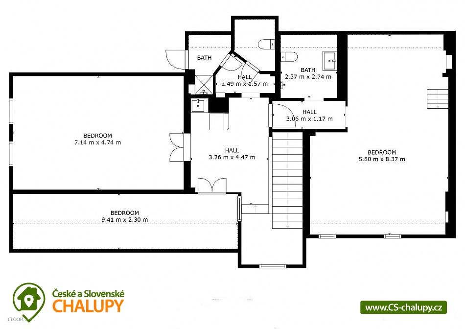 - 6 ložnic: 1x 7+2, 1x 5, 1x 5+2, 1x 4, 2x 2