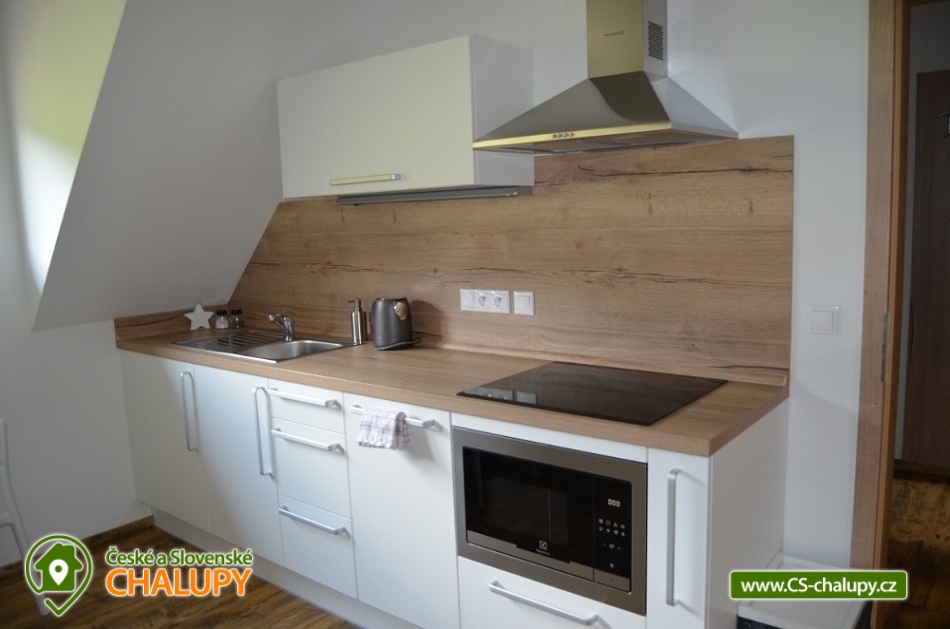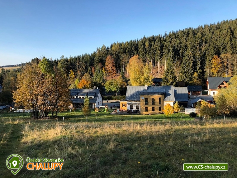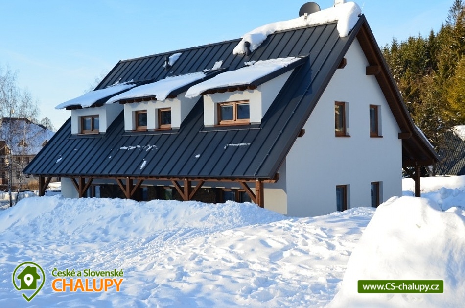 Apartmánová chalupa s wellness a vyhřívaným bazénem u říčky Bělá pod Studeným vrchem v Orlických horách. Apartmány v apartmánové chalupě v Deštném v Orlických horách jsou kompletně vybaveny a nabízí vlastní parkovací stání, úschovnu kol a lyží. Apartmány 2+kk s ložnicí a obývacím pokojem s plně vybavenou kuchyní, kde je také komfortní rozkládací pohovka Phase (po rozložení 164x200 cm) s lamelovým roštem. Vybavení: lednice, myčka, mikrovlnná trouba, ručníky, osušky, fén na vlasy, el. sušák... vše, co potřebujete ke spokojenému pobytu. Na snídani je možnost nakoupit vše vedle v naší malé pekárně a na večeře zajít do některé z restaurací vzdálených 50m, 200m, 300m nebo si uvařit vlastní. Chalupa s apartmány má přístup k sousednímu penzionu majitelů, kde v létě využijete dětské hřiště a venkovní vyhřívaný bazén. V zimě u nás odjedete od dveří na lyžích přímo na sjezdovku. V okolí udržované běžecké stopy a to i po hřebenech Orlických hor, sedačková lanovka, lyžařské vleky, lyžařská i snowboardová škola, snowpark, večerní lyžování, skiservis a půjčovna lyží, možnost sáňkování přímo u chalupy, v místě závody psích spřežení Šediváčkův long. Dále můžeme doporučit: Lezení na umělé stěně - V areálu horské chaty Start je 7 m vysoká umělá lezecká stěna, na které se zájemci mohou naučit lézt a do hned několika cestami dle obtížnosti, rovněž se také mohou zdokonalit v lezení a to za doprovodu instruktora. Skanzen Villa Nova Uhřínov pod Deštnou - Archeologické muzeum v přírodě (skanzen) Villa Nova se snaží ukázat život ve vesnickém prostředí 13.a 14.století. Za tímto účelem jsou zde rekonstruovány na základě objevených archeologických situací domy a hospodářské objekty. V přírodním areálu se volně pohybují přátelské ovce a kozy. Těšíme se na Vás u nás.