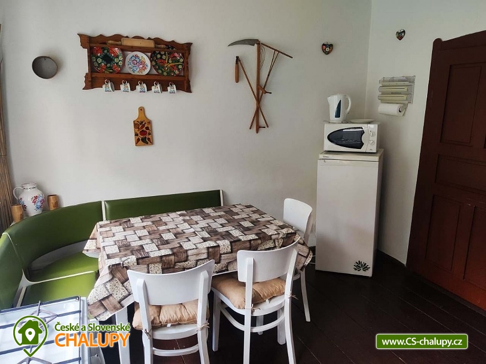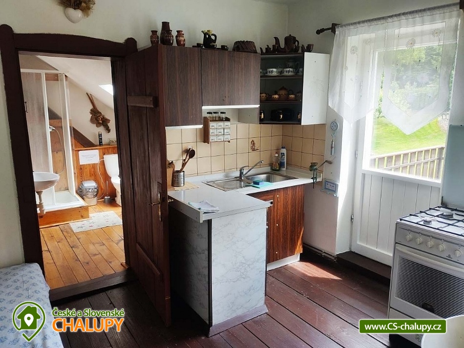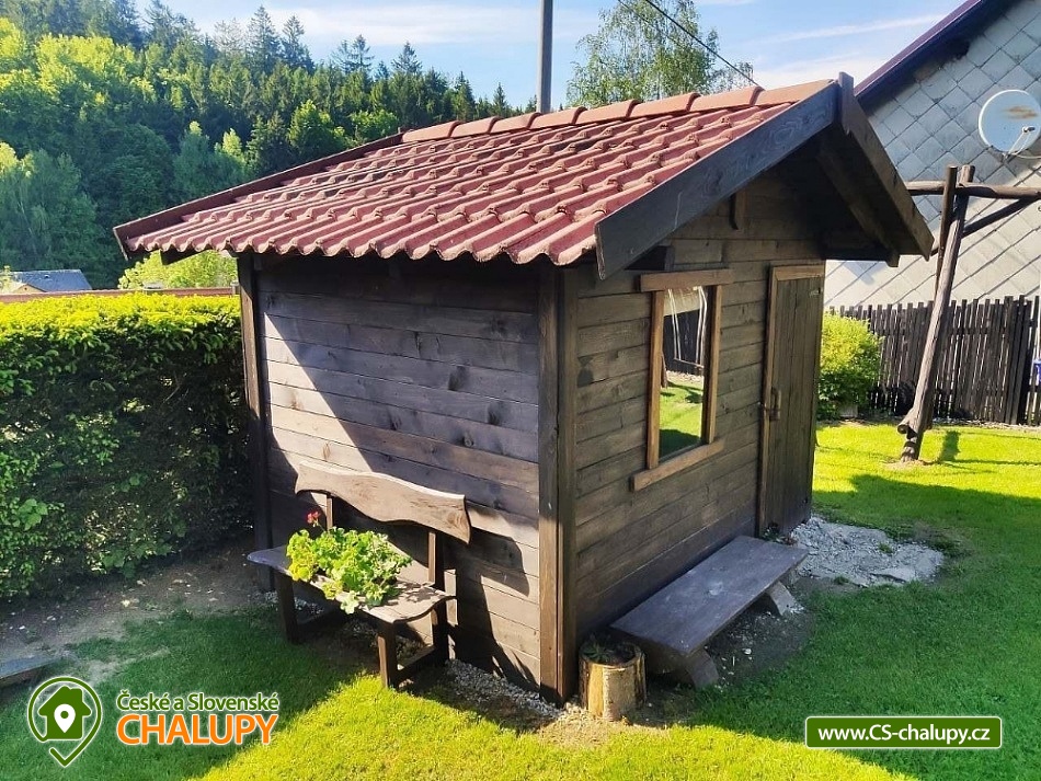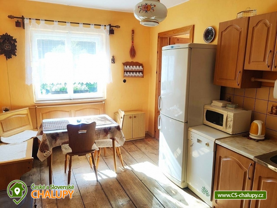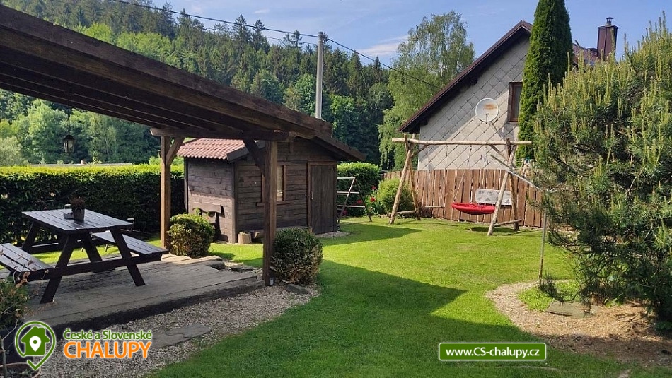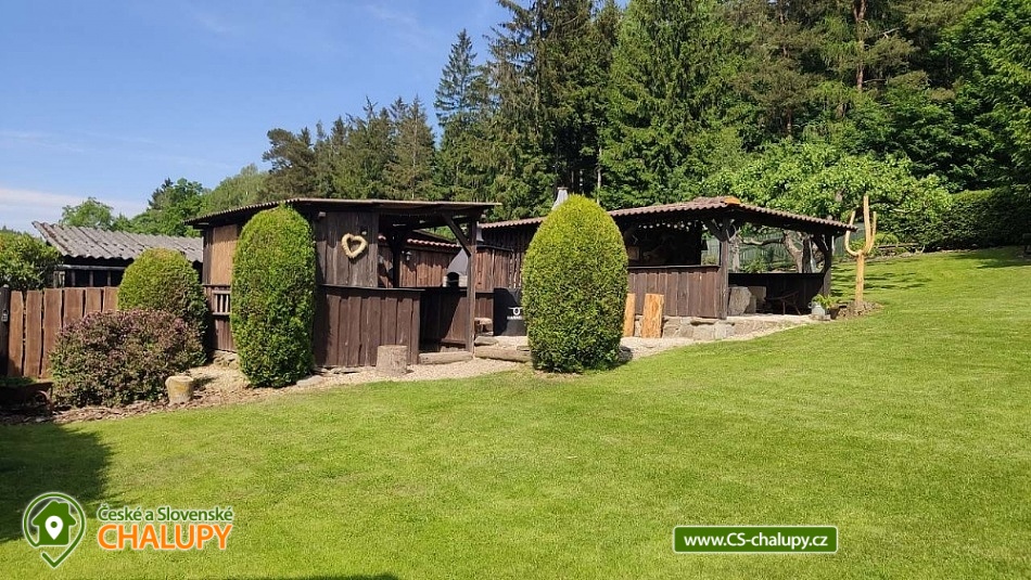 Chalupa s bazénem, koupacím sudem a infra-saunou v CHKO Český les na Šumavě a - CHKO Český les. Chalupa k pronajmutí v lokalitě měst Domažlice, Horšovský Týn a Kdyně. Chalupa nabízí ubytování pro až 18 osob v 5 ti samostatných pokojích, kdy žádný není průchozí a tudíž i větší skupina osob má v pokojích soukromí. V přízemí chalupy je velká společenská místnost s TV a satelitem, dětským koutkem a knihovnou. Společenská místnost sousedí s plně vybavenou kuchyní - plynový sporák, lednice, mrazák, elektrická konvice a mikrovlnná trouba. V přízemí je dále koupelna s vanou a samostatné WC. V patře jsou 3 ložnice (1. se 4 lůžky + sedací souprava, 2. ložnice se 4 lůžky, 3. ložnice se 3 lůžky. V patře je také druhá kuchyň s plynovým sporákem, ledničkou, el. konvicí a druhá koupelna se sprchovým koutem a WC. Vytápění chalupy je řešeno krbovými kamny a patro je vytápěno ústředním topením napojeným na krbová kamna. Ve sklepních prostorech naleznete bar s posezením kde je k dispozici výčepní zařízení na pivo. Pro soutěživé jsou připraveny šipky, stolní fotbal a v samostatné místnosti stolní tenis. Dále si můžete prohřát tělo v infrasauně, která je umístěna v samostatné místnosti nebo ve vyhřívaném koupacím sudu. Místnost pro uskladnění kol je také samozřejmostí. Na velké, udržované zahradě naleznete nadzemní bazén o průměru 4,5 m a lehátka na opalování. V dětské části zahrady naleznou děti pískoviště s hračkami, houpačkami a rodiče je mohou v klidu a pohodě sledovat z posezení v dětské části zahrady. Dalším posezením na zahradě jsou dvě zastřešené pergoly s krbem a samostatným grilem pro opékání a grilování. Parkování je možné přímo u objektu. Okolí chalupy je ideální prostředí pro odpočinkovou dovolenou a sběr hub ve velmi krásných lesích. Výborné podmínky pro turistiku po chráněné krajinné oblasti Český les (výšlapy na Lysou horu, Herštejn, Čerchov – nejvyšší vrchol v Českém lese s rozhlednou, prameny Radbuzy) a cykloturistice (značená síť cyklotras). Koupání: nově otevřený aqaupark Waldmünchen (12 km - Německo), Poběžovice - přírodní koupaliště (7 km), Babylon - rekreační středisko (20 km), Domažlice - krytý bazén (15 km), aqaupark Kdyně (25 km). Jízda na koni v místě (0,2 km). Tenisové kurty v Poběžovicích (7 km). Turistické cíle: augustiniánský klášter ze 14.století v Pivoni, zámek Poběžovice a Horšovský Týn, Domažlice (muzeum Chodska, náměstí s krásnými štítovými domy), Kozinův statek v Újezdě, Muzeum spisovatele J. Š. Baara v Klenčí pod Čerchovem, rekreační rybník Babylon a další. Doporučujeme také výlet na Haltravu. Haltrava je součástí souvislého pásma kopců v chráněné krajinné oblasti Český Les, který se zvedá severozápadním směrem nad městečkem Klenčí pod Čerchovem. Pásmo kopců tvoří vrcholky Velká skála (852 m), Škarmanka (888 m), Tyrolka (865 m), Haltrava (882 m) a Sádek (854 m). Na stráních kopců je smíšený a v některých místech i pralesovitý podrost. Kolem vrcholku Sádek je oblast chráněného území Skalky na Sádku. V chráněném území rostou především buky a občas nějaký smrk na křemenném podloží. Na vrcholku kopce Sádek měli Chodové své strážní místo. Výchozím bodem k návštěvě výše jmenovaného horkého masívu je místo zvané Výhledy (702 m), jihozápadním směrem od města Chodov.