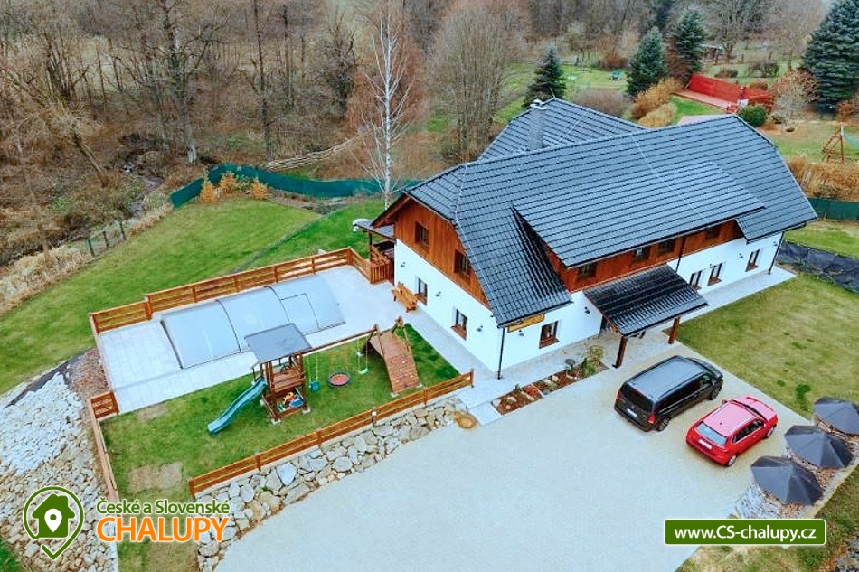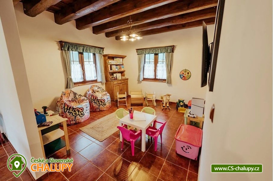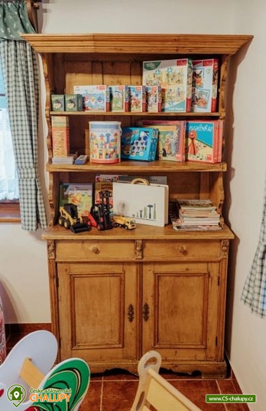 | Vybavení objektu - vnitřní: | společenská místnost, dětská postýlka, dětský kout (hračky), krb / krbová kamna, internet - wifi, vybavená kuchyně, rychlovarná konvice, varná deska, lednička, mrazák, mikrovlnná trouba, myčka, kávovar, topinkovač, toustovač, pračka, koupelna s wc společné, koupelna se sprchovým koutem, wellness, sauna, vířivka, TV, společenské hry |