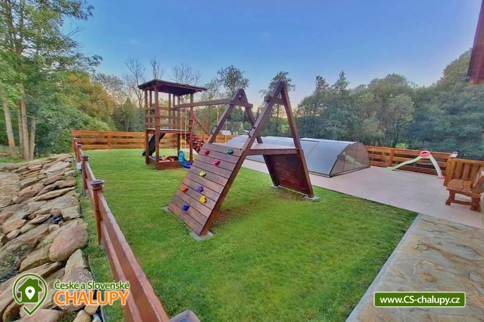 | Vybavení objektu - venkovní: | zahradní nábytek, terasa, zastřešené posezení, zahrada, venkovní bazén, koupací sud / vířivka, pískoviště, dětské hřiště, travnatá plocha, ohniště, gril, krb, sklad pro kola/ lyže, oplocený objekt |
