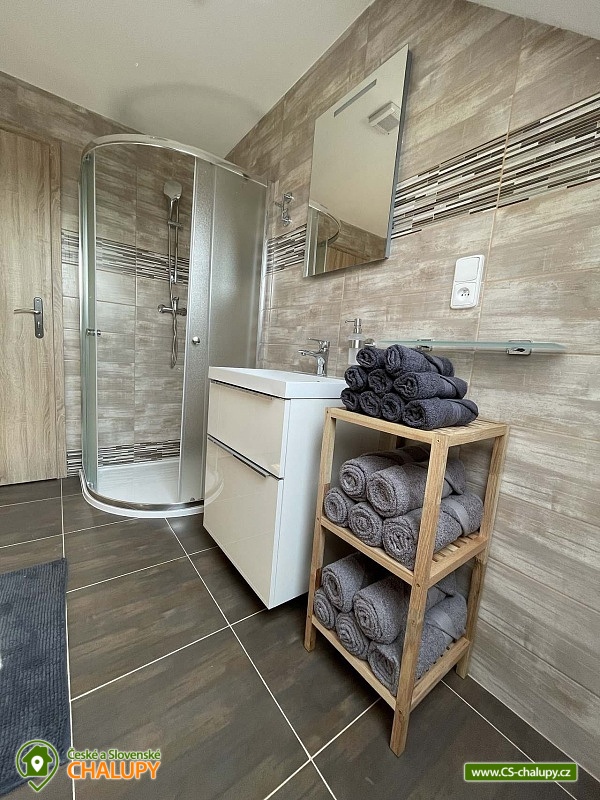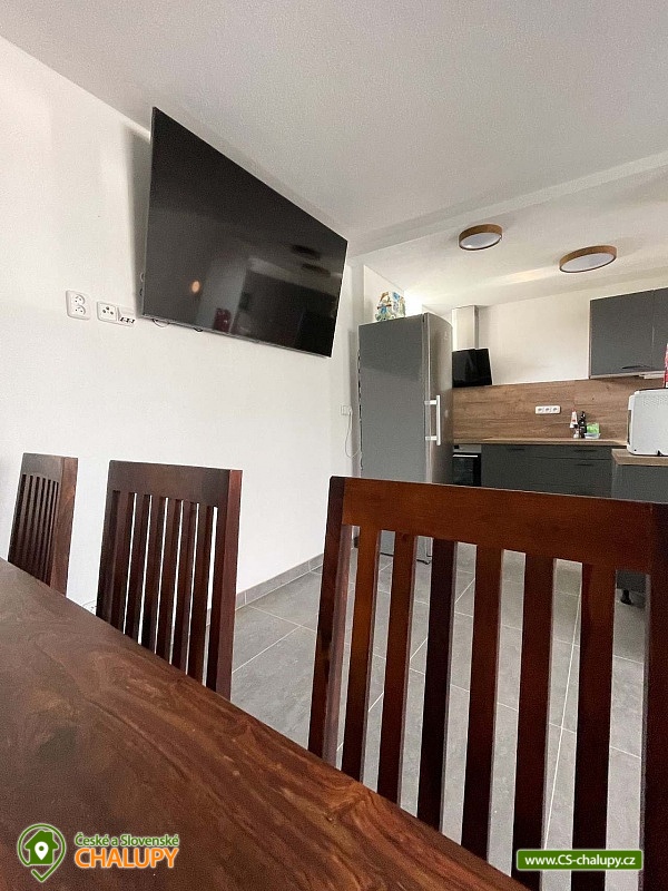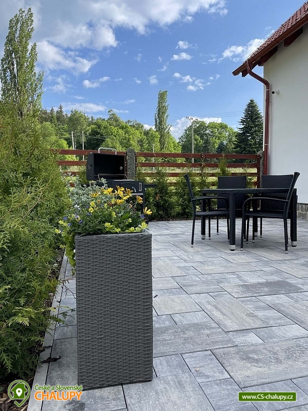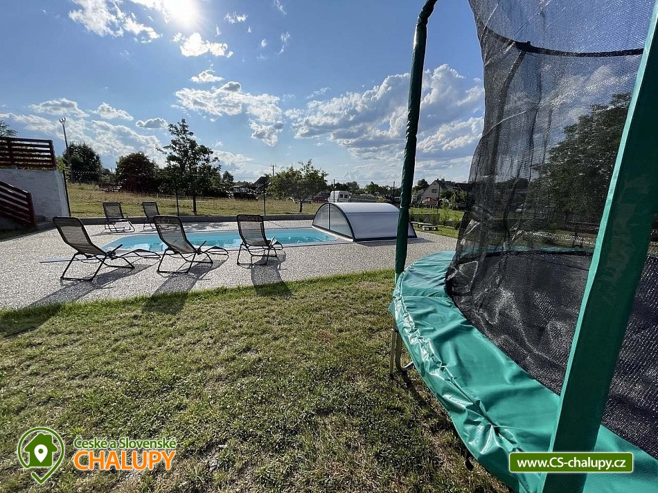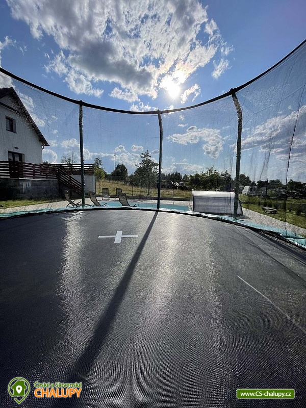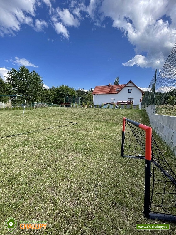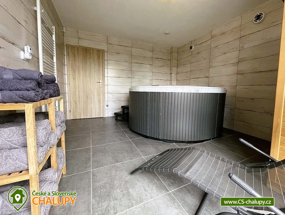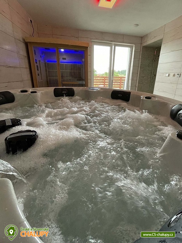 Chalupa s wellness a bazénem na okraji Šumavy, poloha nedaleko města Kašperské Hory a hradu Kašperk. Wellness vybavení - vířivka, infra sauna a venkovní bazén. Kapacita chalupy je až 15 osob v 5 ložnicích v prvním patře: čtyřlůžková ložnice (1x manželská postel, 2x jednolůžko), 2x třílůžková ložnice (1x manželská postel, 1x jednolůžko), dvoulůžková ložnice (1x manželská postel) a třílůžková ložnice (1x manželská postel, 1x jednolůžko) s privátní koupelnou. Dále se v přízemí nachází plně vybavená kuchyň (2x lednička, indukční varná deska, trouba, myčka nádobí, rychlovarná konvice, mikrovlnná trouba, espresso kávovar a nádobí) s jídelním posezením, na kterou navazuje společenská místnost s pohodlnou pohovkou a velkou smart TV. Jistě oceníte wellness místnost s vířivkou (max. 5 osob) a infrasaunou. Sociální zázemí tvoří v přízemí jedna koupelna se sprchovým koutem a toaletou a také samostatné WC. V patře jsou k dispozici dvě koupelny se sprchovým koutem a toaletou a navíc jedna privátní koupelna se sprchovým koutem a toaletou. K dispozici je také pračka a fén. Vytápění objektu je řešeno radiátorem v každé místnosti. V objektu možnost zdarma WI-FI připojení na internet. Chalupu obklopuje zahrada s možností parkování přímo u objektu (max. 10 aut). Součástí zahrady je terasa s venkovním posezením, venkovní bazén s lehátky, gril a trampolína. V okolí objektu možnost turistiky, cykloturistiky, koupání, lyžování, běžkování, rybaření či houbaření. Mezi možnosti koupání patří např.: koupaliště Rohanov, lom Čimické jezírko, Úbislavický rybník nebo rybník Zdíkovec. V zimě jsou výhodou blízká lyžařská střediska např.: skiareál Javorník, skiareál Kašperské Hory, skiareál Zadov a skiareál Hartmanice. K výletům v okolí láká: hrad Kašperk, hrad Rabí, hrad Velhartice, Kašperské Hory, Srní nebo Modrava. Těšíme se na Vás u nás.